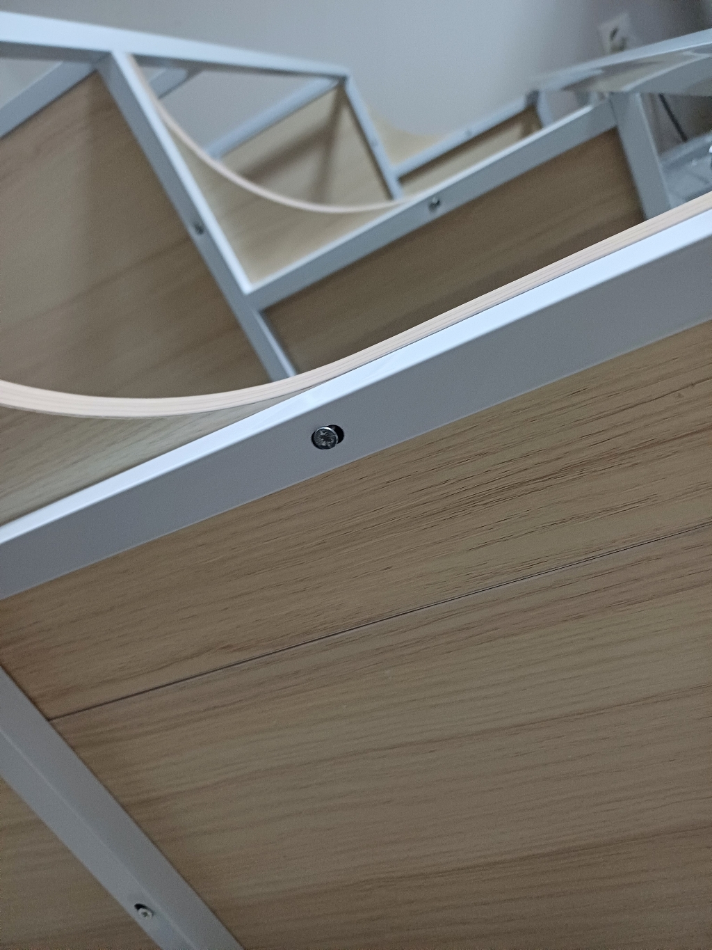 금속 프레임과 견고한 나무 판재가 결합된 구조라