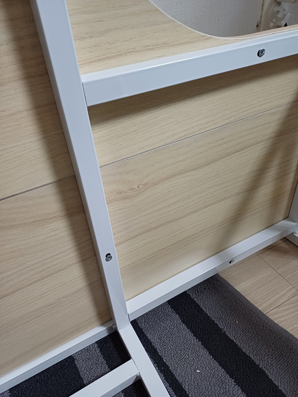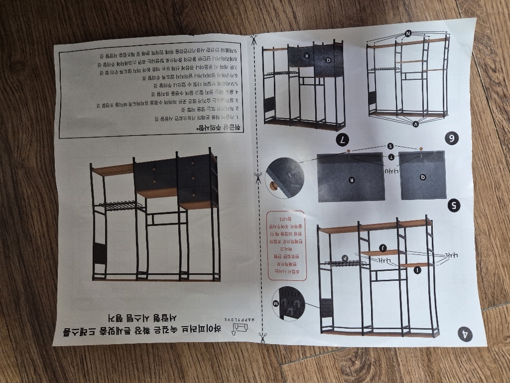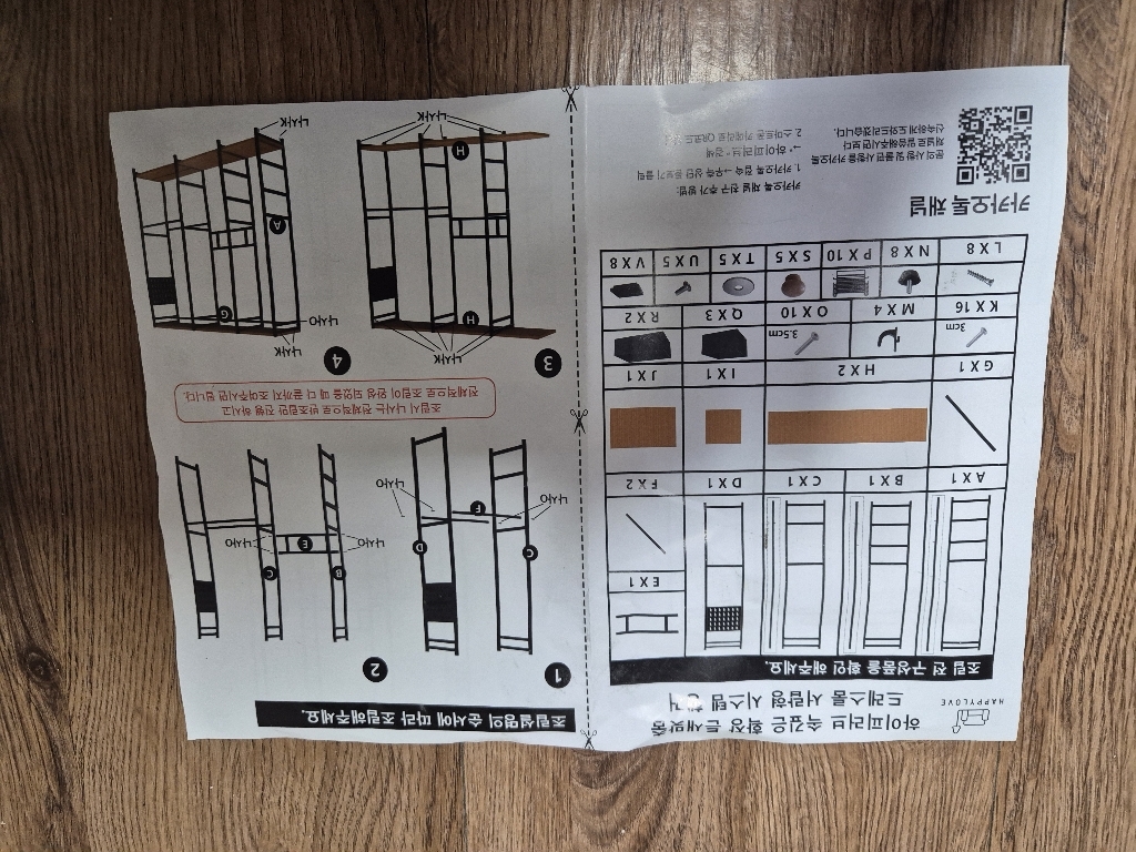 조립은 전체적으로 어렵지 않았지만, 후기에서 봤던 것처럼 저도 한 번 잘못 조립해서 다시 분해하고 재조립해야 했어요. 처음에 프레임 방향을 잘못 맞추면 나중에 선반이나 행거 봉 위치가 맞지 않을 수 있어서 설명서를 보면서 천천히 하는 게 중요합니다. 두 번째 조립할 때는 훨씬 수월했고, 고정 나사들도 흔들림 없게 잘 맞아 들어가서 안정감 있게 완성됐습니다.