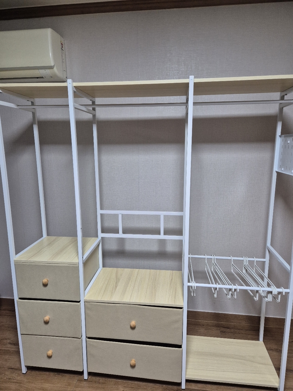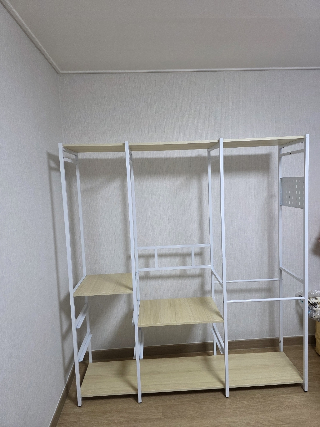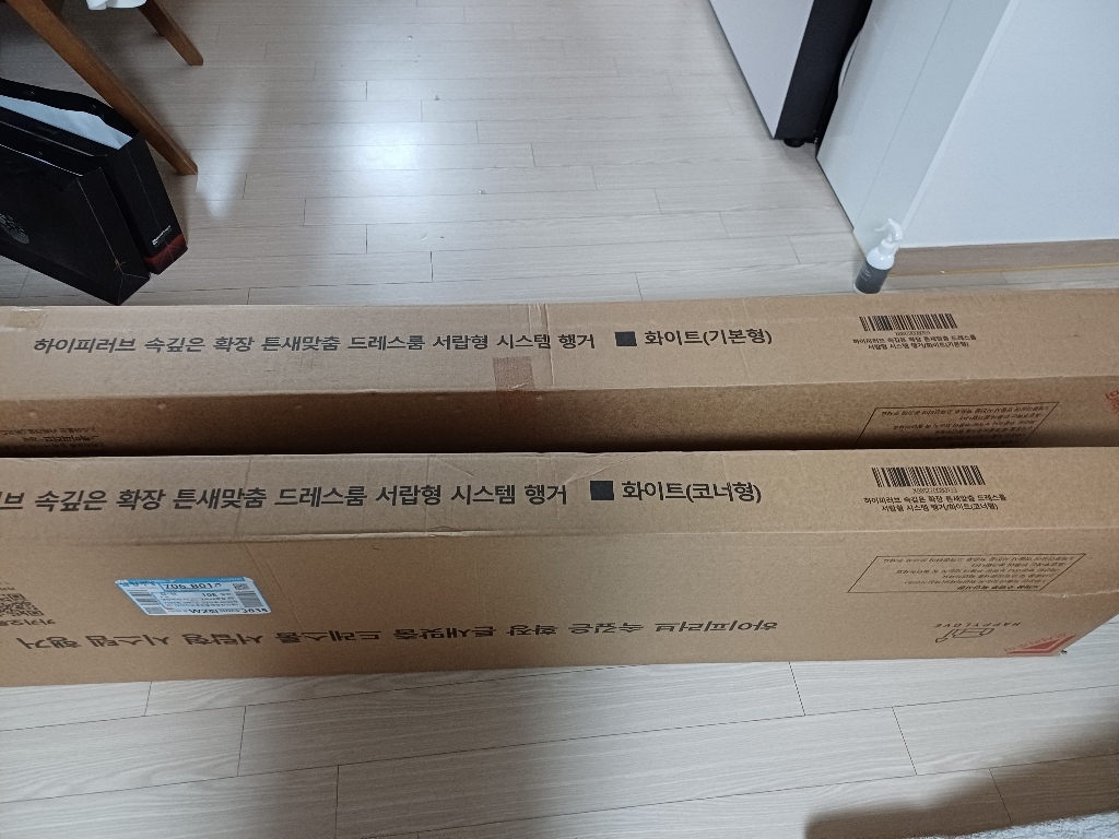 코너형 행거를 써보니 너무 만족스러워서, 이번엔 기본형으로 추가 구매했어요! 방 하나를 아예 드레스룸으로 꾸며보자는 마음으로 선택했답니다~ 옷도 많고, 수납할 게 많아서 기본형+코너형 조합으로 완전 풀세팅!