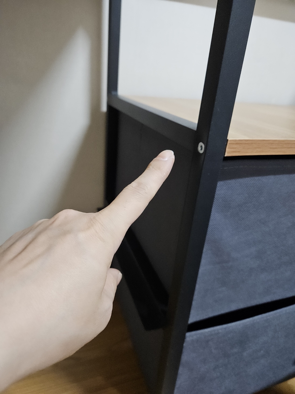 근데 서랍장 3단쪽 넣어야하는데 부품하나가 안와서 받쳐주질못해요.