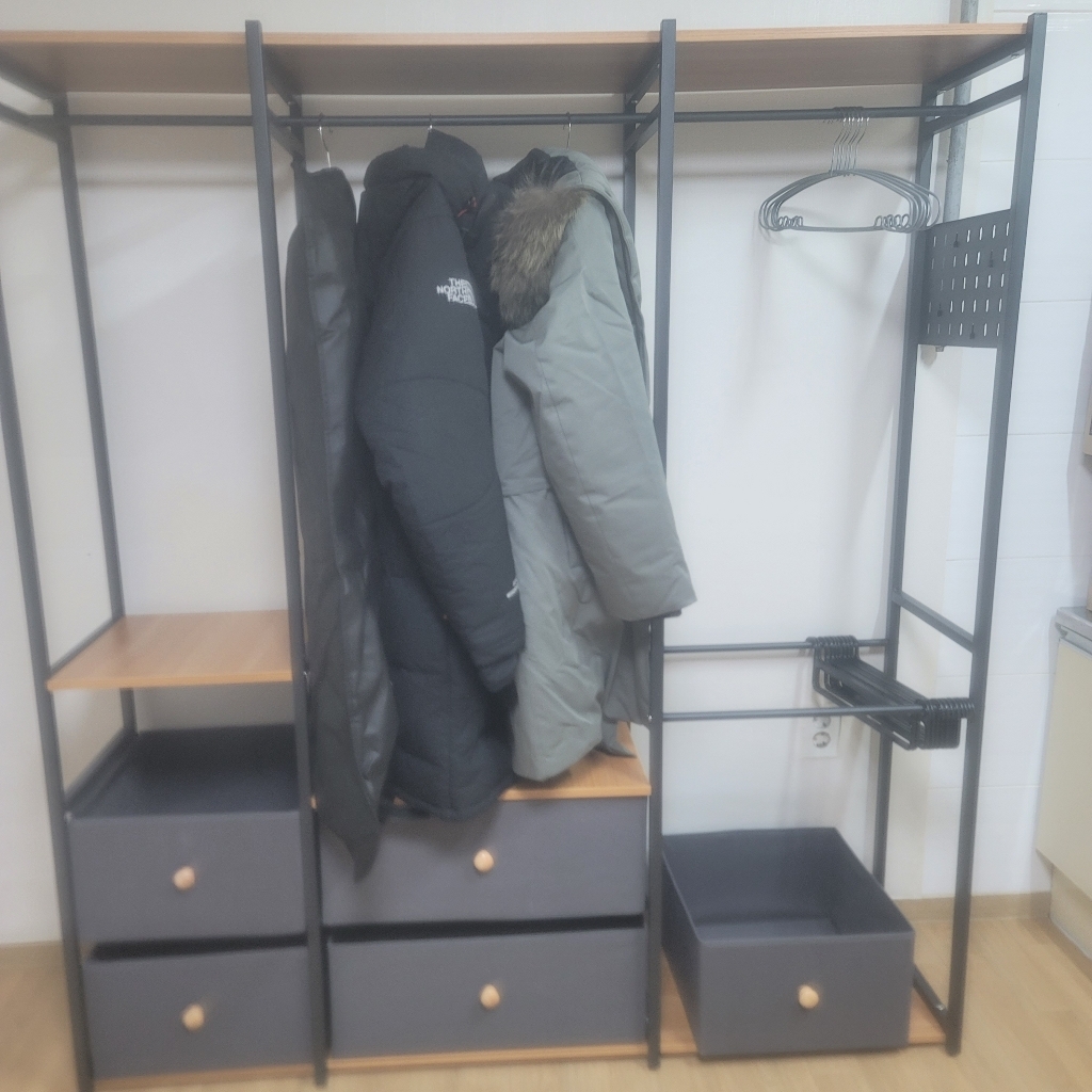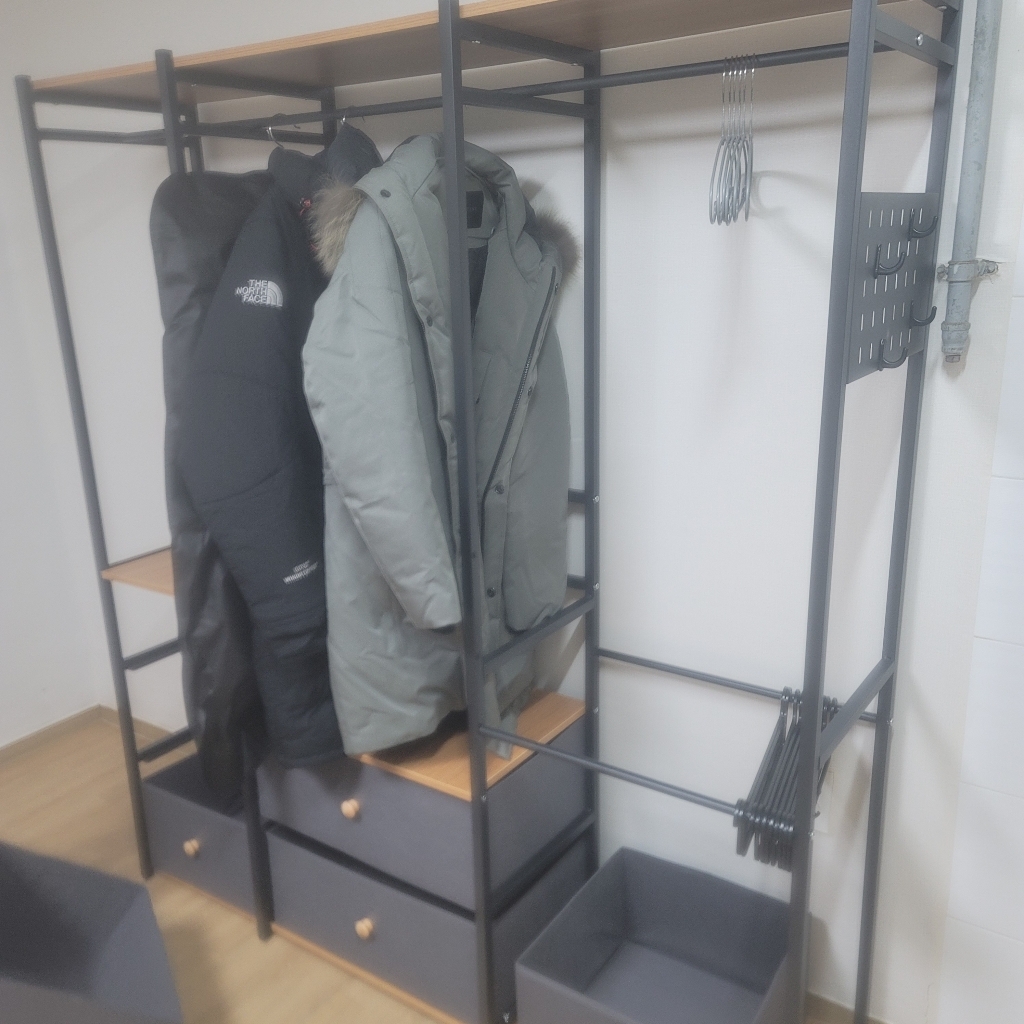 시스템 행거를 고민하시는 분들이라면 가격을 고려했을때 만족스럽습니다. 단 가구의 퀄리티나 오래 사용할 생각이 있으시다면, 시스템 행거 및 비싼 제품 맞춤형을 추천 합니다. (만족스러우나… 시스템행거 대비 부족한 부분이 있어 조금 아쉬움은 있습니다… 다만 가격이 매우 저렴하여 충분히 만족합니다.)