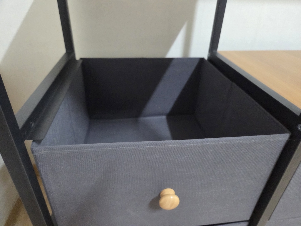 서랍은 플라스틱 느낌이 강하지 않고 생각보다 부드럽게 열리고 닫혀서 기본 수납용으로는 충분합니다. 다만 장기간 사용하다 보면 무게 때문에 망가질 수 있다는 후기도 있었는데, 실제로도 너무 무거운 물건을 넣는 건 피하는 게 좋을 것 같아요. 그래도 혹시 망가지더라도 바구니로 쉽게 대체해서 계속 사용할 수 있을 것 같아 그 점이 더 실용적이라는 생각이 들었습니다.