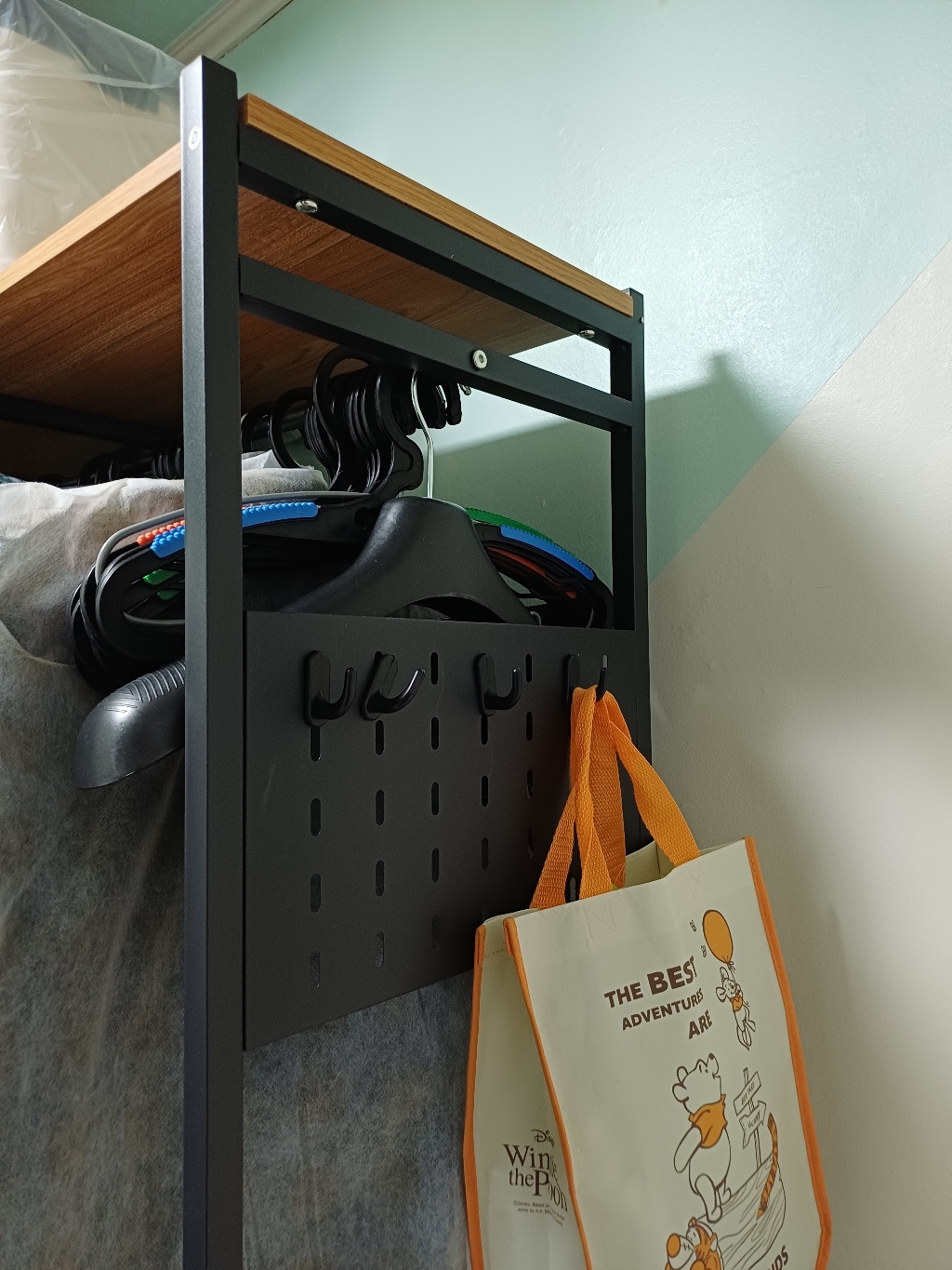 조립을 거의 다 마쳤을 때, 가방이나 모자를 걸어두는 액세서리 칸을 계획과 반대 방향에 설치했으면 더 동선이 편했을 것 같다는 생각이 들었어요. 보통 이런 경우엔 많은 부분을 다시 분해해야 해서 막막해지는데, 하이피러브 시스템 행거는 정말 놀라웠습니다. 딱 필요한 부품 하나만 풀어서 간단하게 좌우 위치를 바꿀 수 있었어요. 사용자가 실제로 어떻게 사용할지를 깊이 고민하고 설계했다는 게 느껴지는 부분이었습니다.
