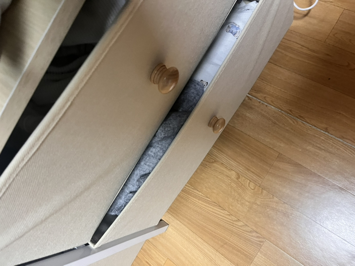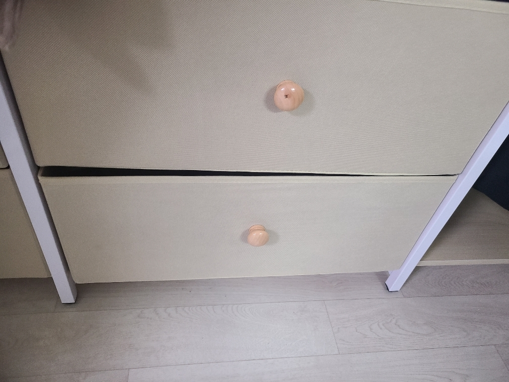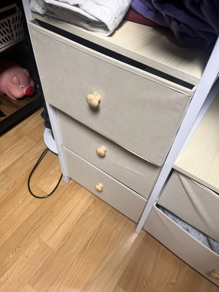 옷뿐만 아니라 속옷, 티셔츠, 양말, 소소한 잡동사니까지 깔끔하게 넣어둘 수 있어서 공간 효율이 엄청나요. 서랍이 부드럽게 열리고 닫히는 것도 마음에 들었어요. 튼튼한 편이라 흔들림 없이 안정적으로 사용할 수 있고, 전체적으로 심플한 디자인이라 드레스룸 분위기도 훨씬 정돈돼 보여요.