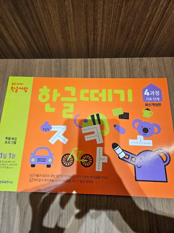 요즘 아이가 간판이나 책 제목을 보면서 “이건 무슨 글자야?” 하고 자주 물어보더라고요. 한글에 대한 관심이 부쩍 늘어난 게 느껴져서 이제는 본격적으로 체계 있게 알려줘야겠다고 생각했습니다. 억지로 시키는 공부가 아니라, 자연스럽게 흥미를 이어갈 수 있는 교재를 찾다가 구매하게 되었어요.