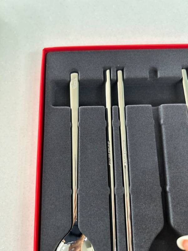 처음 받아보고 가장 눈에 띈 건 역시 디자인이었습니다. 군더더기 없는 심플함에 모던한 느낌이 강해서, 어떤 식탁에도 자연스럽게 어울립니다. 광택이 과하지 않고 은은하게 빛나는 스테인리스 특유의 고급스러움이 있어서 식탁 분위기를 한층 깔끔하게 만들어줍니다. 특히 젓가락은 네모난 모양이라 손에서 미끄러지지 않고, 숟가락도 너무 크거나 작지 않아서 밥, 국, 반찬 등 다양하게 사용하기 딱 적당했습니다.