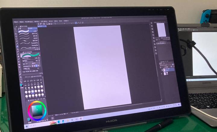 색감 : 처음 켰을때 모니터와 색감 차이가 너무 심함. 타블렛 상단에 있는 버튼들을 통해 따로 설정이 가능하나 눈이 금방 피로해지는건 어쩔 수 없는듯.