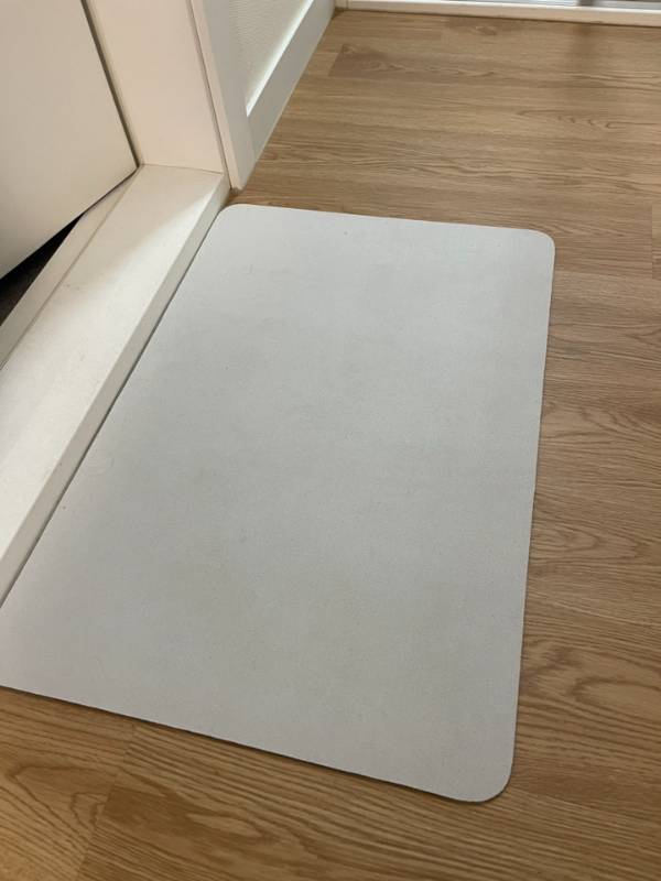 규조토는 딱딱하다는 인식이 있었는데 이건 특이하게도 세탁이 가능한 규조토이다보니 규조토라고는 생각이 안들정도로 일반 매트같은 마치 섬유같은 털 느낌의 촉감이었어요. 촉감이 아주 마음에 들었습니다.