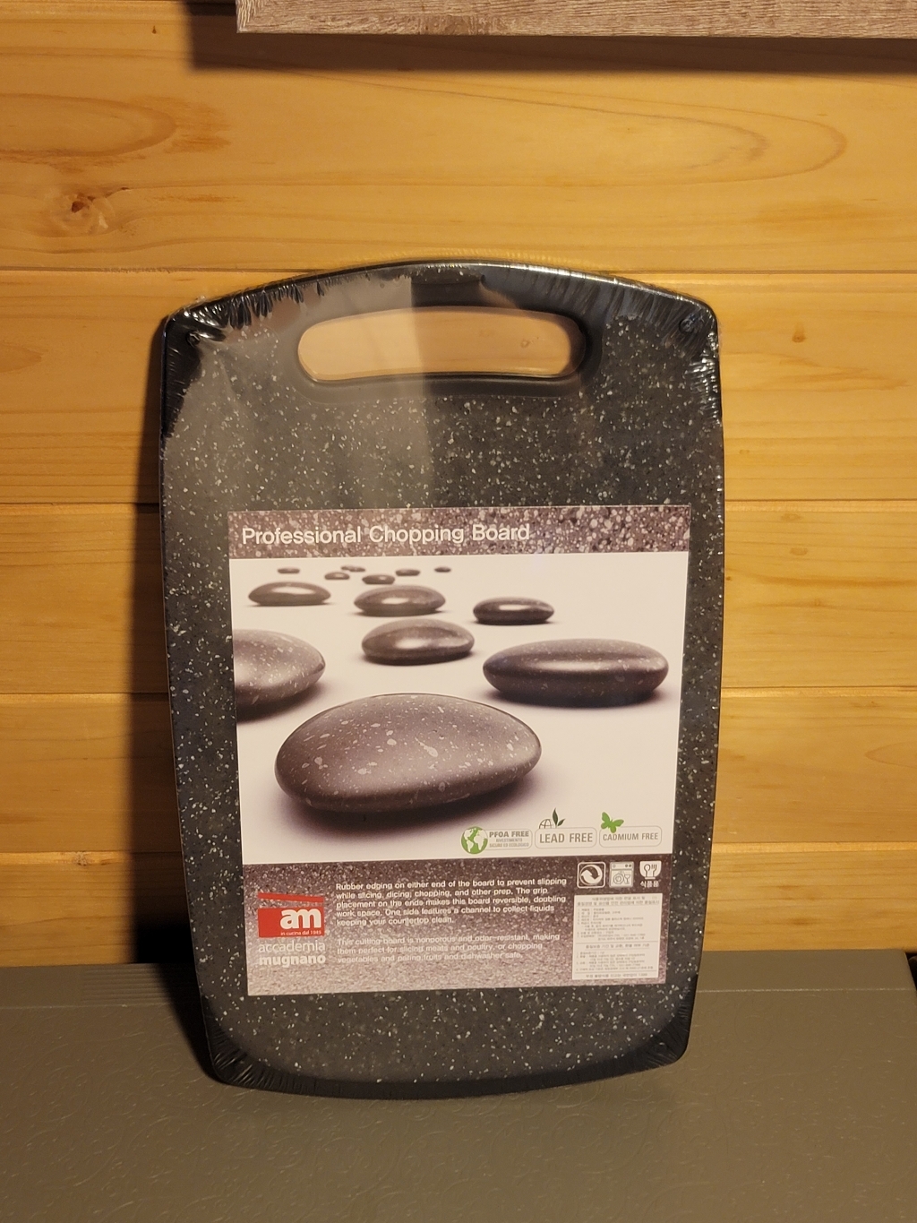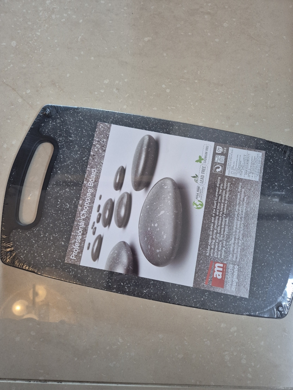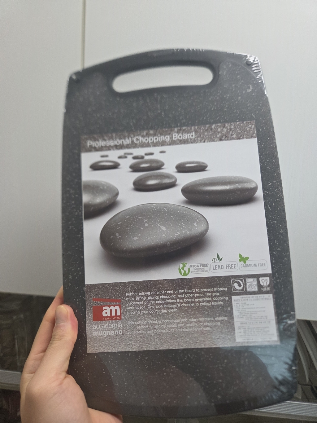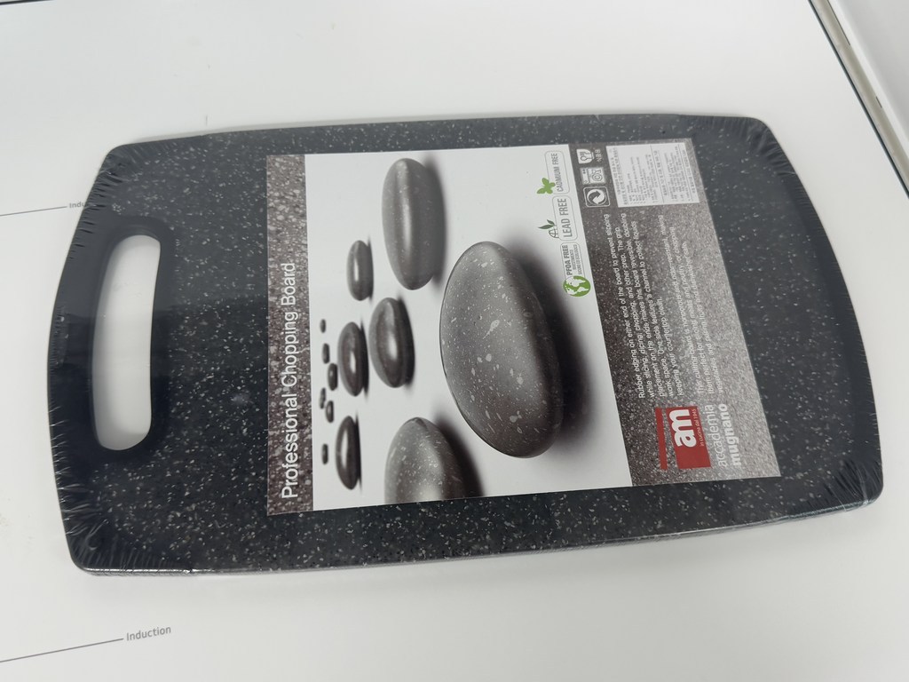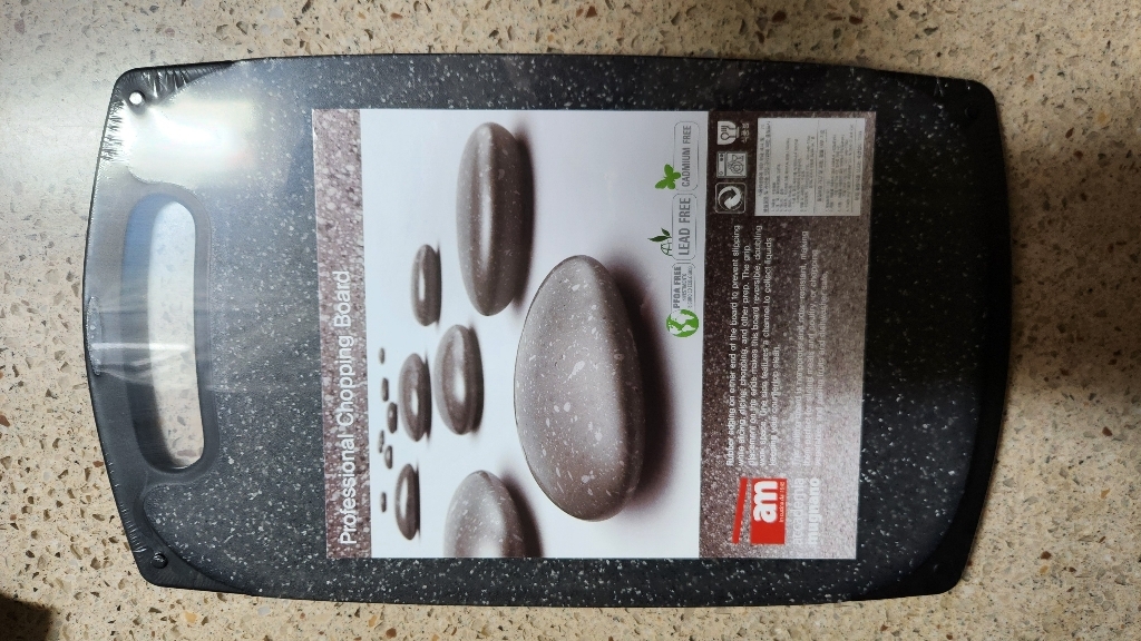 기존에 쓰던 도마가 칼집이 너무 많이 생겨서 위생적인 도마를 찾다가, 깔끔하고 환경 호르몬 걱정이 없는 AM 이탈리아 제품으로 선택했습니다. ‘스톤 양면 도마’라는 이름처럼 일반 플라스틱 도마와 달리 조약돌 같은 고급스러운 표면 질감이 주방 분위기를 확 살려줍니다. 혼합색상이라 색감이 은은하고 세련된 느낌이 마음에 들었습니다.