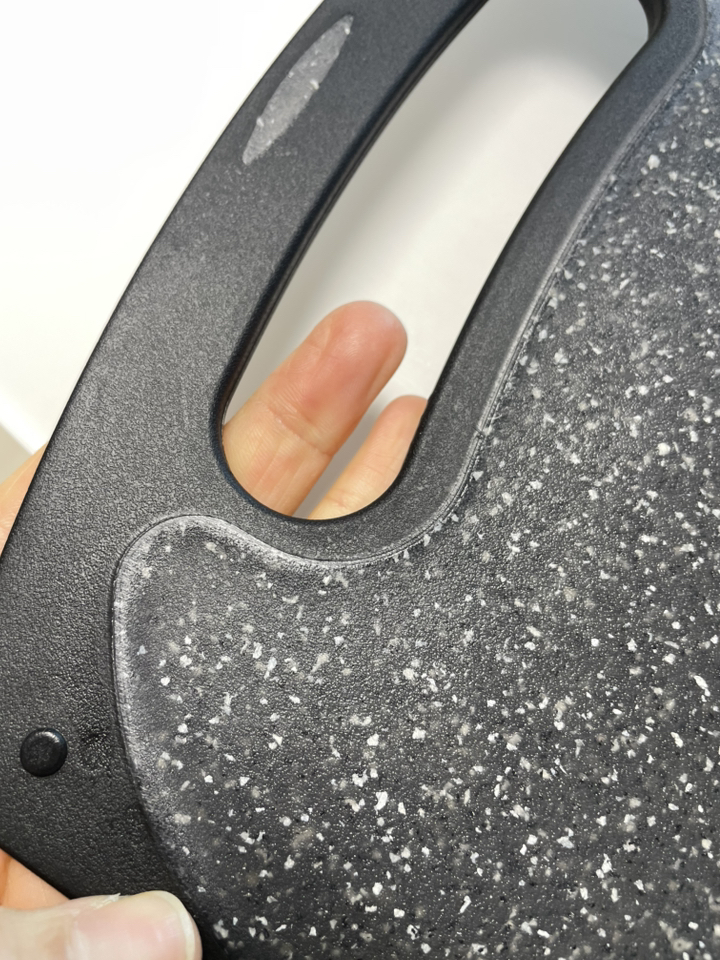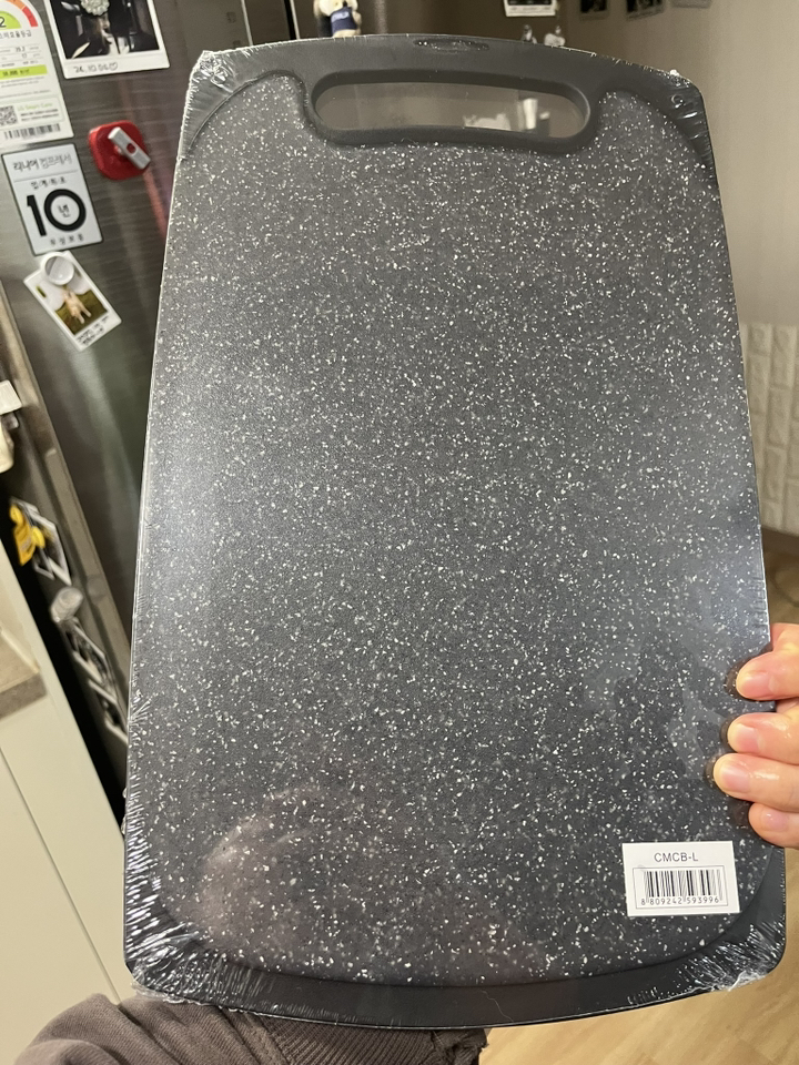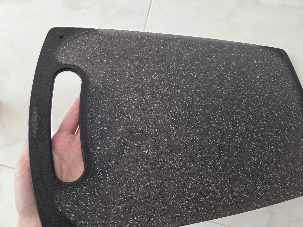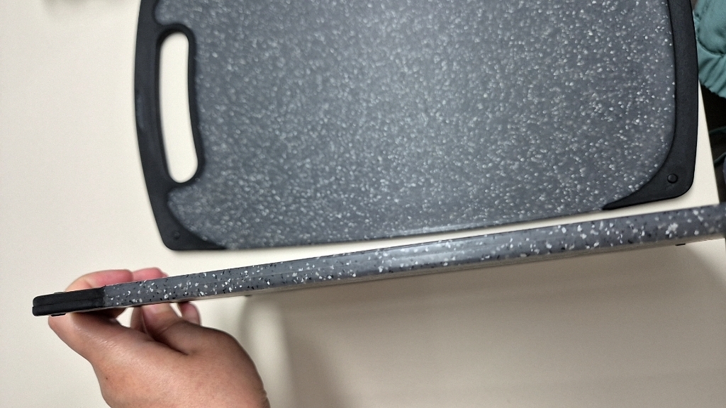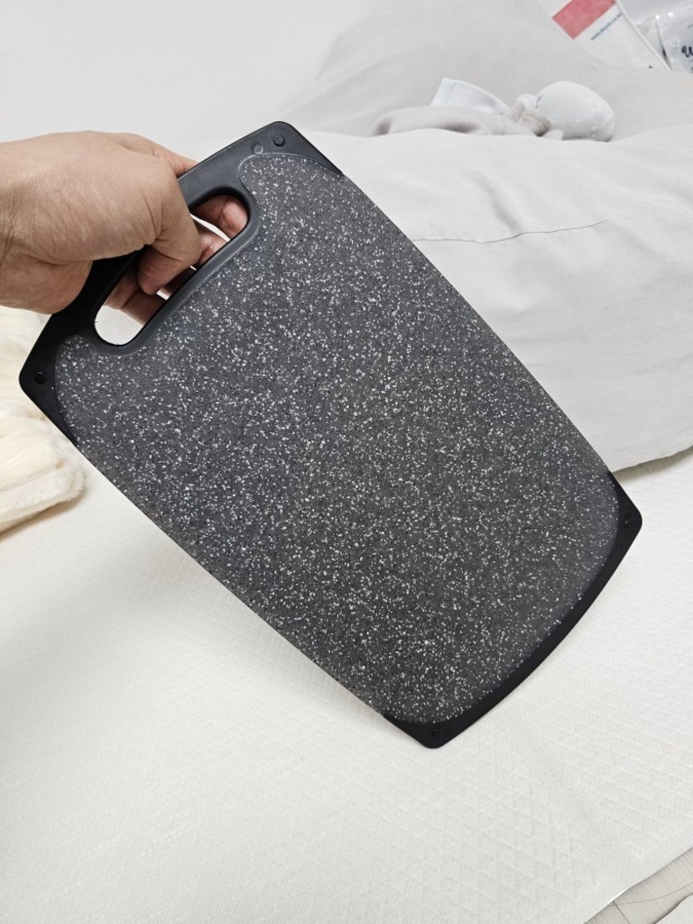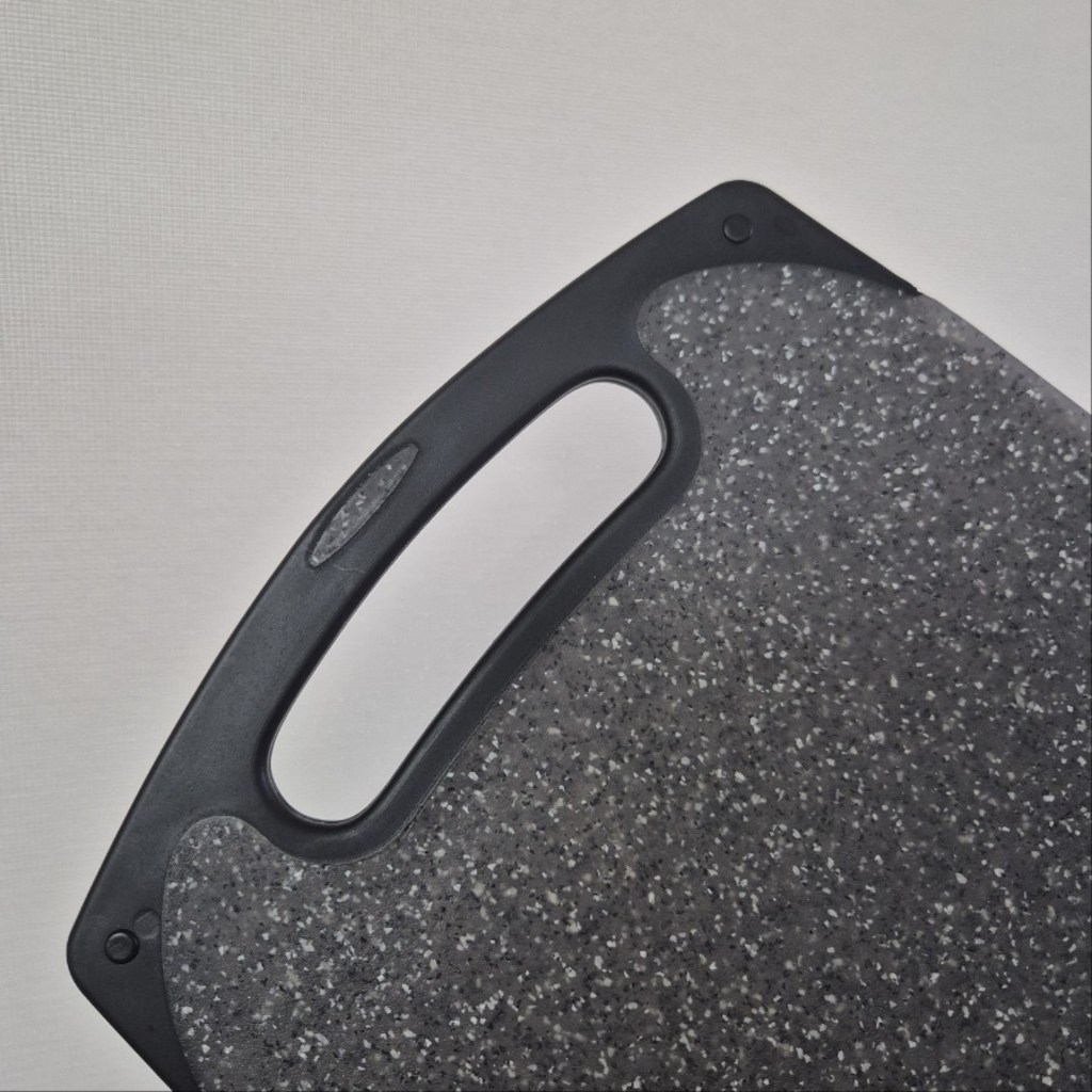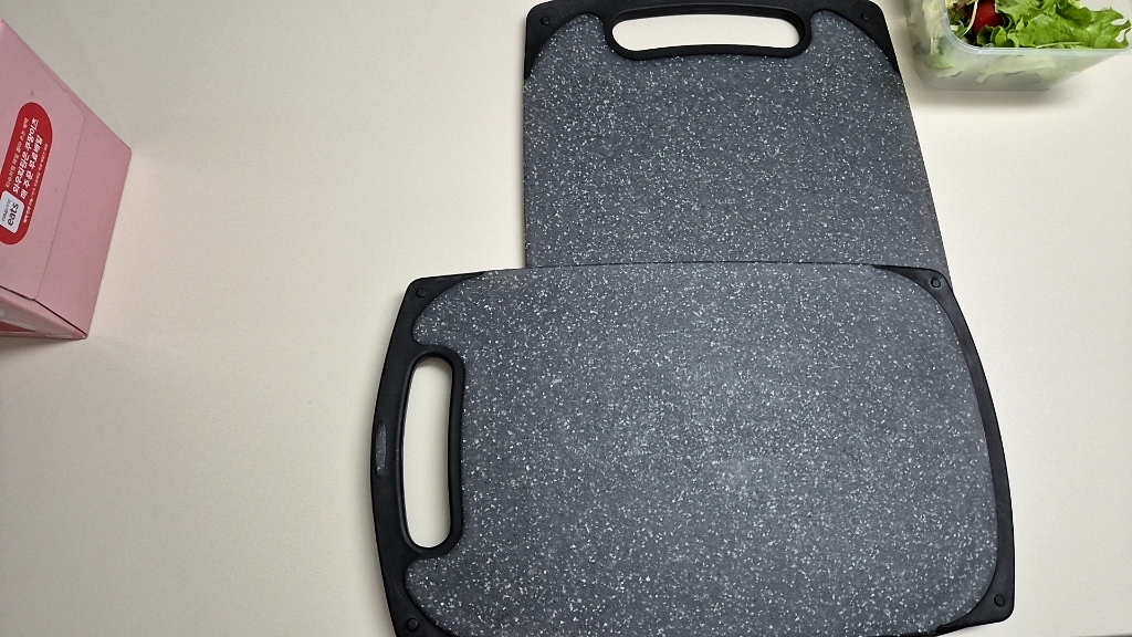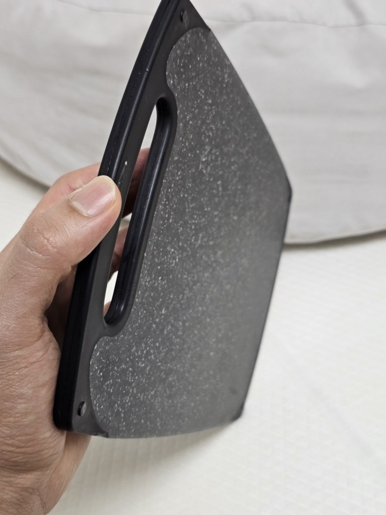 다만 이름에 ‘스톤’이 들어가서 묵직하고 단단한 돌 느낌을 기대했다면 조금 실망할 수도 있어요. 실제로는 플라스틱 기반 재질이라 생각보다 가볍고, 내구성도 딱 “일상용 도마” 수준이에요.