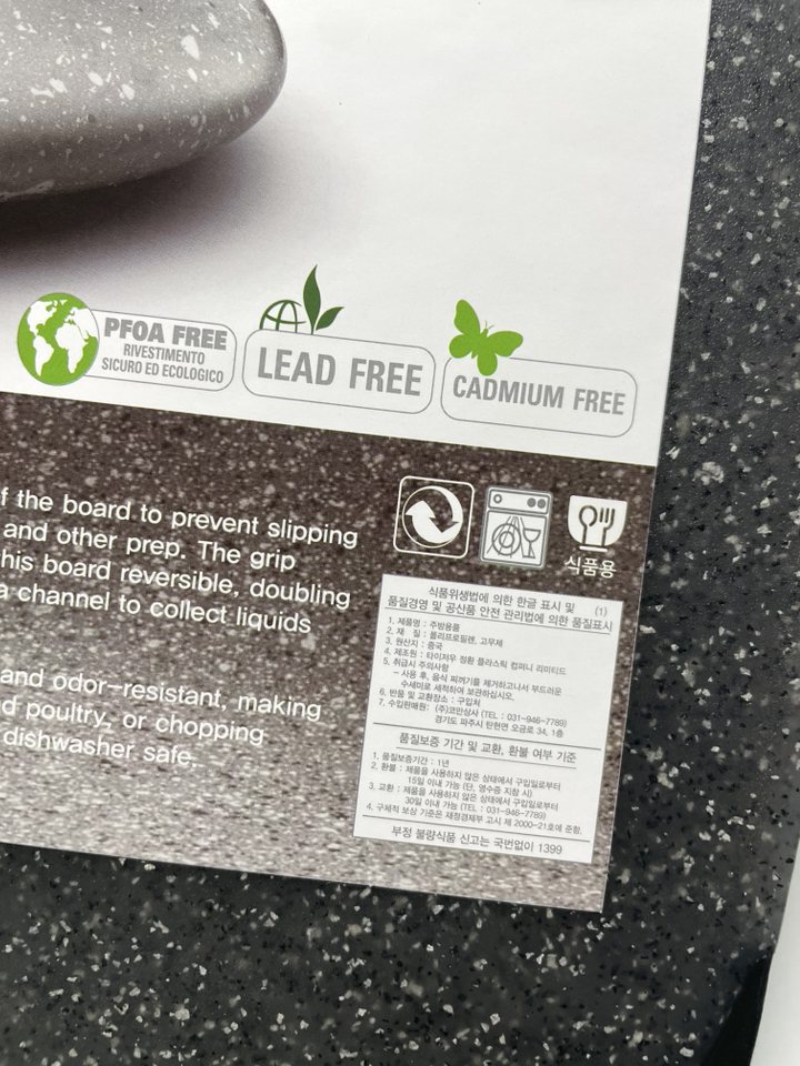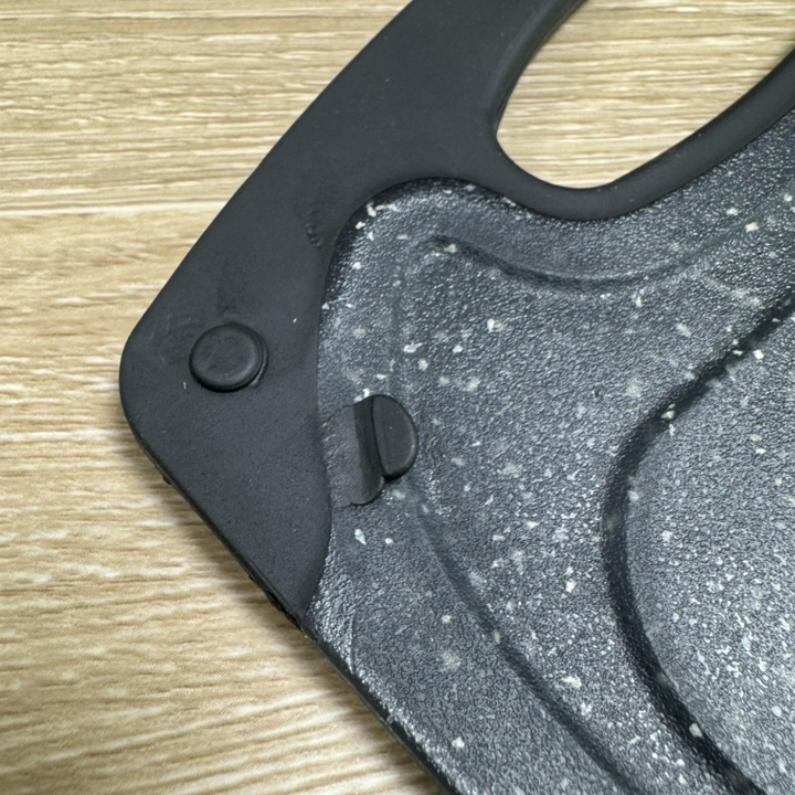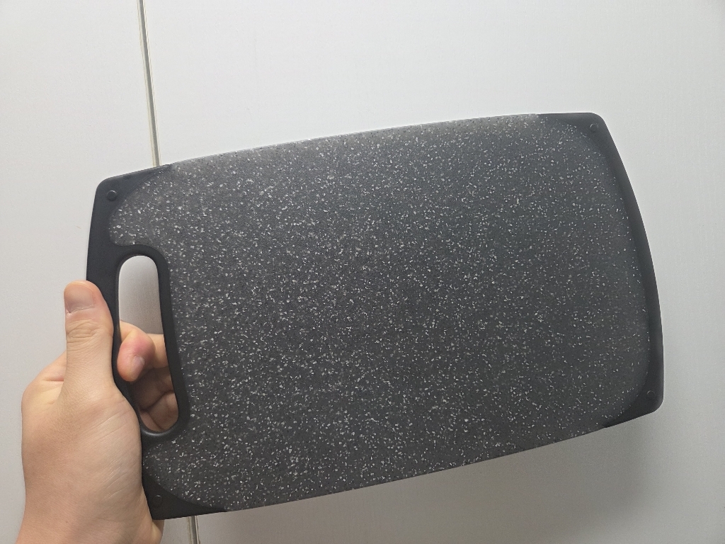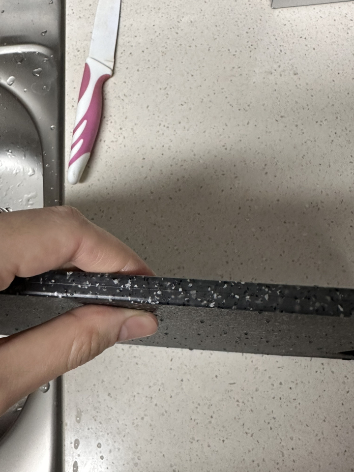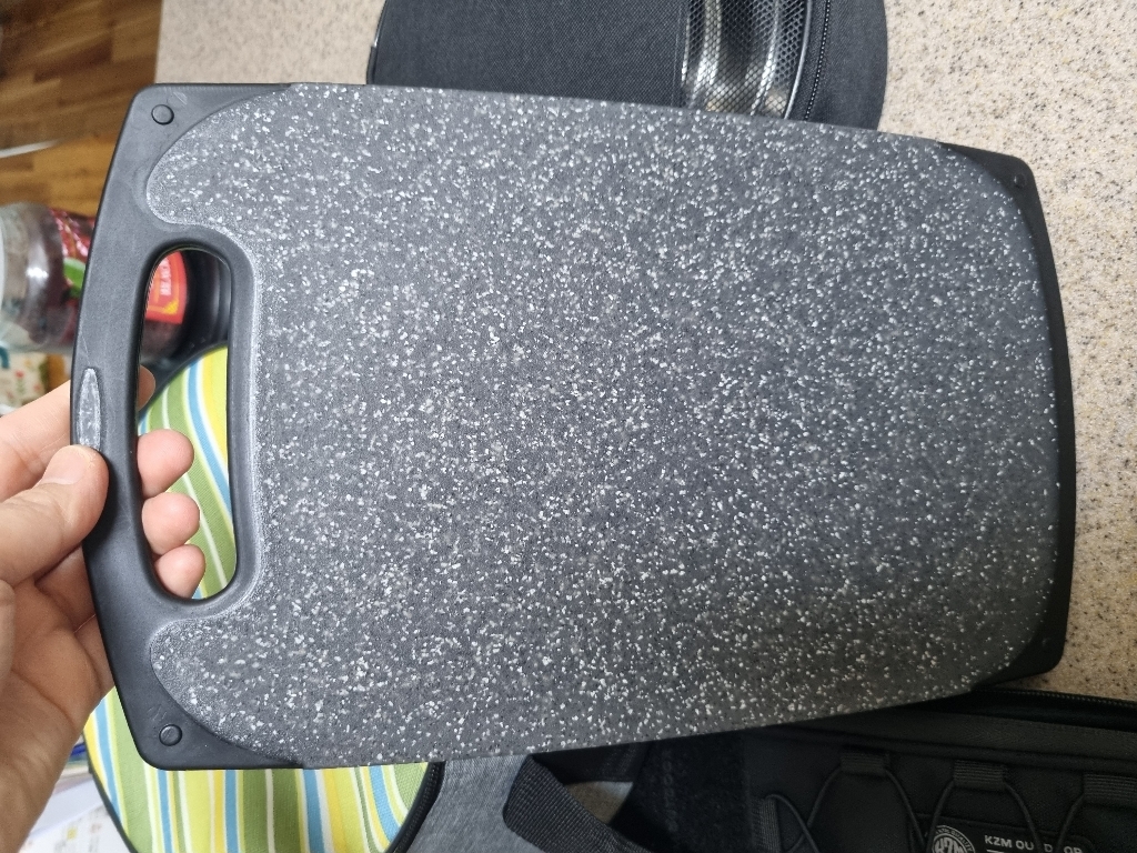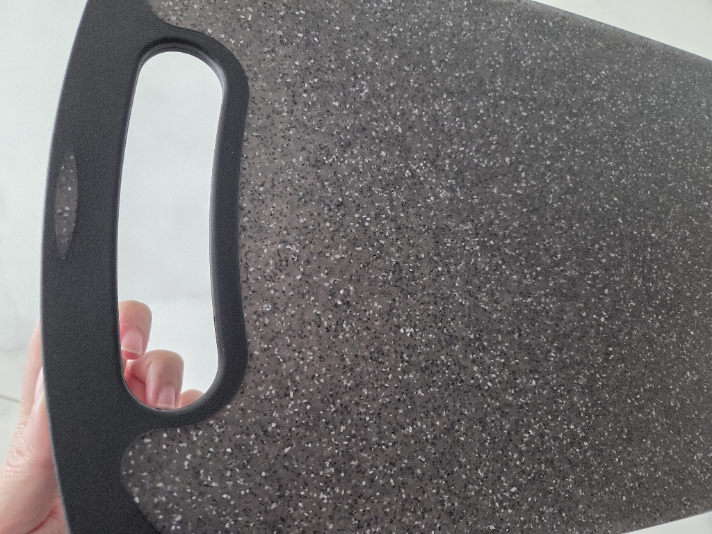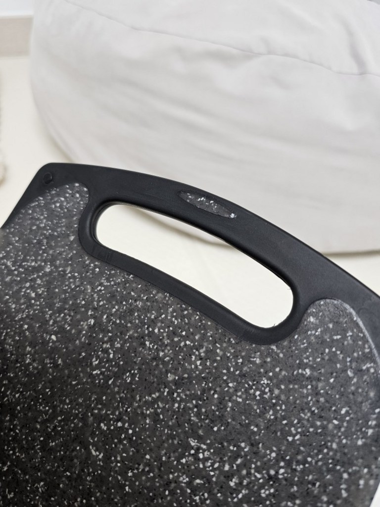 다만 이름에 ‘스톤’이 들어가서 묵직하고 단단한 돌 느낌을 기대했다면 조금 실망할 수도 있어요. 실제로는 플라스틱 기반 재질이라 생각보다 가볍고, 내구성도 딱 “일상용 도마” 수준이에요.