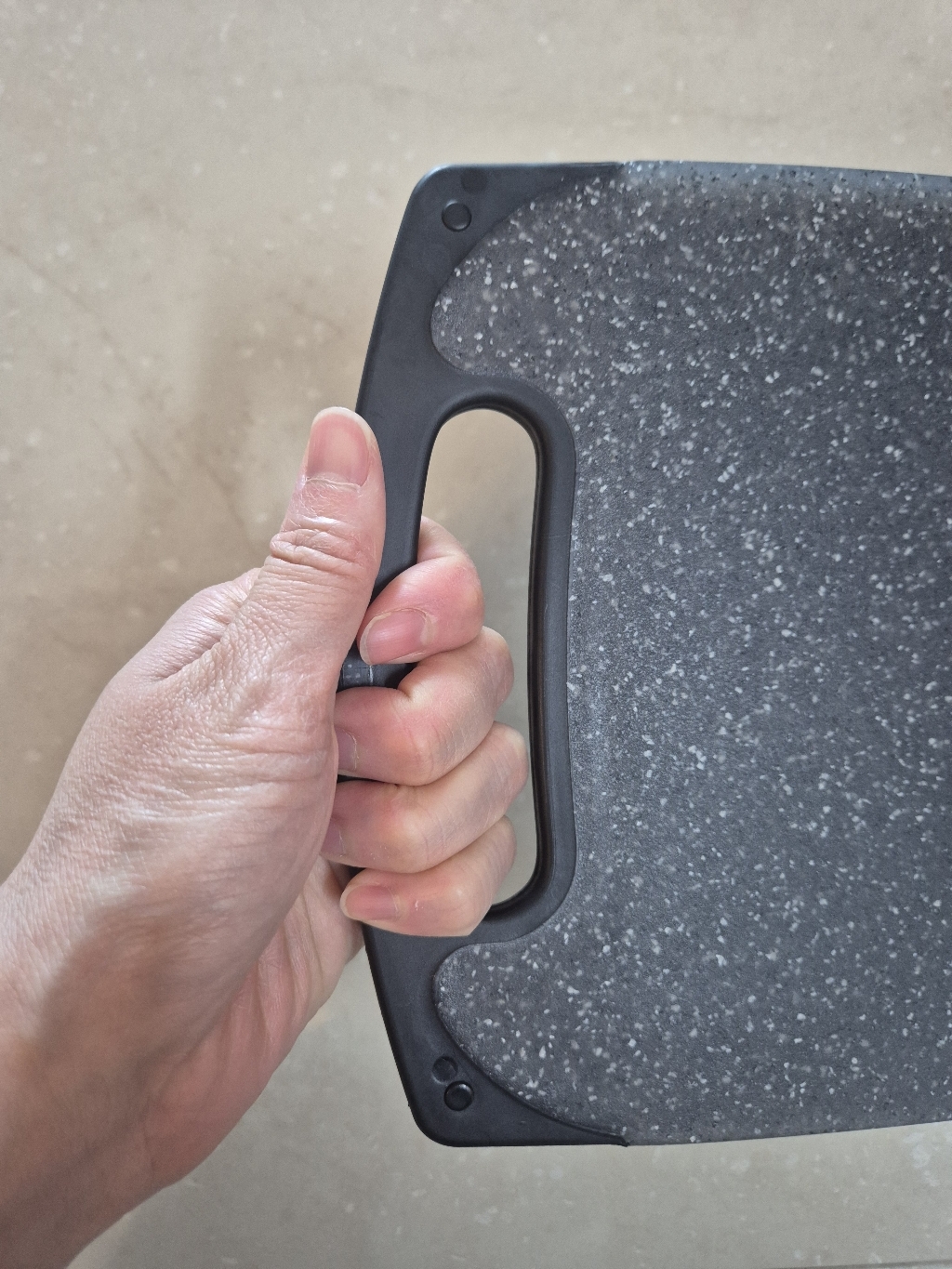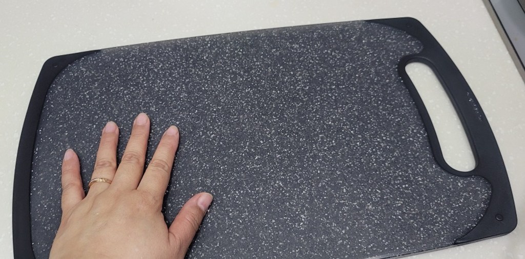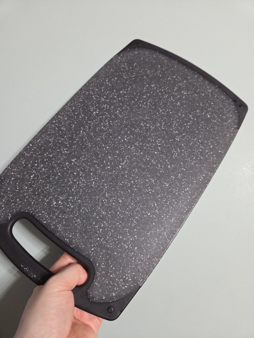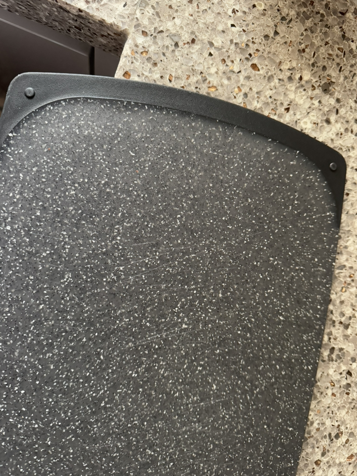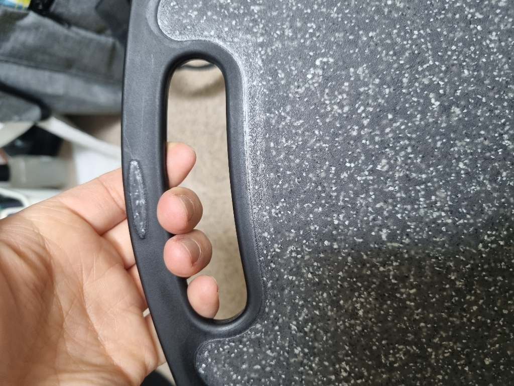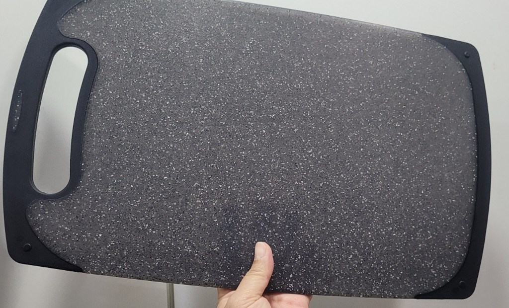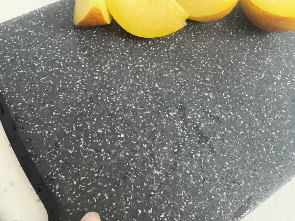 다만 이름에 ‘스톤’이 들어가서 묵직하고 단단한 돌 느낌을 기대했다면 조금 실망할 수도 있어요. 실제로는 플라스틱 기반 재질이라 생각보다 가볍고, 내구성도 딱 “일상용 도마” 수준이에요.