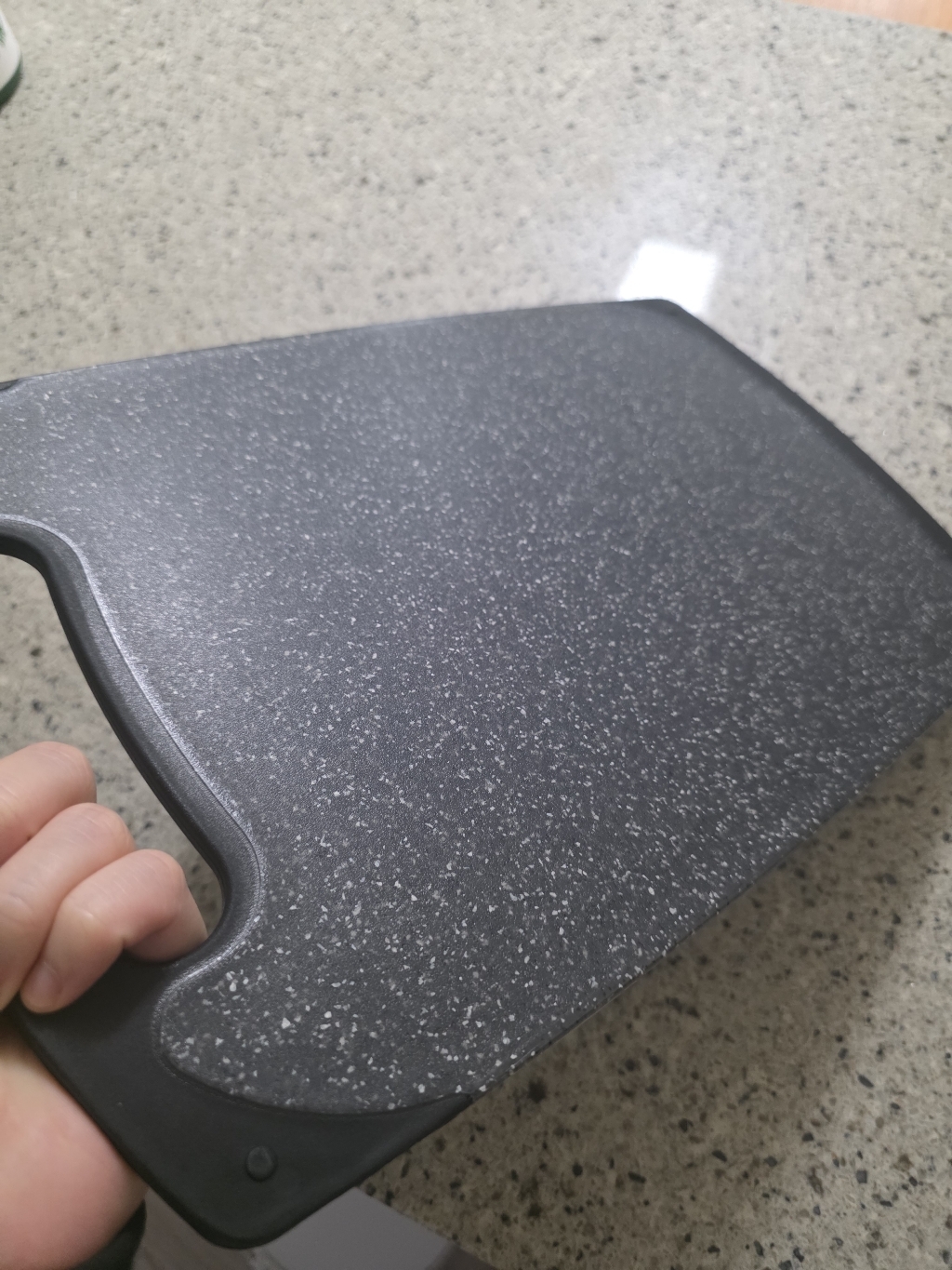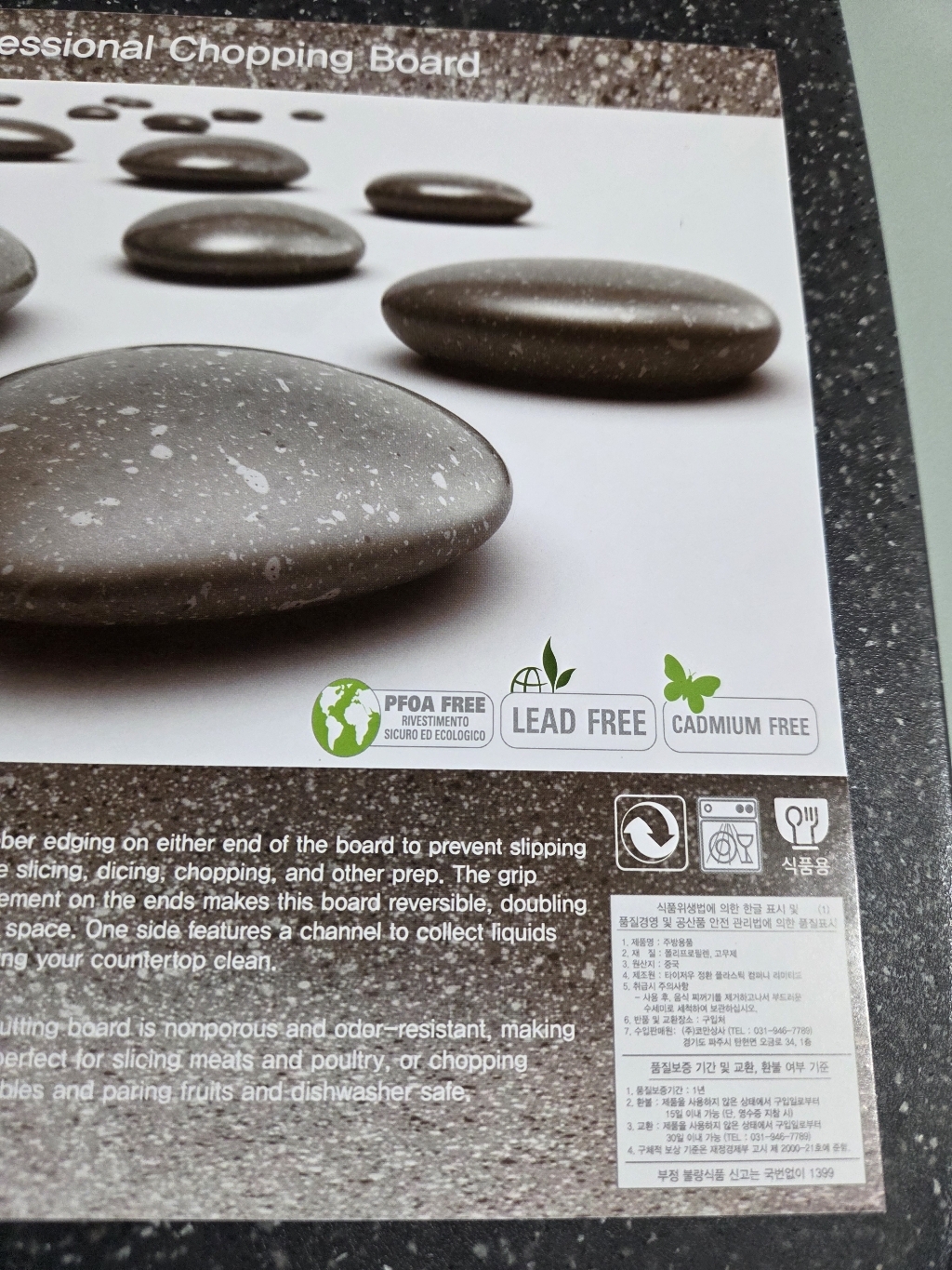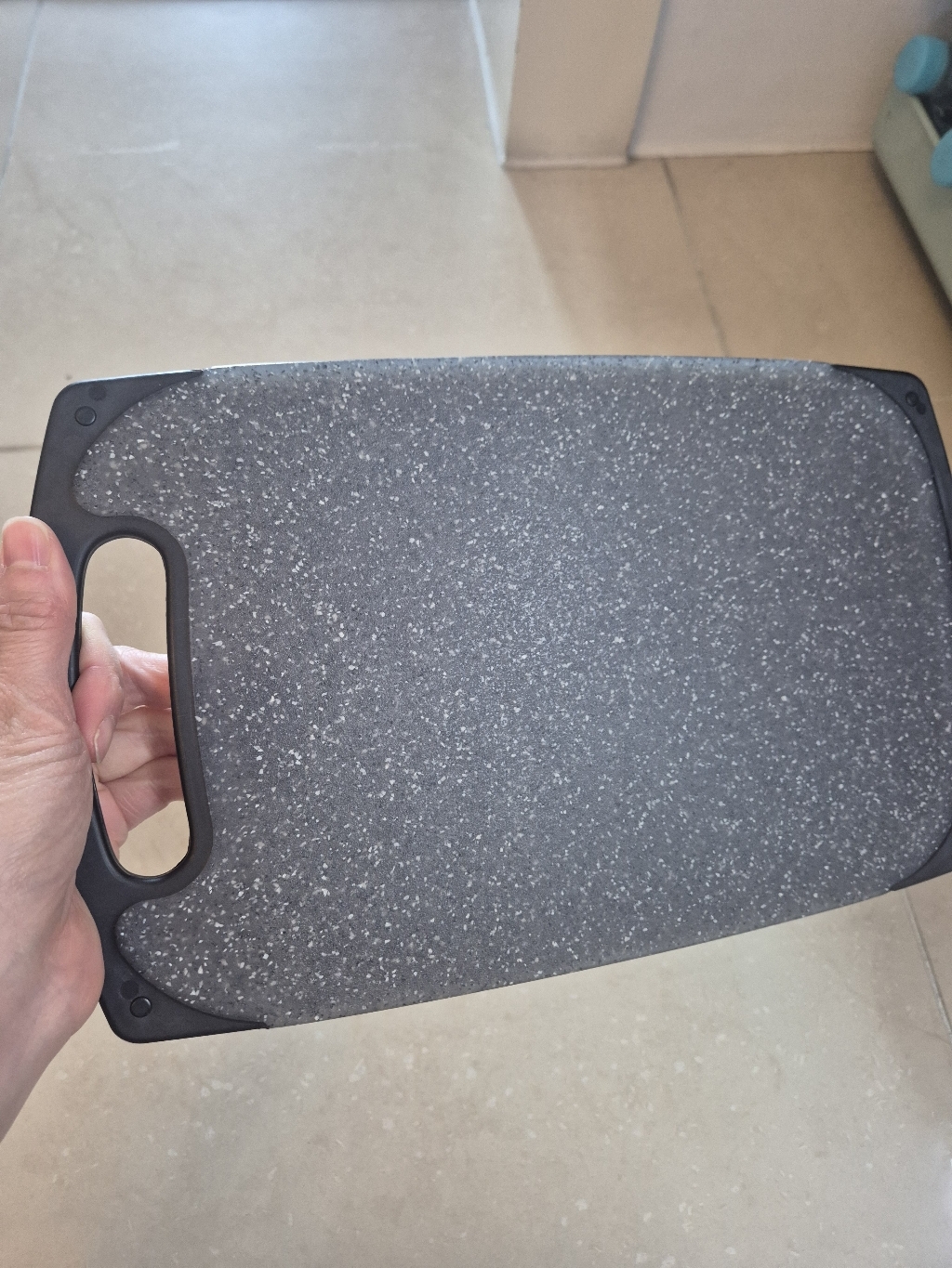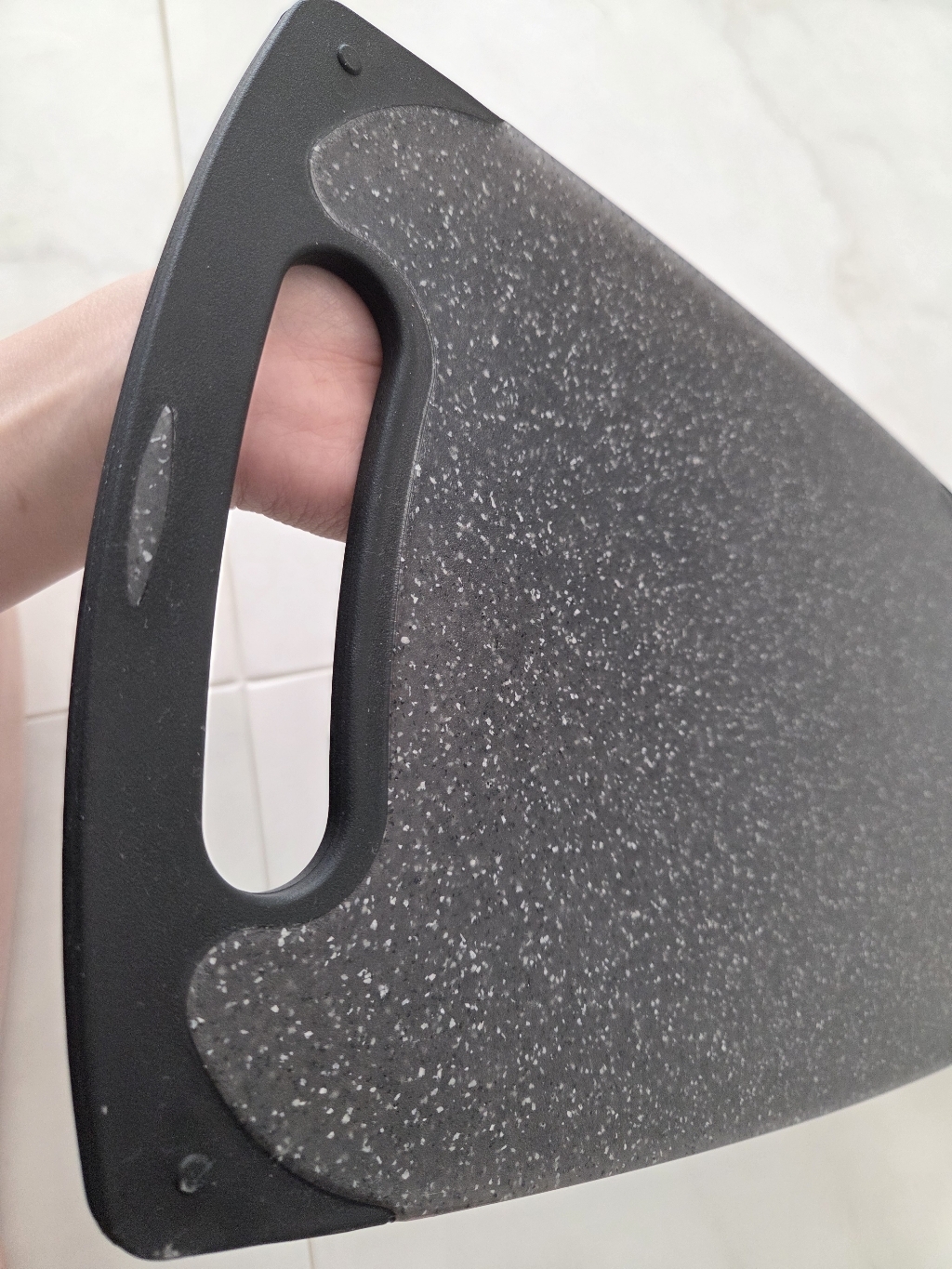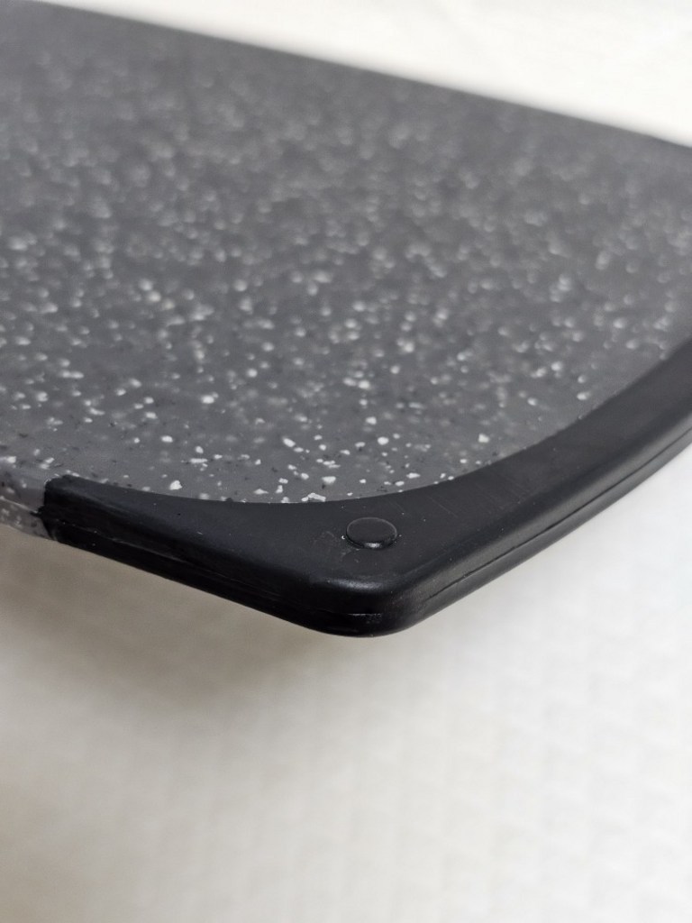 다만 이름에 ‘스톤’이 들어가서 묵직하고 단단한 돌 느낌을 기대했다면 조금 실망할 수도 있어요. 실제로는 플라스틱 기반 재질이라 생각보다 가볍고, 내구성도 딱 “일상용 도마” 수준이에요.