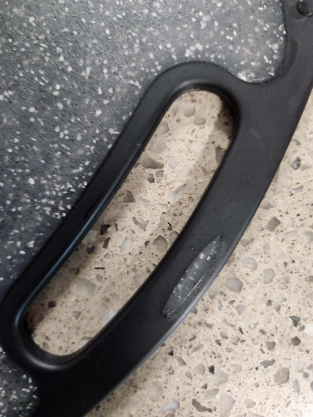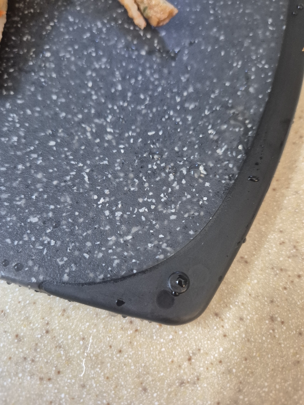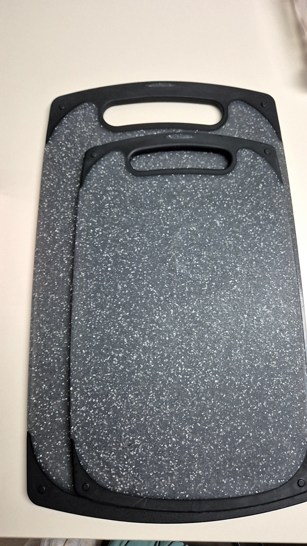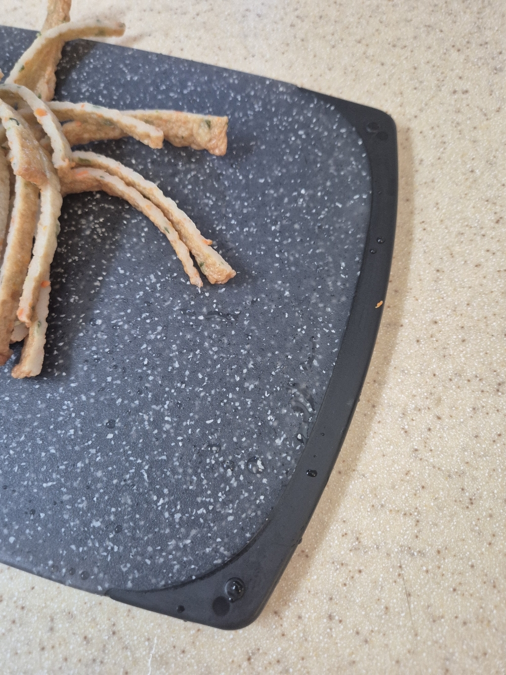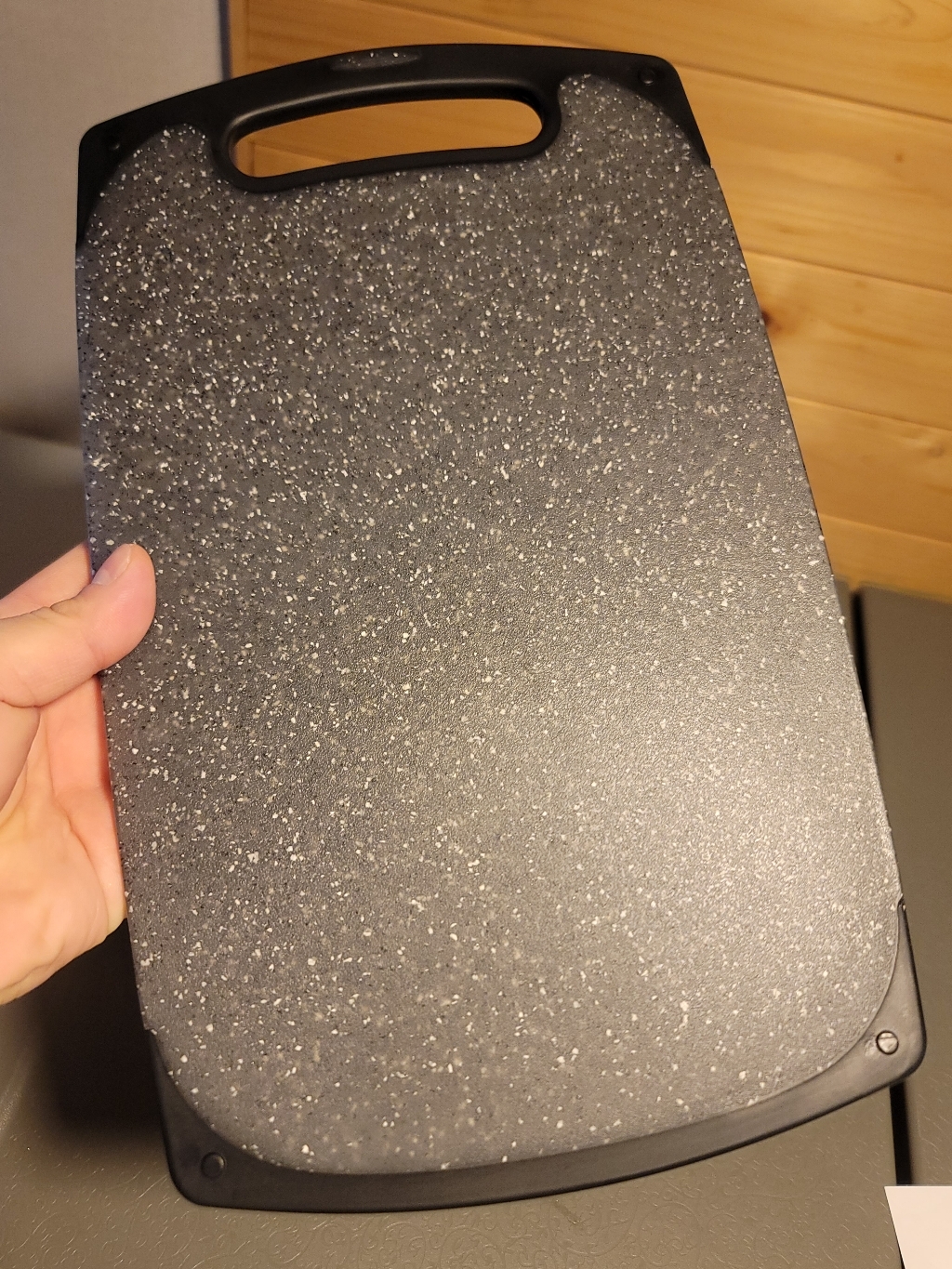 다만 이름에 ‘스톤’이 들어가서 묵직하고 단단한 돌 느낌을 기대했다면 조금 실망할 수도 있어요. 실제로는 플라스틱 기반 재질이라 생각보다 가볍고, 내구성도 딱 “일상용 도마” 수준이에요.