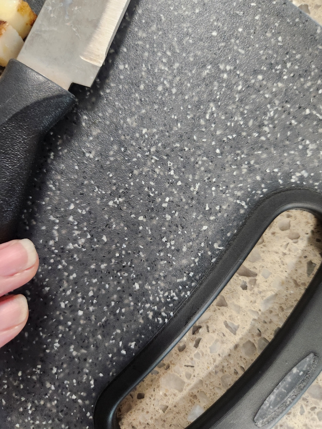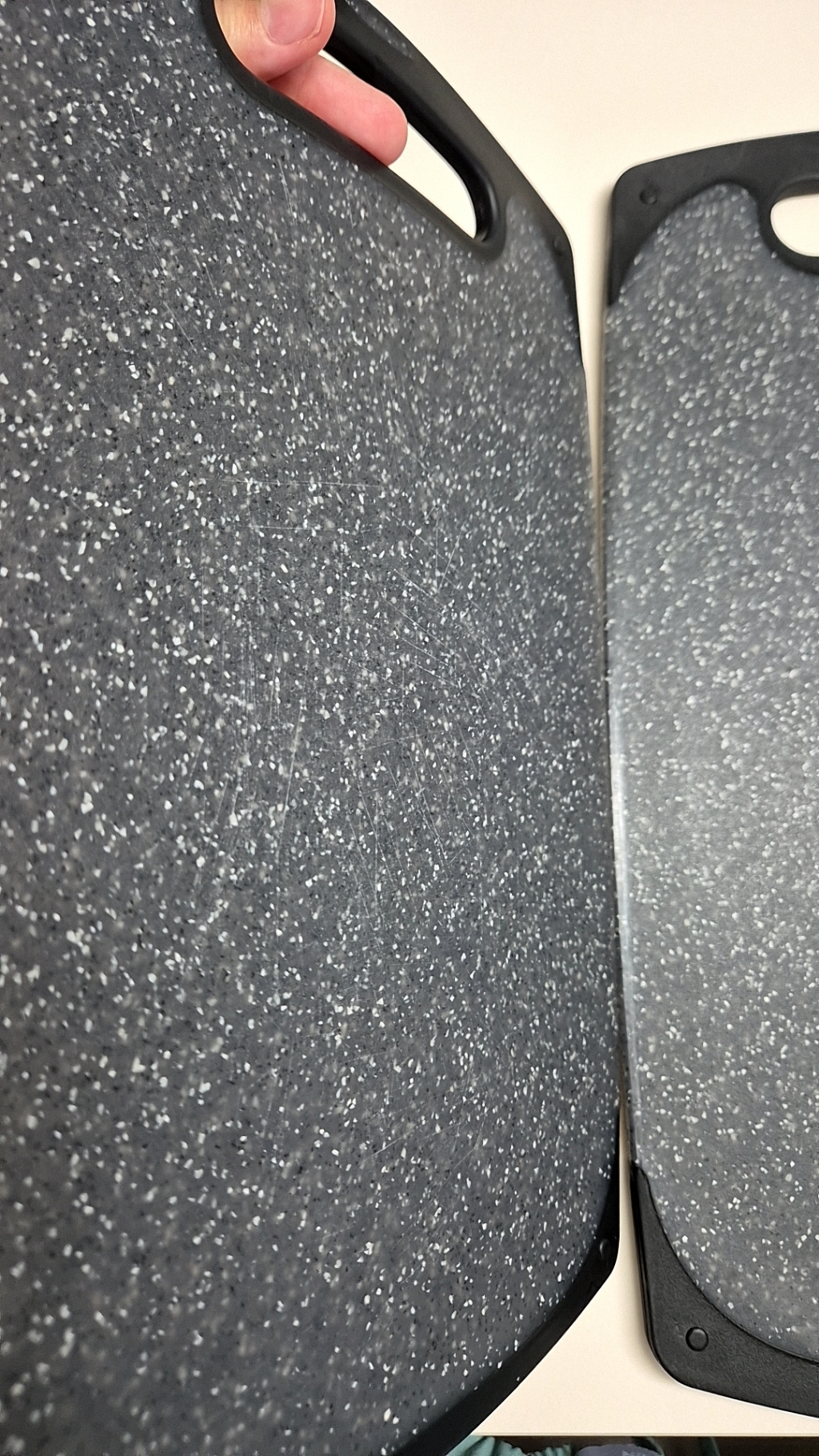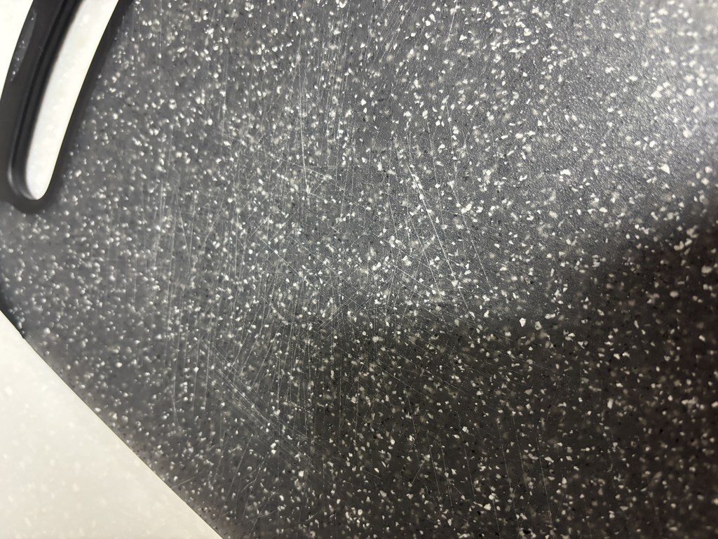 • 칼자국: 나무 도마처럼 깊게 패지는 않지만, 칼자국이 아예 안 나는 것은 아닙니다.