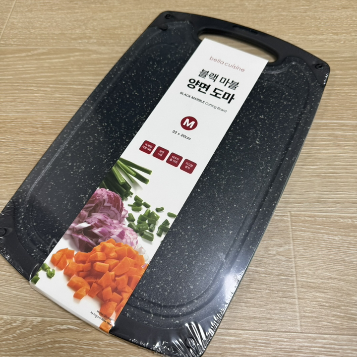 이 도마가 양면이라고 해서 반신반의했는데 실제로 써보니까 은근 편했어요. 한쪽 면으로는 과일이나 야채 썰고, 다른 면으로는 고기나 생선 손질하니까 도마를 여러 개 꺼낼 필요가 없어서 덜 번거로웠어요. 저는 평소에 요리 자주 하는 편은 아니지만 그래도 한번 칼질 시작하면 이것저것 썰게 되잖아요. 그럴 때 이게 꽤 유용하더라구요.