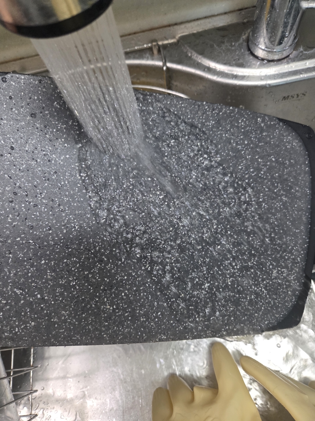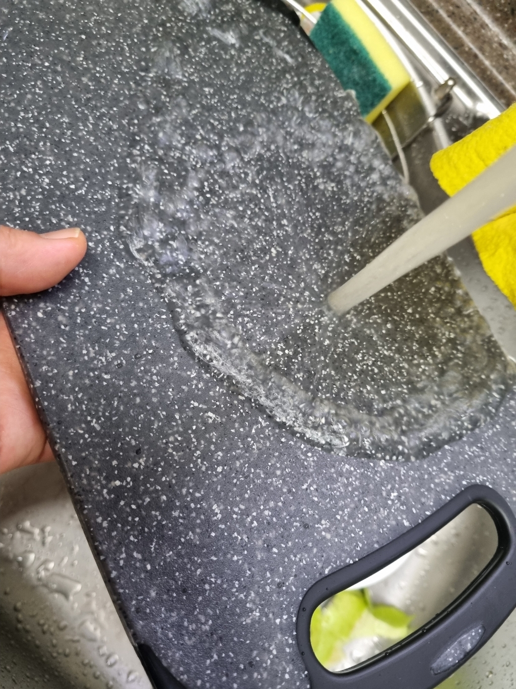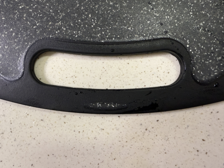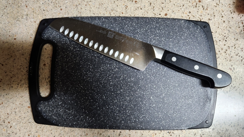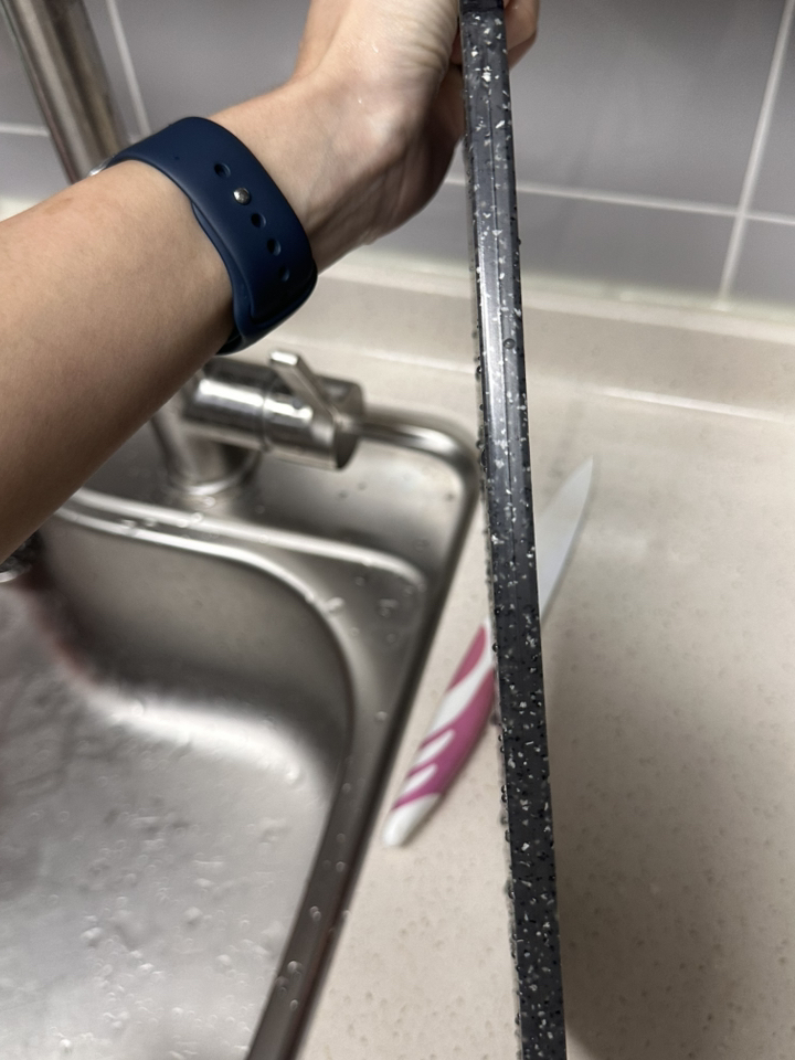 무게감이 있다는 건 장점이지만 반대로 도마를 들고 싱크대로 옮기거나 설거지 할 때는 약간 번거로울 수 있으며 칼을 세게