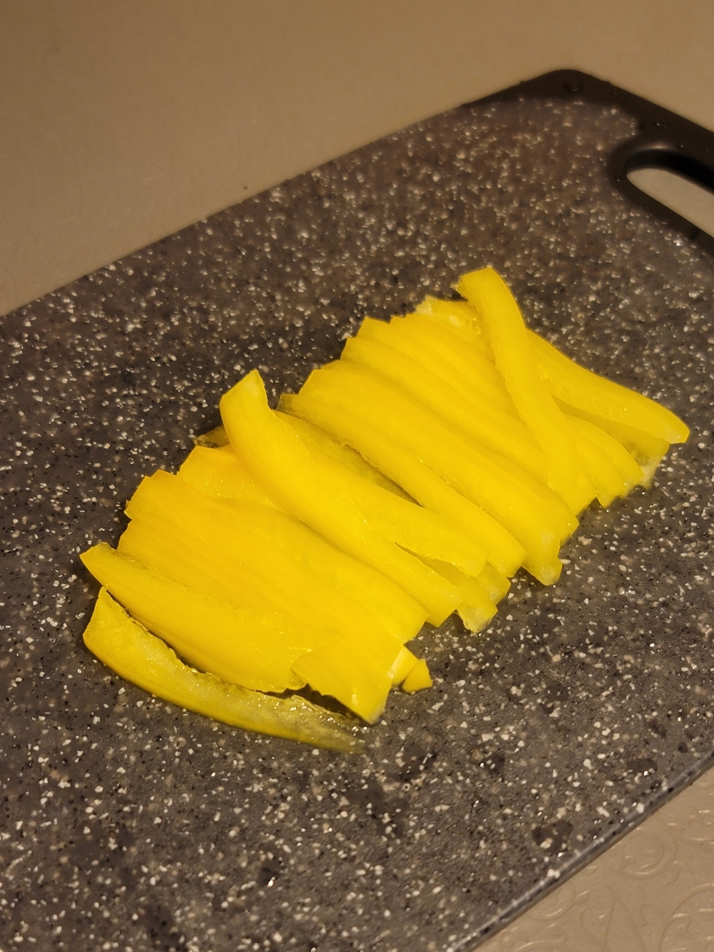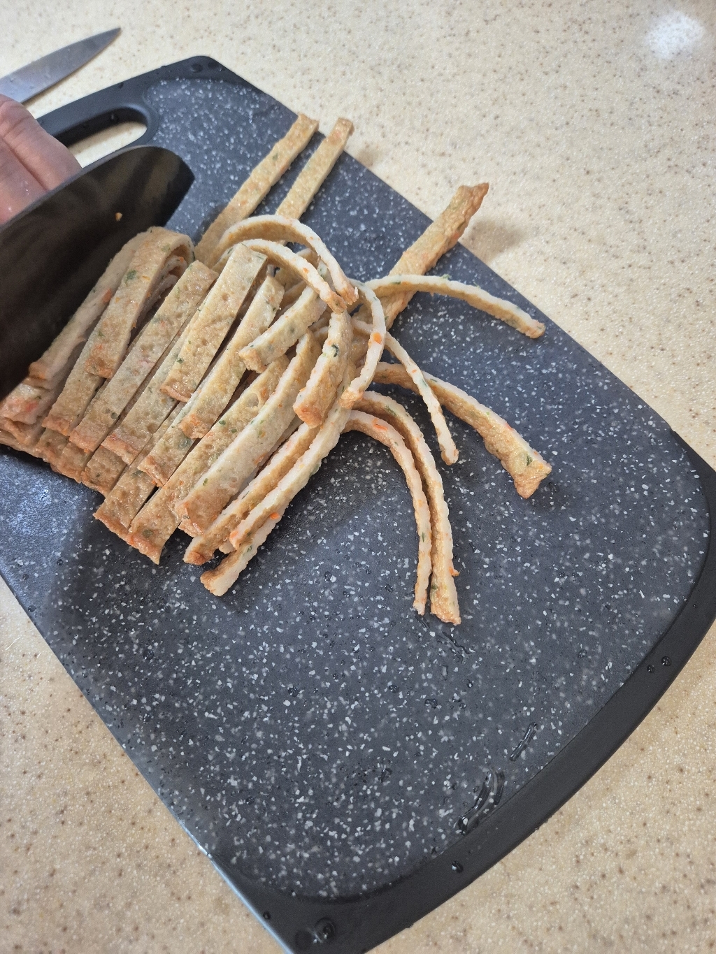 칼질할 때 느낌도 만족스러웠습니다. 너무 딱딱해서 칼날이 상할까 걱정했는데, 실제로 써보니 그런 느낌은 없었고 오히려 미끄러지지 않아서 손에 힘이 덜 들어갔어요. 도마가 조리대 위에서 잘 고정돼 있어서 빠르게 썰어도 안정감이 있었습니다. 무게감은 살짝 있는 편이지만, 가벼운 도마처럼 밀리지 않아서 오히려 장점이라고 느꼈어요.