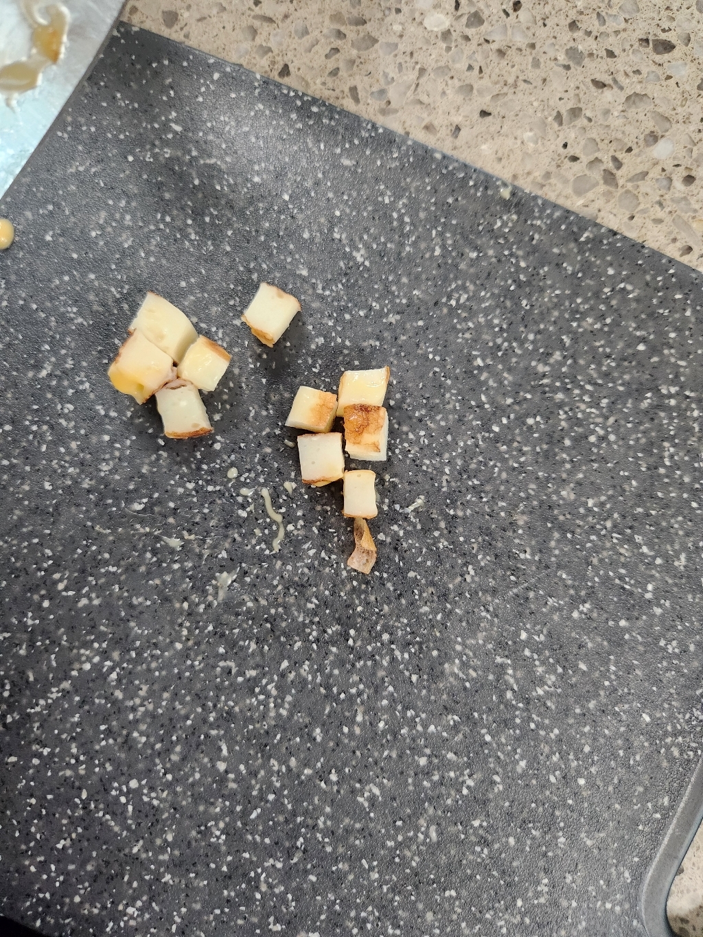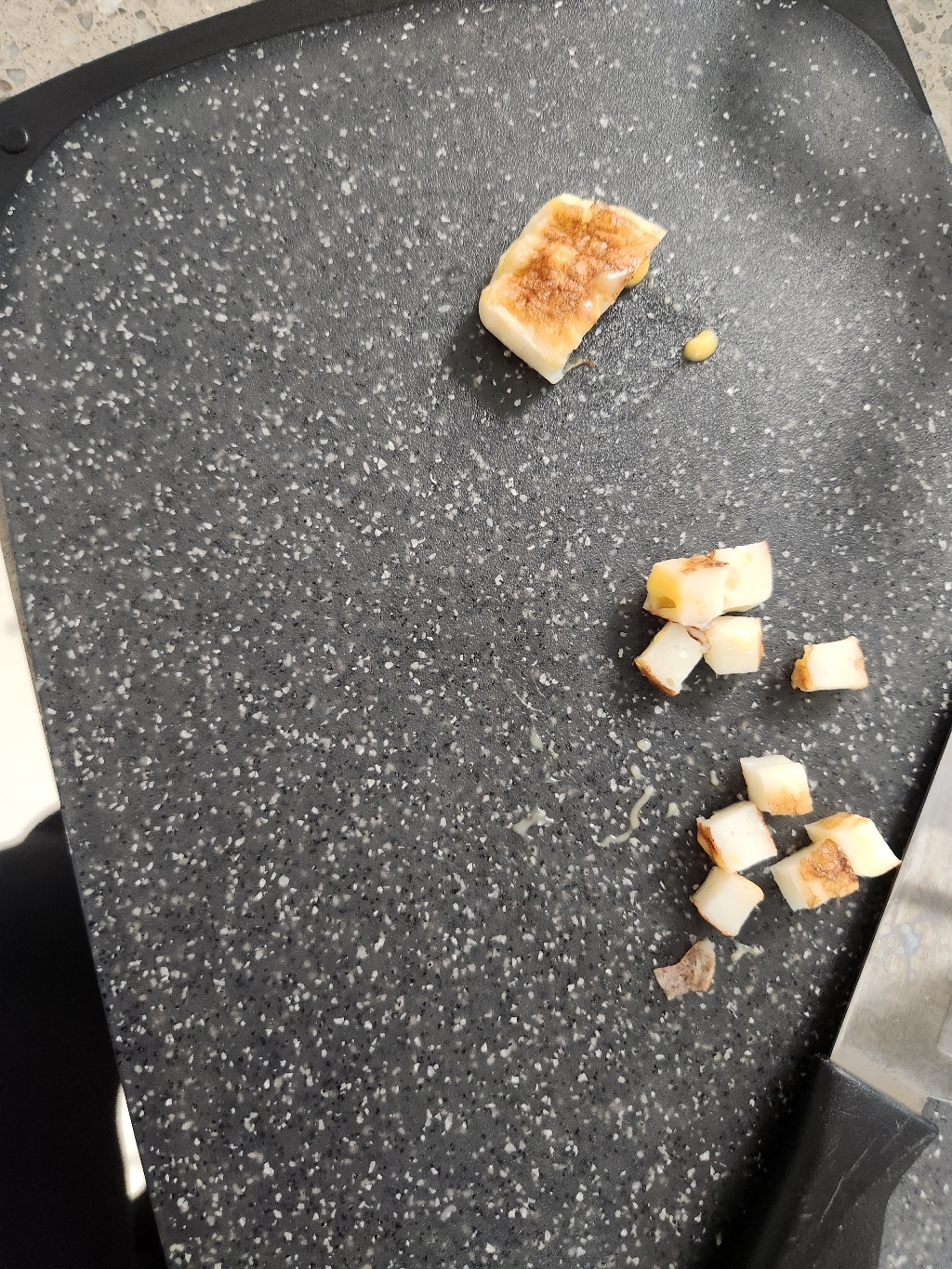 실제로 칼을 갖다 대 보니 단단하지만 표면은 매끈해서 부드럽게 칼질이 가능했습닏다.