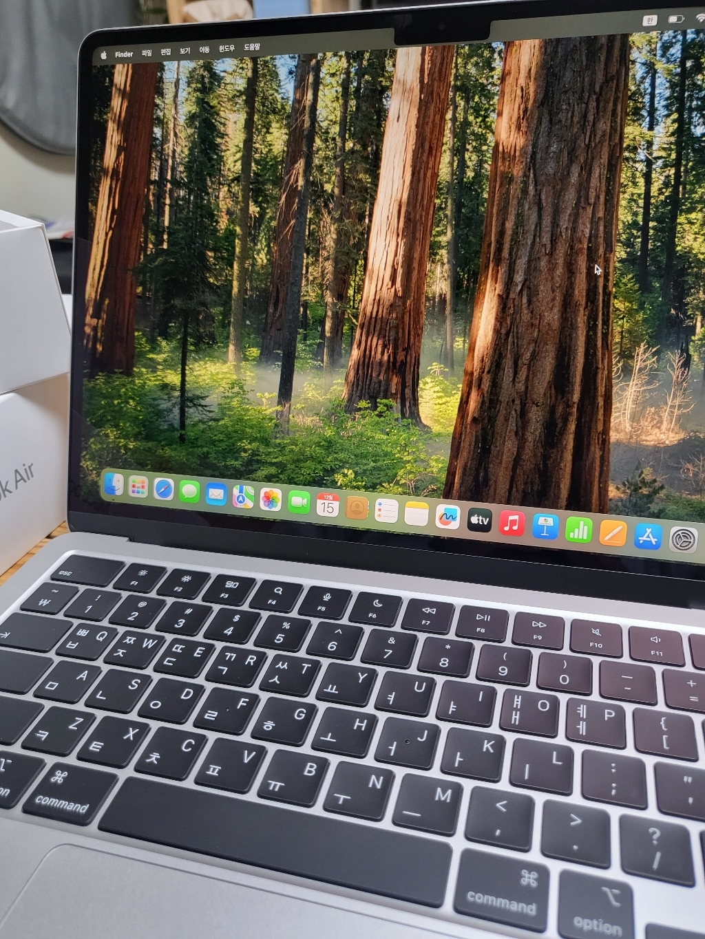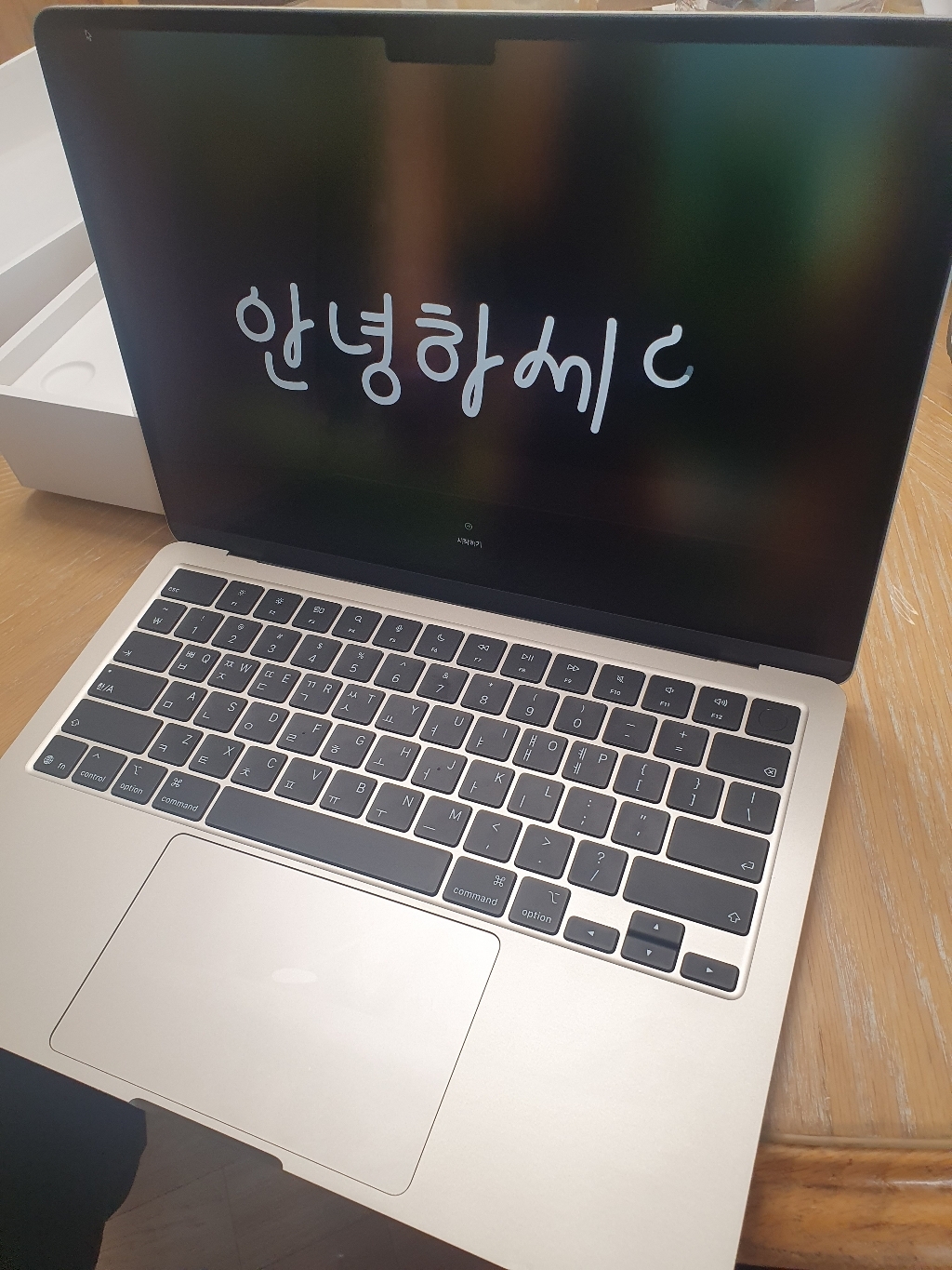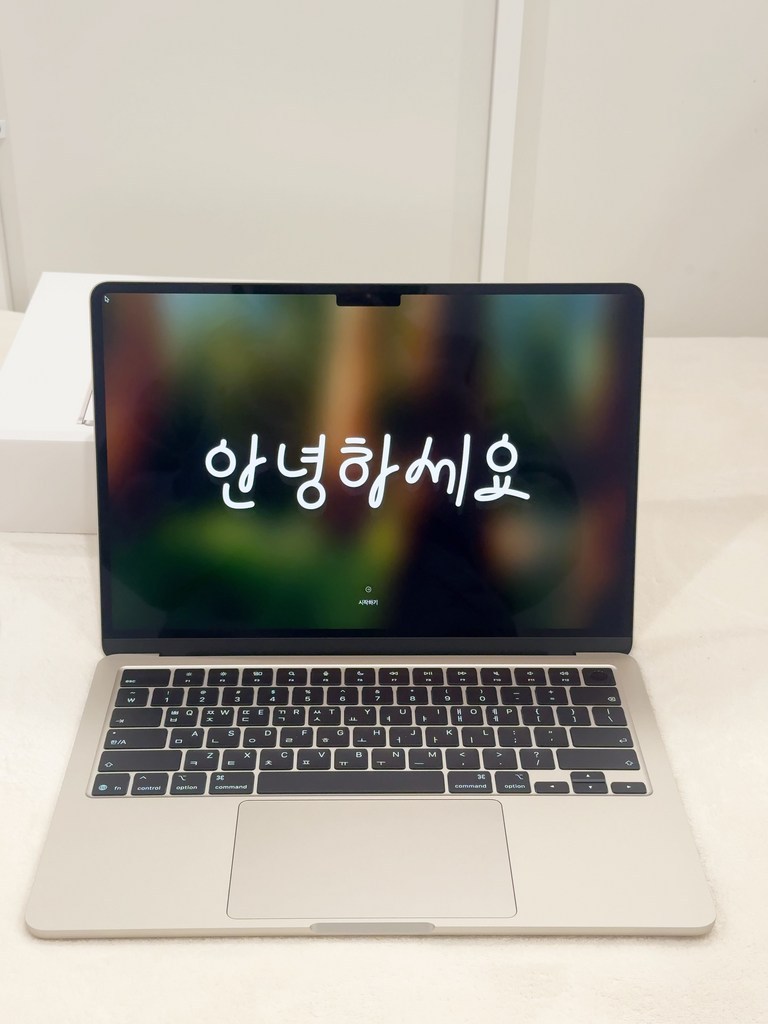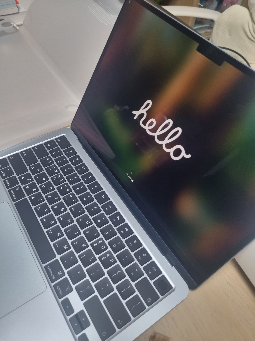 박스를 열면 맥북이 깔끔하게 포장되어 있었고, 제품 자체도 스크래치 하나 없이 완벽한 상태였습니다. 애플 특유의 심플한 디자인이 정말 예쁘고, 실제로 보면 더 고급스러워요. 전원을 켜니 바로 ‘Mac 시작하기’ 화면이 뜨고, 설정도 어렵지 않게 따라갈 수 있었습니다. 저는 맥북이 처음이라 키보드 배열이 조금 낯설긴 했지만, 한글/영문 변환도 어렵지 않고 금방 적응됐어요. 무엇보다 키감이 정말 좋고, 타이핑할 때 손이 편안한 느낌이 들어서 오래 써도 손목이 덜 피곤할 것 같아요.
