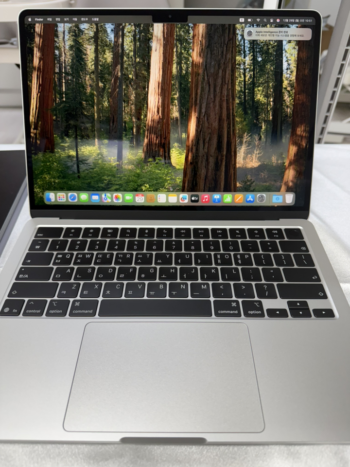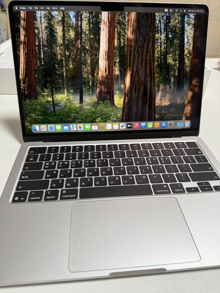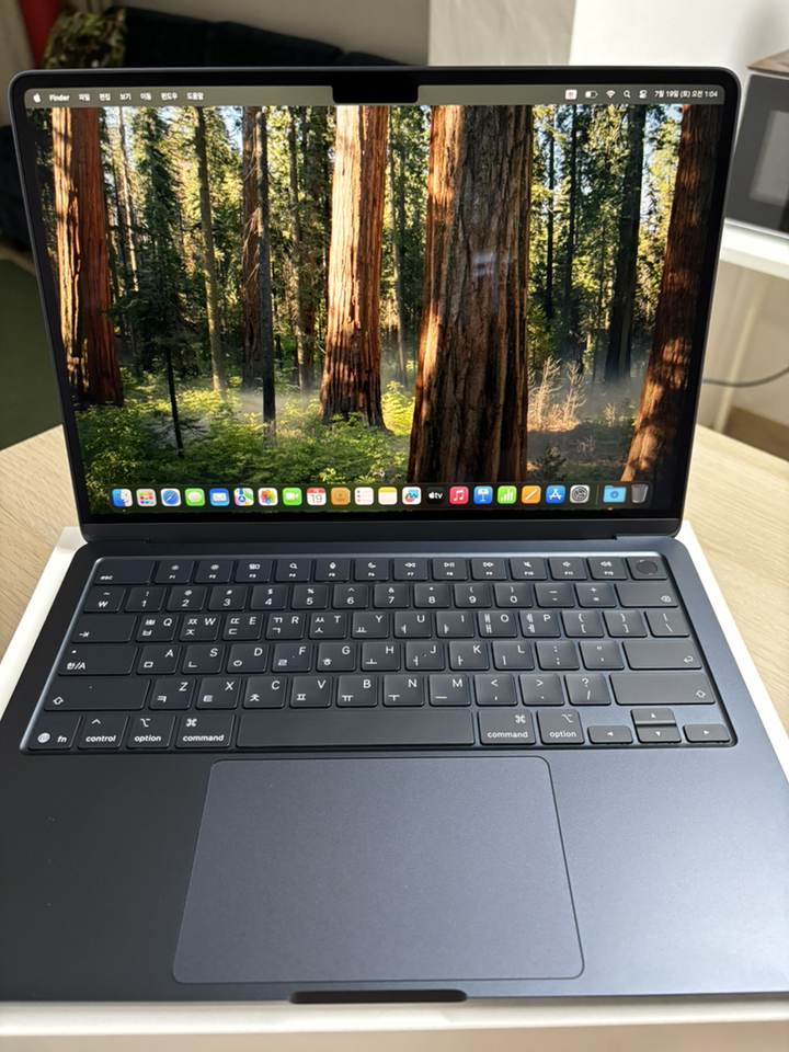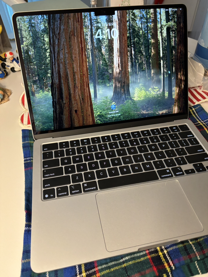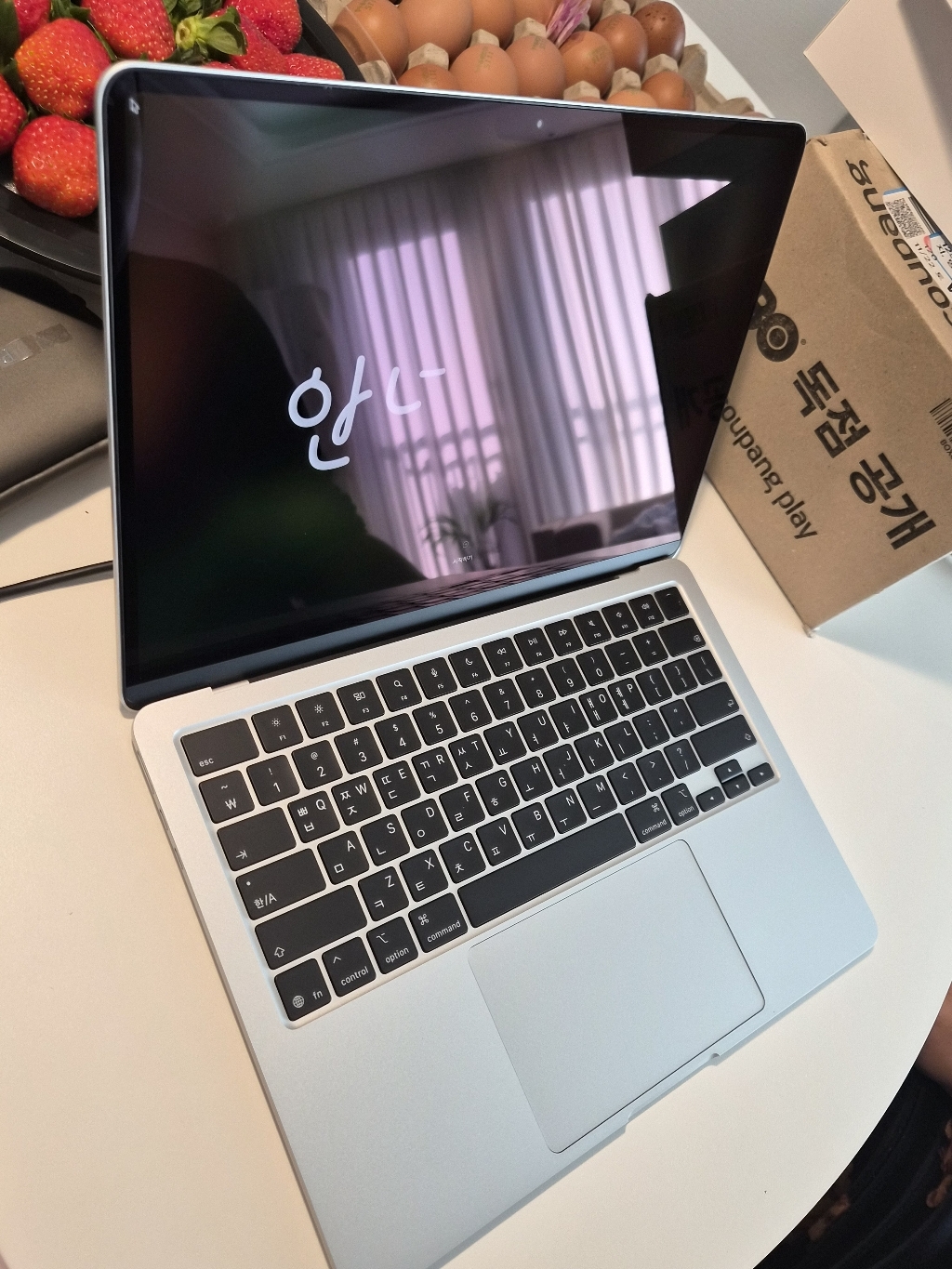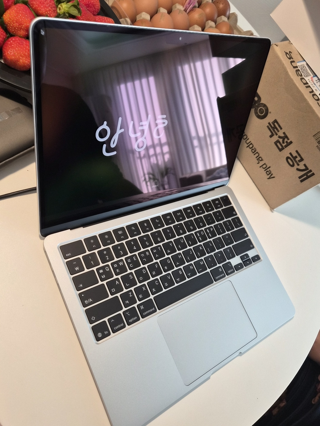 박스를 열면 맥북이 깔끔하게 포장되어 있었고, 제품 자체도 스크래치 하나 없이 완벽한 상태였습니다. 애플 특유의 심플한 디자인이 정말 예쁘고, 실제로 보면 더 고급스러워요. 전원을 켜니 바로 ‘Mac 시작하기’ 화면이 뜨고, 설정도 어렵지 않게 따라갈 수 있었습니다. 저는 맥북이 처음이라 키보드 배열이 조금 낯설긴 했지만, 한글/영문 변환도 어렵지 않고 금방 적응됐어요. 무엇보다 키감이 정말 좋고, 타이핑할 때 손이 편안한 느낌이 들어서 오래 써도 손목이 덜 피곤할 것 같아요.