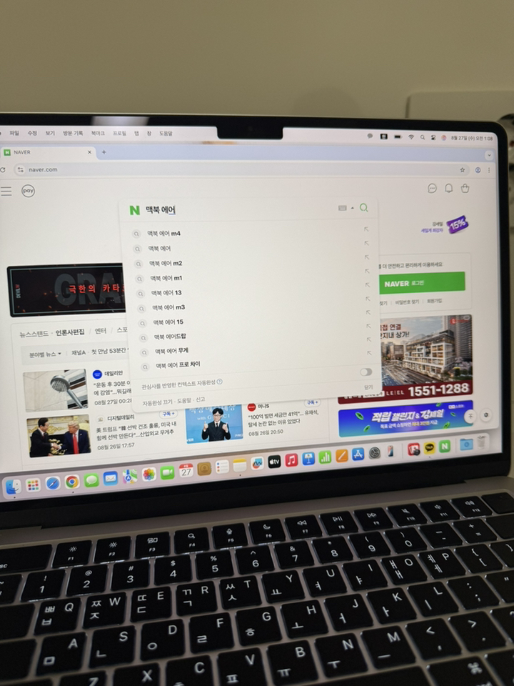 성능은 완벽한데, 들고 다니기에는 확실히 부담되는 무게였어요. 그래서 결국 같은 시리즈의 맥북 에어 M4 모델을 하나 더 들이게 되었고, 이게 또 예상 외로 너무 만족스러웠습니다.