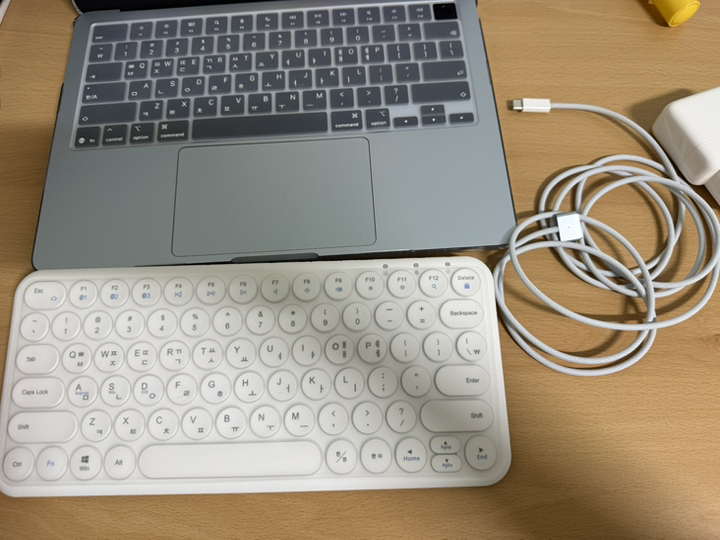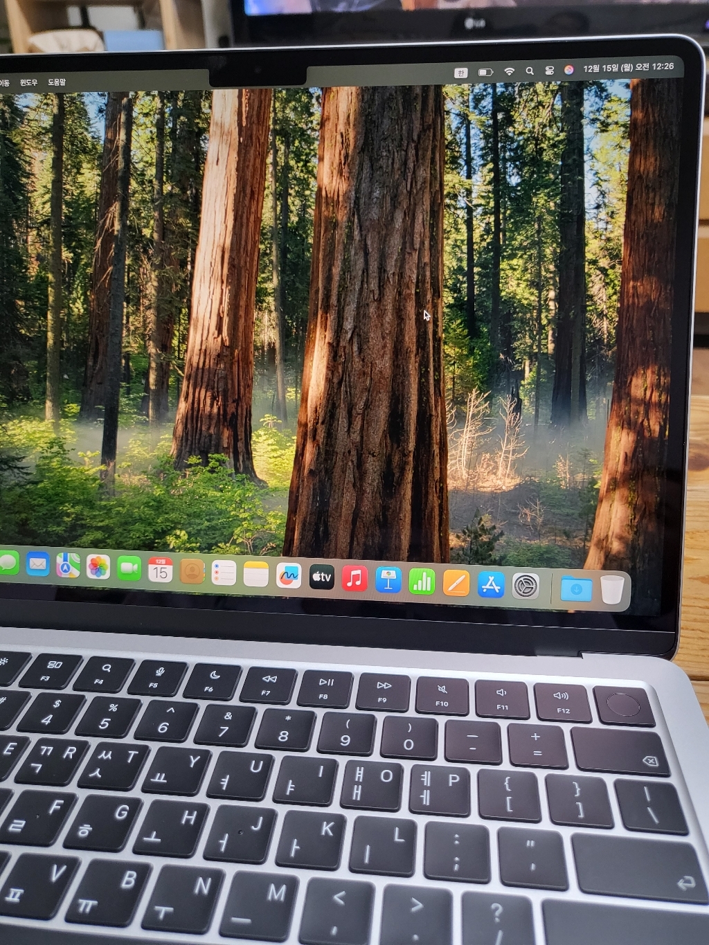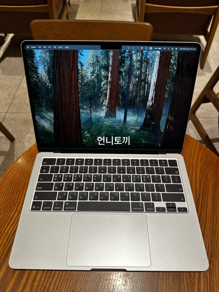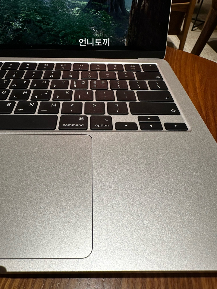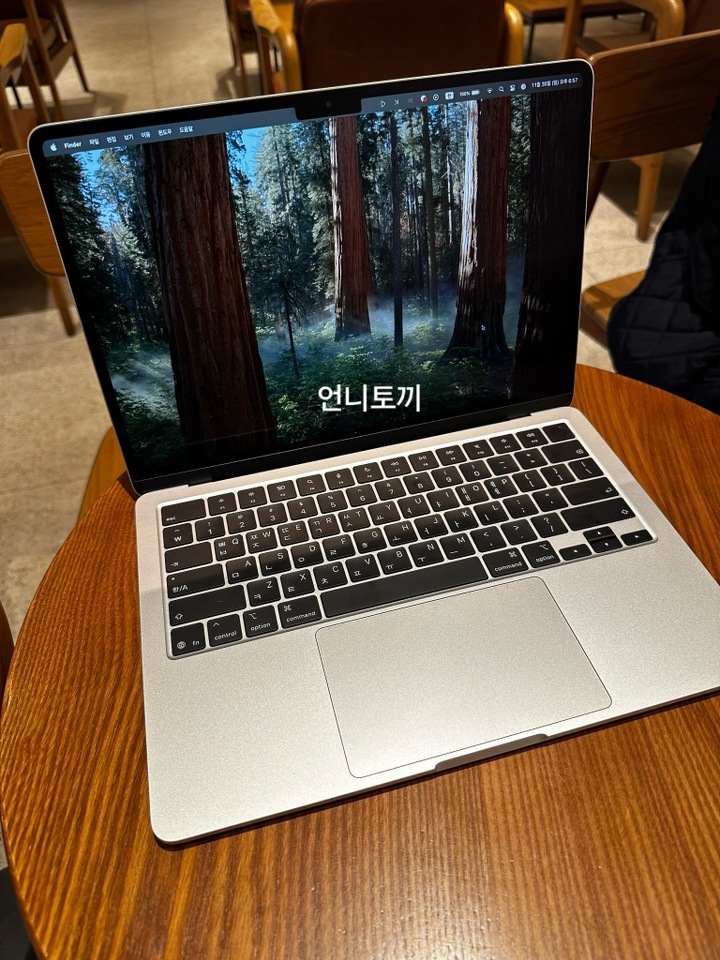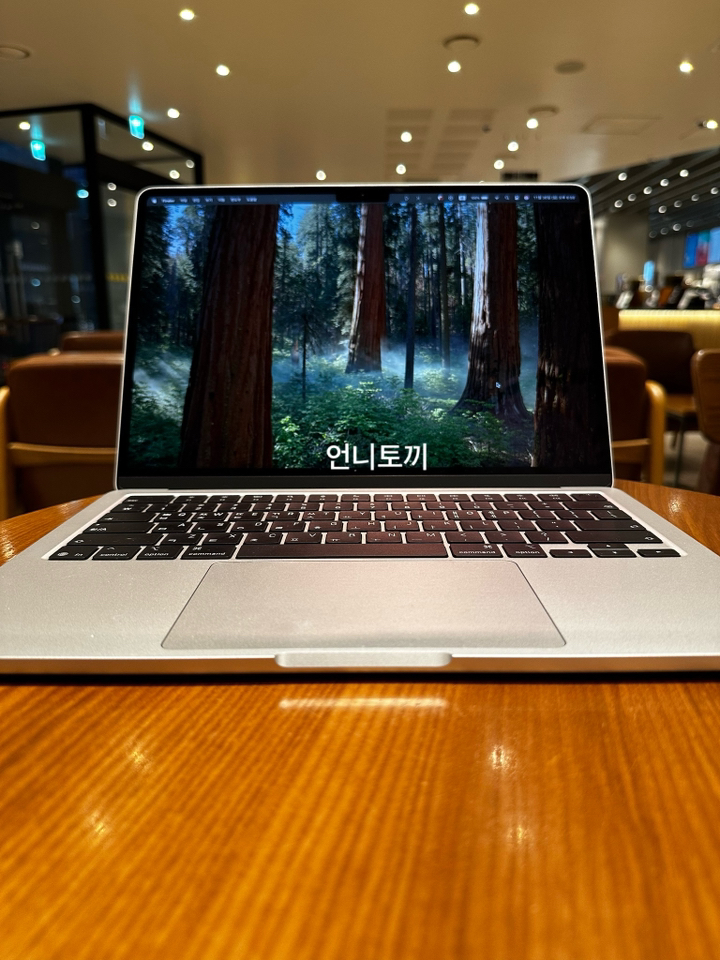 화면은 13인치라 작을 줄 알았는데, 베젤이 얇아진 덕분인지 답답함이 거의 없어요. 색감도 자연스럽고 눈에 편안해서 길게 작업해도 피로감이 크게 없습니다. 웹 작업, 기획, 글쓰기 같은 작업은 오히려 에어에서 하는 게 더 집중이 잘 되는 느낌도 있었어요.