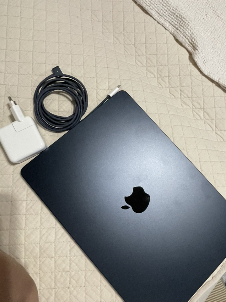 미드나이트 색상 실물 보고 감탄했어요. 약간 블랙과 네이비 사이 느낌인데, 조명에 따라 달라 보여서 질리지 않습니다. 지문은 좀 남지만, 예뻐서 용서됨. 진심으로 맥북 중 가장 세련된 색상이라고 생각해요.