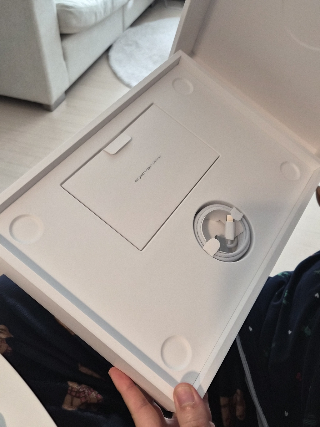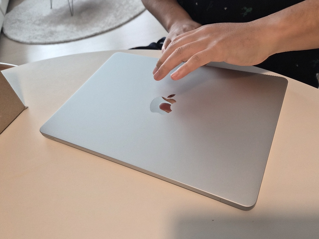 이건 정말 말할 필요가 없을 정도예요. 최근 몇 년간 맥북 디자인이 크게 변한 것도 아니고, 실버 색상도 늘 보던 색인데도 이상하게 새 모델은 유난히 세련돼 보였습니다. 특별한 장식 하나 없는데도 예쁩니다. 군더더기 없는 디자인이어서 그런지 책상 위에 올려놓기만 해도 공간이 깨끗해지고 마음이 차분해지는 기분이 들었어요.