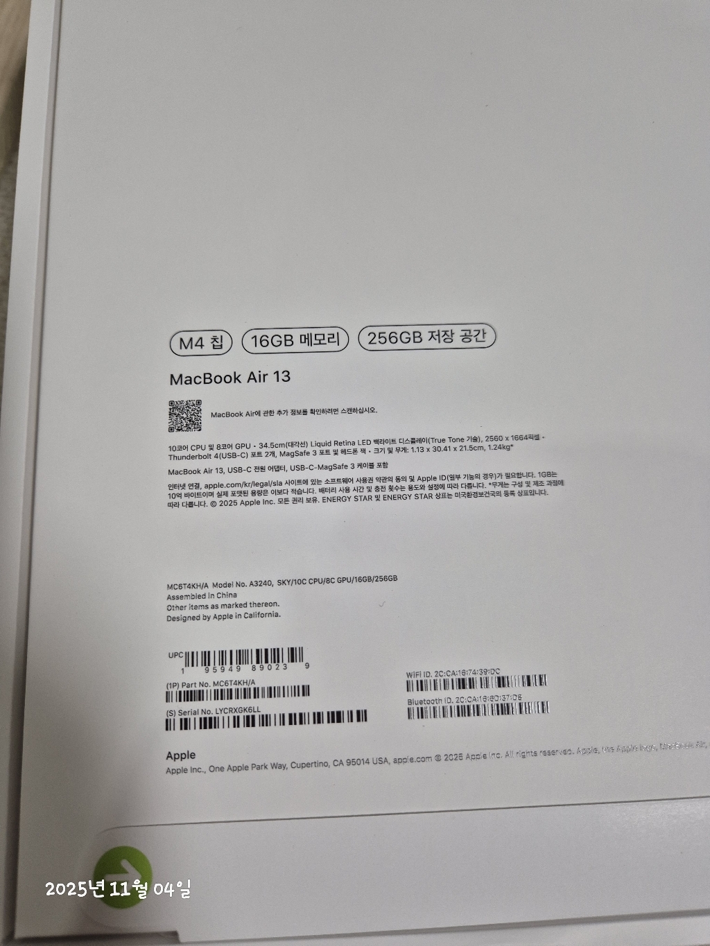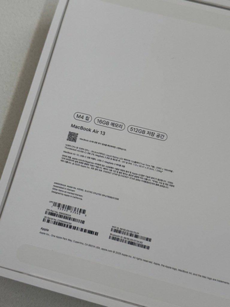 이번에 M4 13인치 512GB 로 업그레이드했습니다.