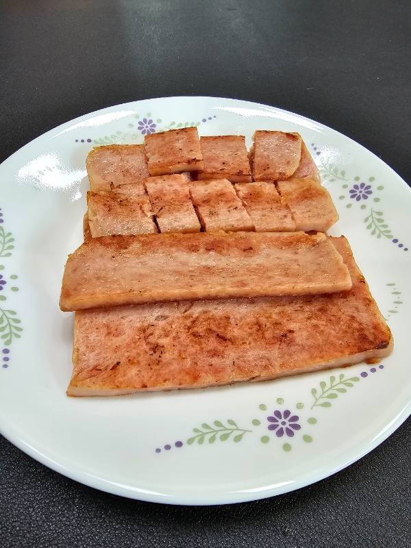 스팸이 살짝 짠데, 끓는 물에 금방 한번 넣어다 빼서 조리하면 짠맛도 덜하고 기름기도 줄일수 있어요.