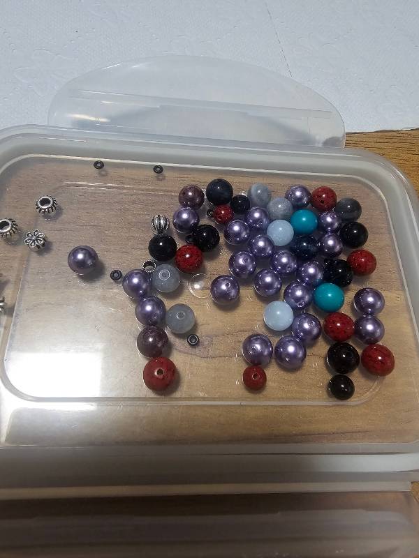 결국 목걸이를 분해해 팔찌로 리폼했는데, 원석(호안석, 아쿠아마린, 블랙오닉스 등)과 참 장식을 조합해 커플팔찌를 만들었습니다.
