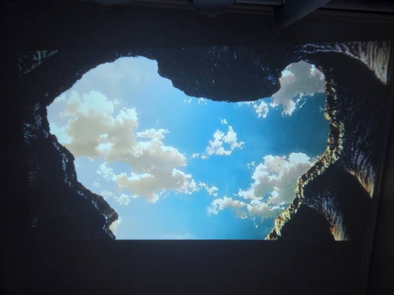 화질도 꽤 괜찮고, 자동 키스톤에 180도 회전이라 각도 맞추는 것도 편하고요.