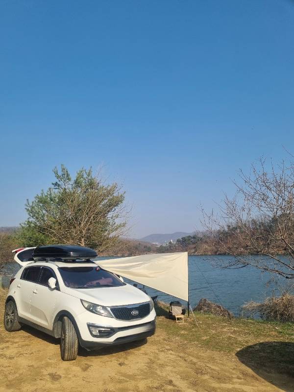 차에 뾱뾱이로 딱 붙이고 폴대 두개만 연결하니 진짜 너무 간편합니다 우중캠핑 때 썼는데 비 안 새요