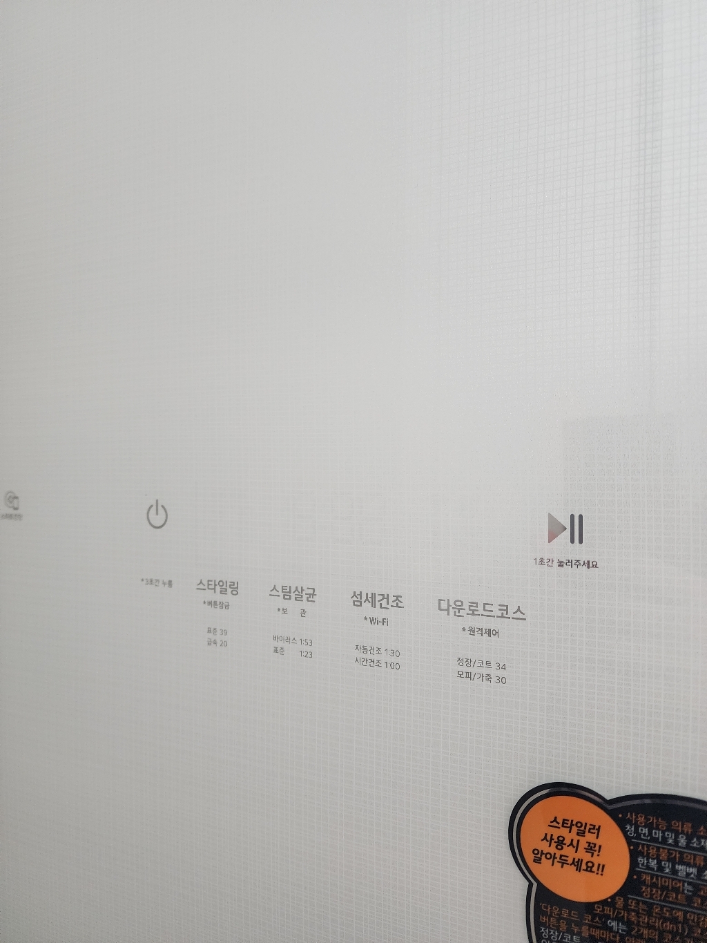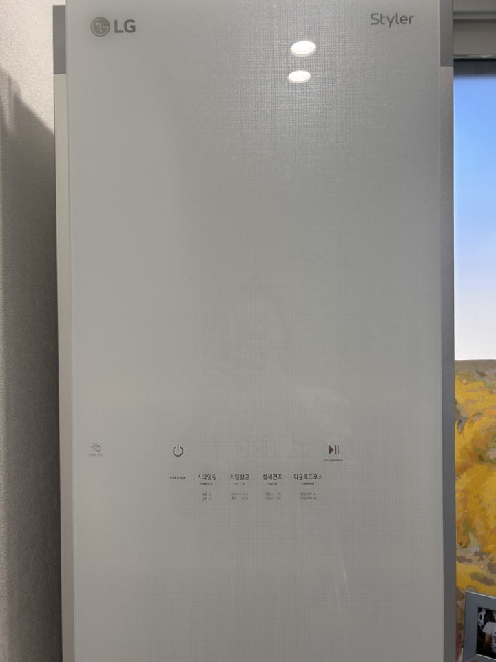 하지만, 예민하지 않다면 스타일러 20분 기능이 약간의 미세먼지제거나 살균이 된다고 하니 짧게 이용할 만 합니다.
