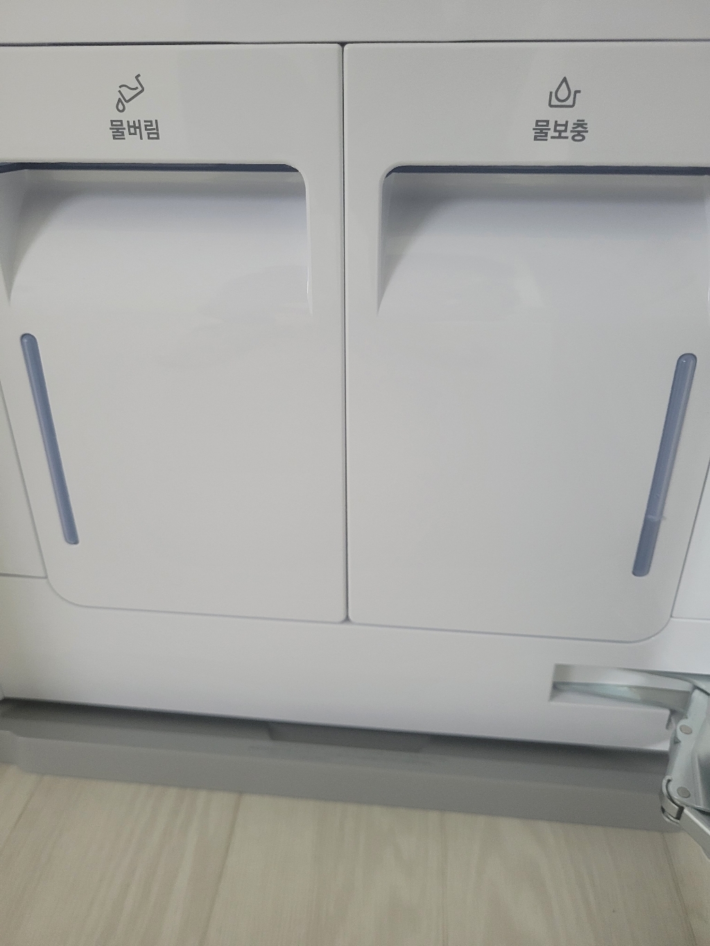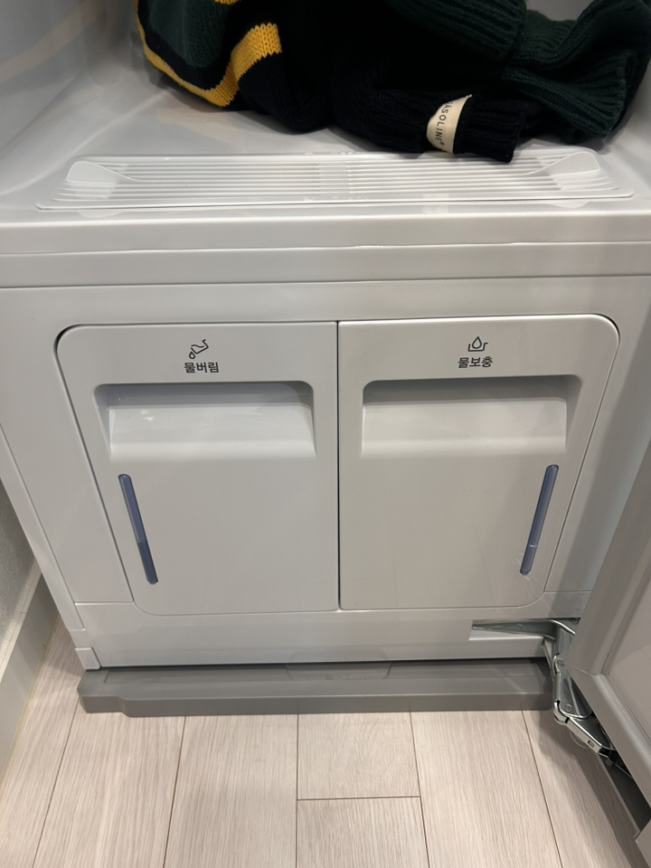 물을 채우고 한 3~4번? 정도 돌리면 물통이 다 차서 버려주면 된답니다. 지금은 스타일러 양복 코너만 꾸준히 사용하고 있어요.