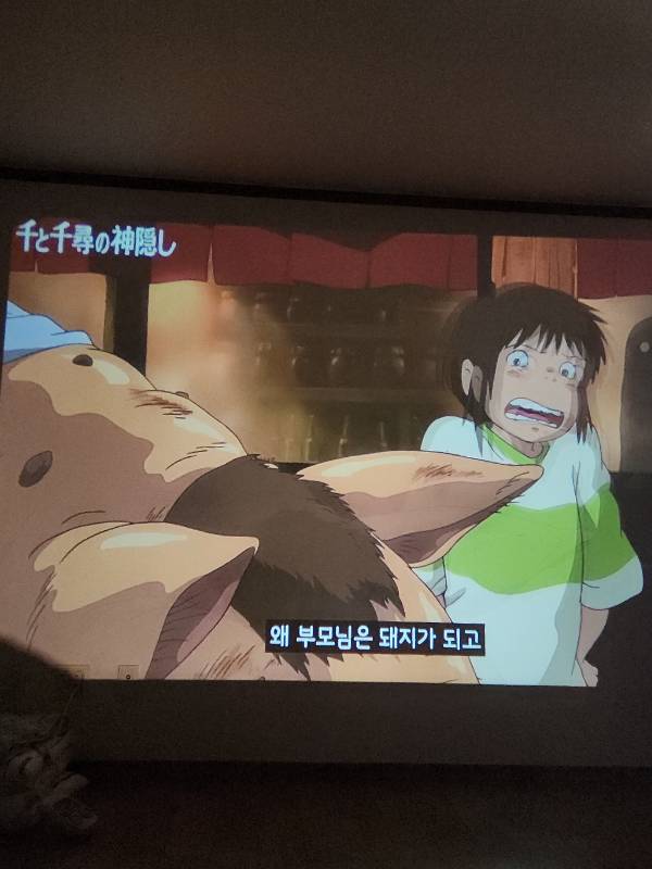 영화이런거는 천 사시는걸 추천 드려욧~~~저는 벽에 쏘는거라 화질이 그렇게 좋지는 않네요^-^