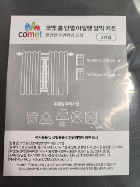 코멧 홈 단열 아일렛 암막 커튼 2개입 – 창문커튼 후기