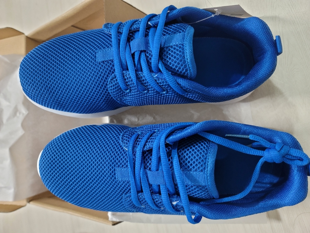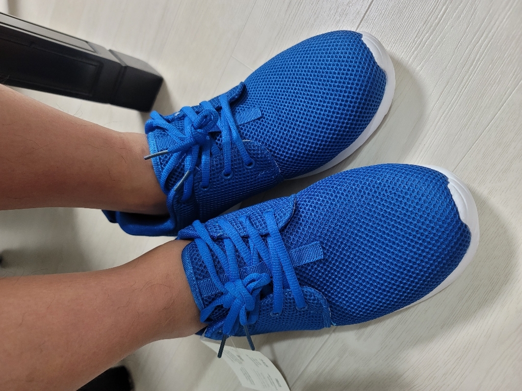 집에서 신으니까 파랑이 색이 예뻐보여서 주문했는데, 생각보다 받아보니 더 색이 예쁘게 나왔습니다. 운동할 용도로 신으니, 가성비 이만한게 없습니다.