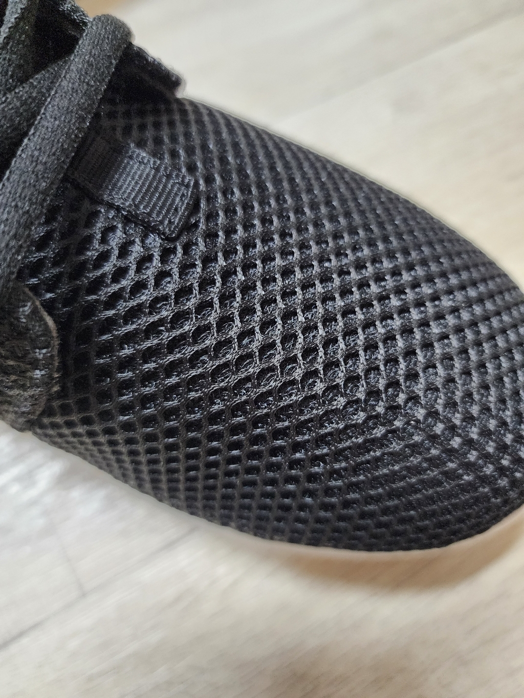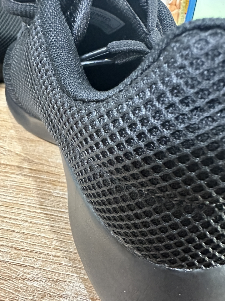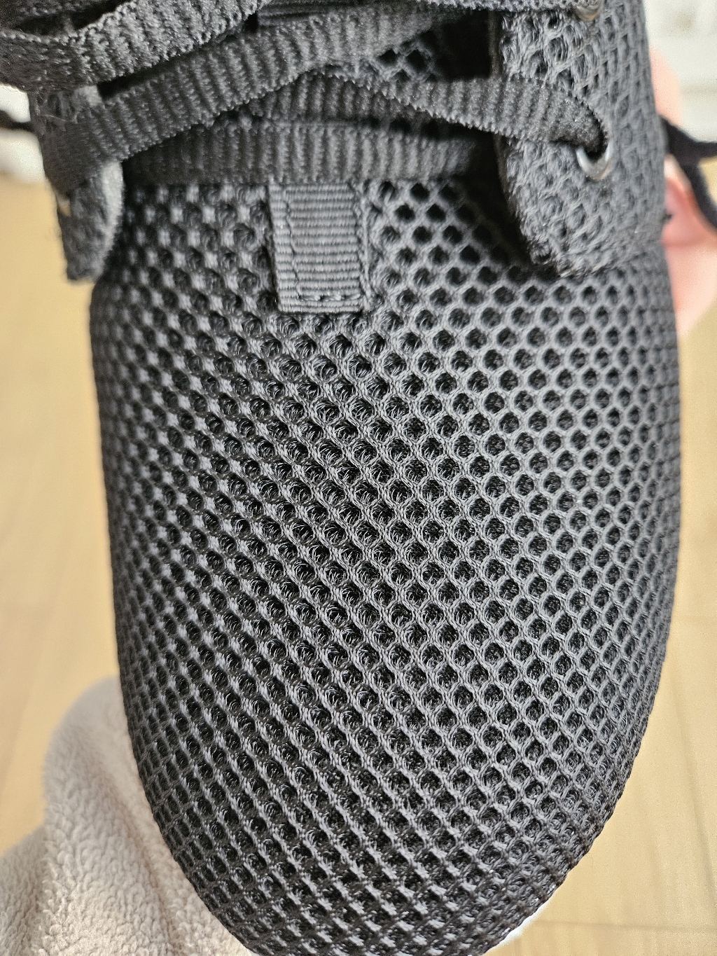 매쉬 소재 특유의 촘촘하면서도 통기성이 좋은 패턴이 발을 답답하지 않게 감싸주고 여름에도 시원하게 착용할 수 있을 것 같은 느낌이었습니다.