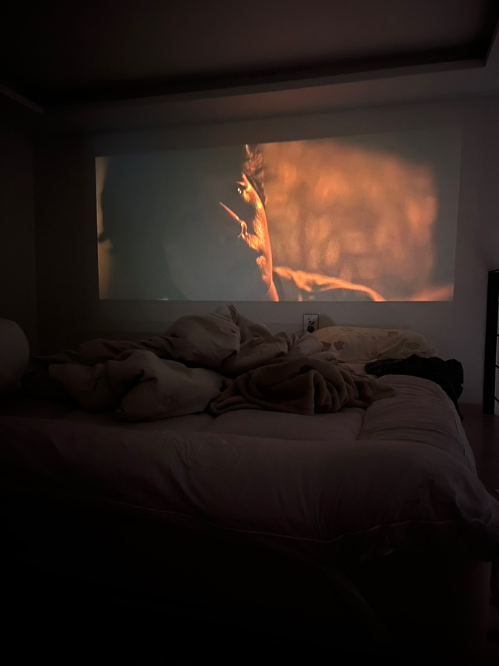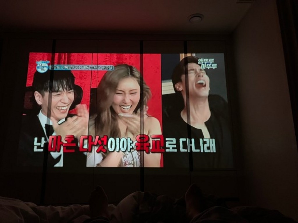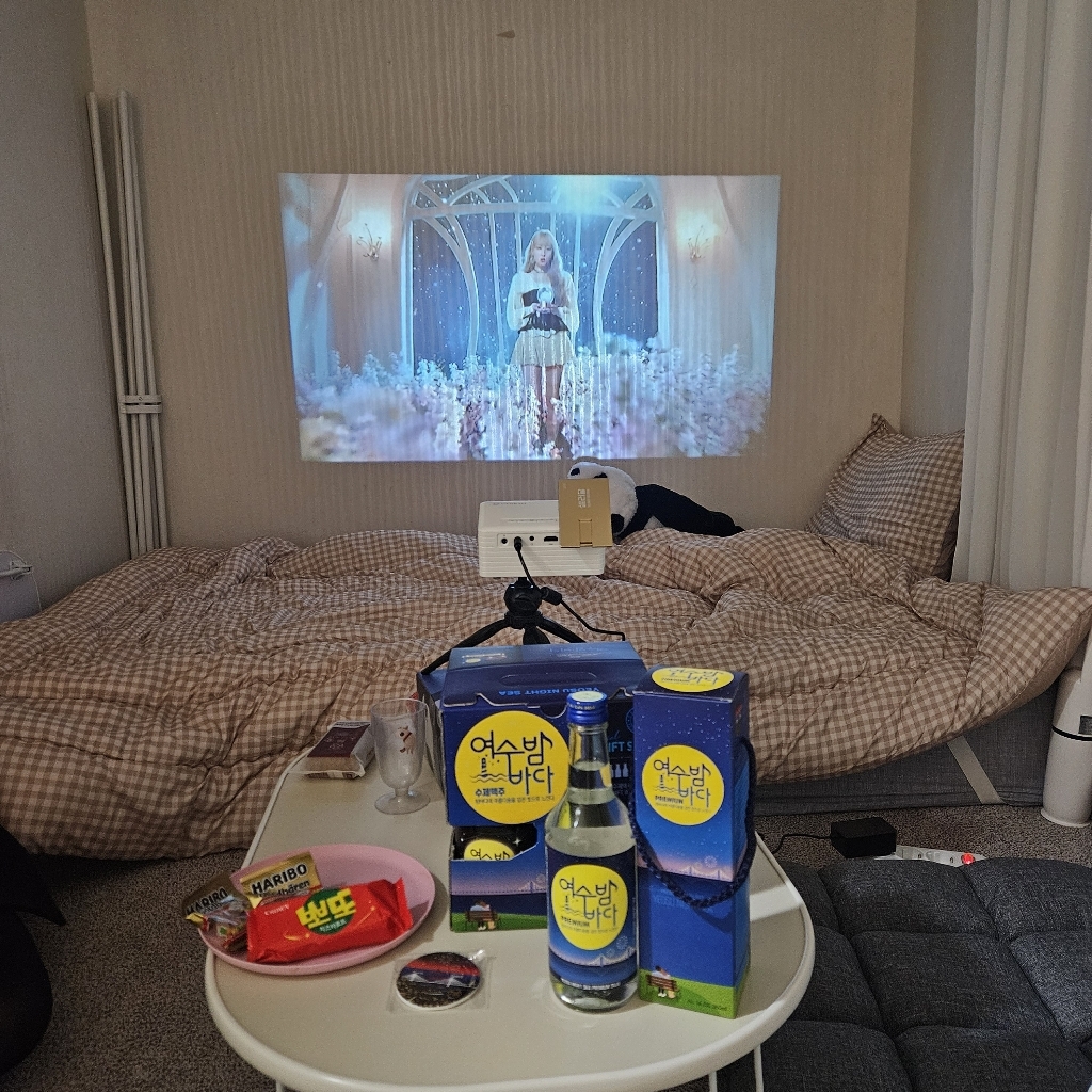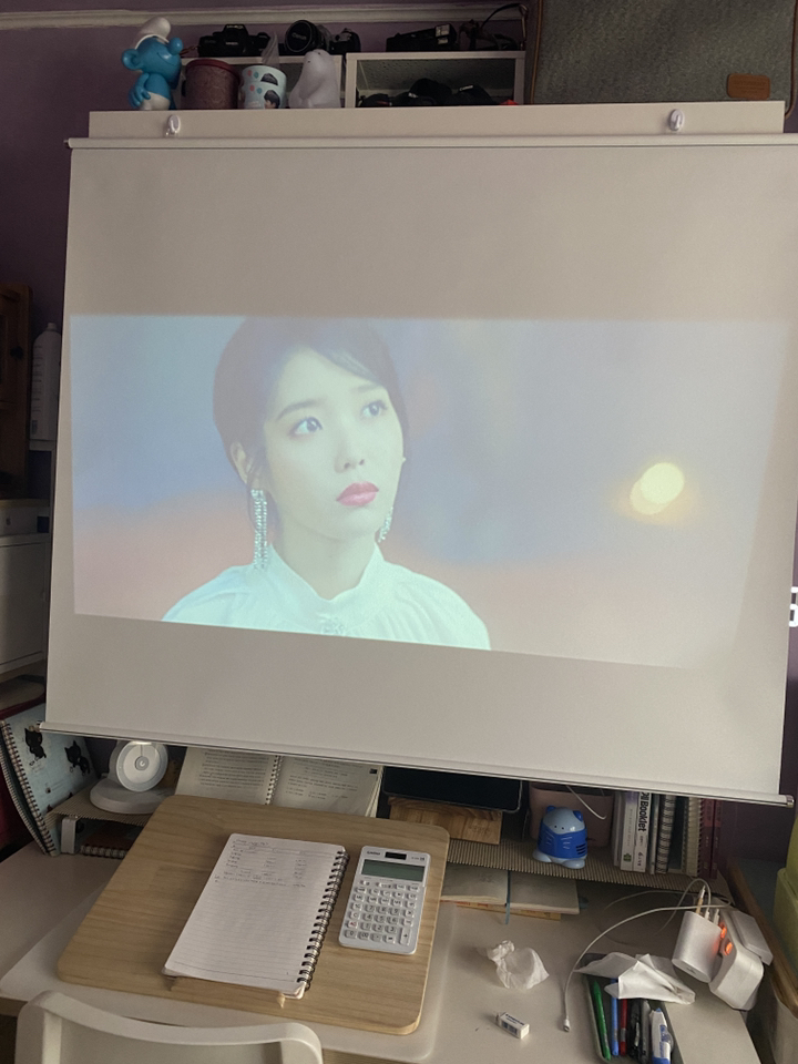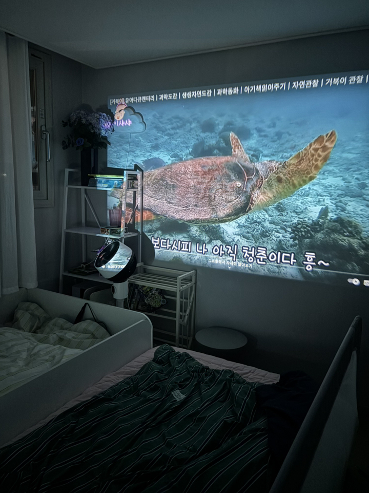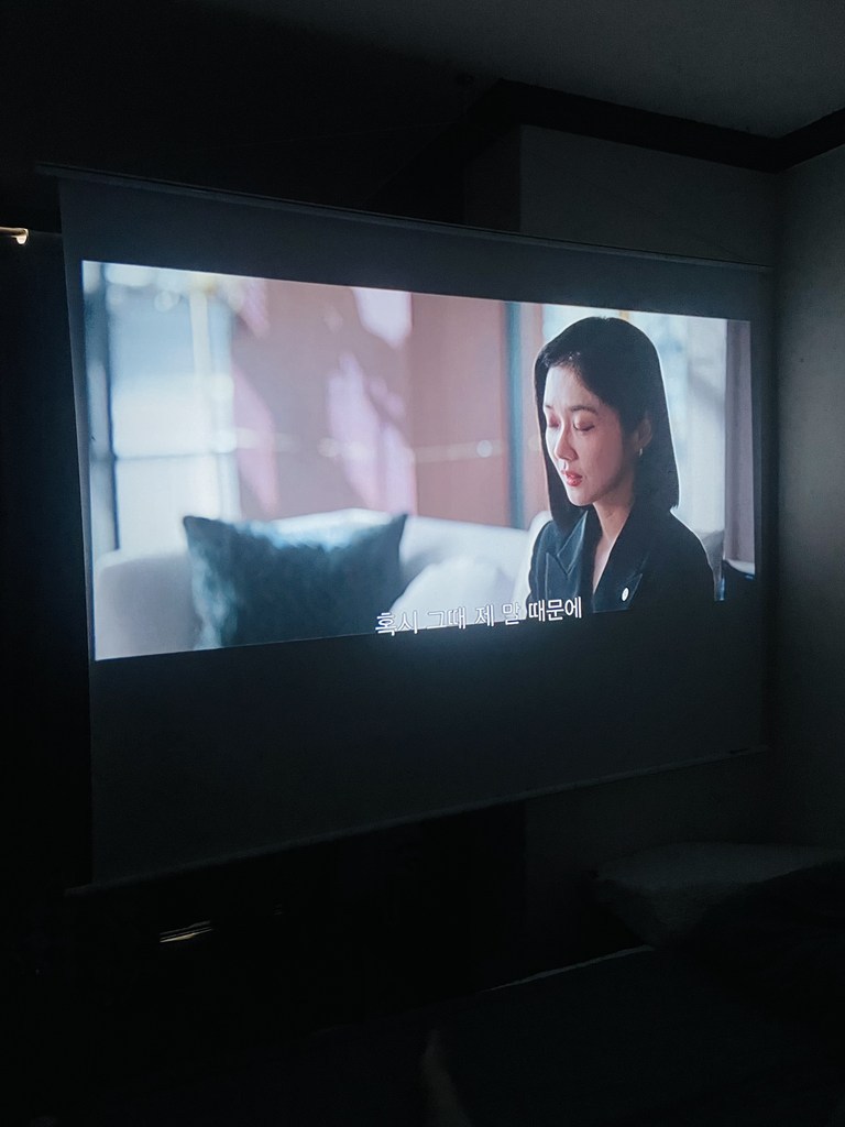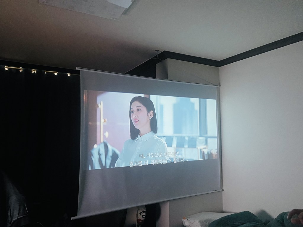 방에 빔프로젝터 놓고 영화나 드라마 보는 거 소원이었거든요