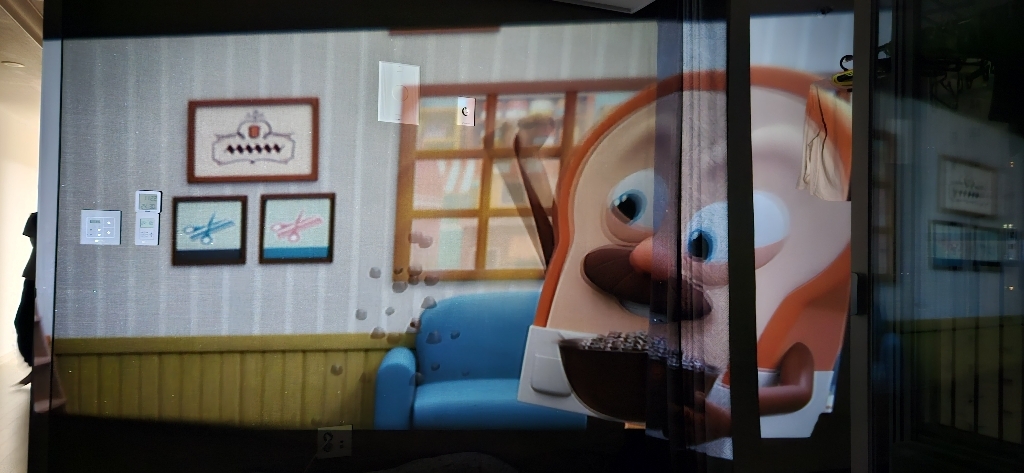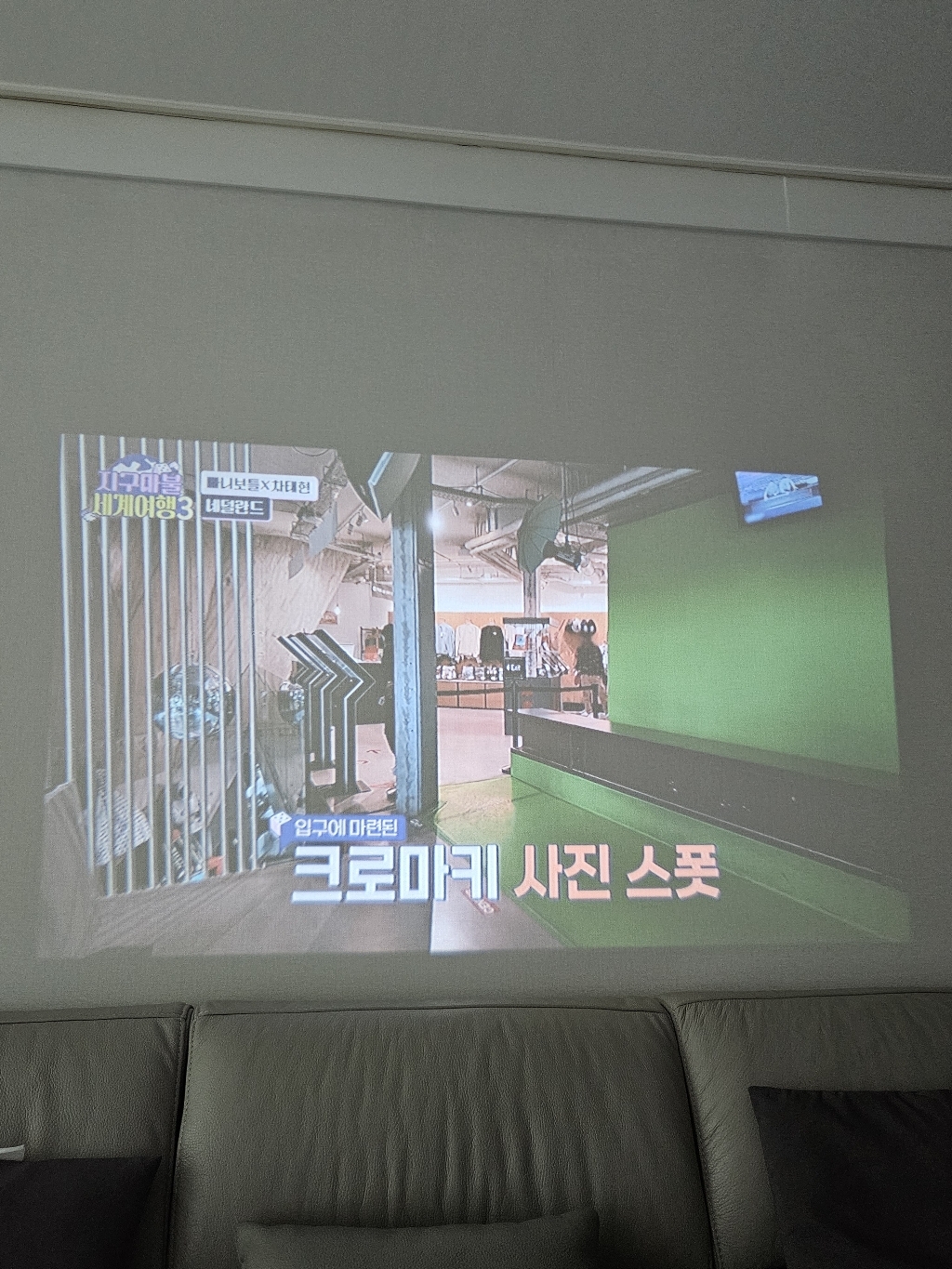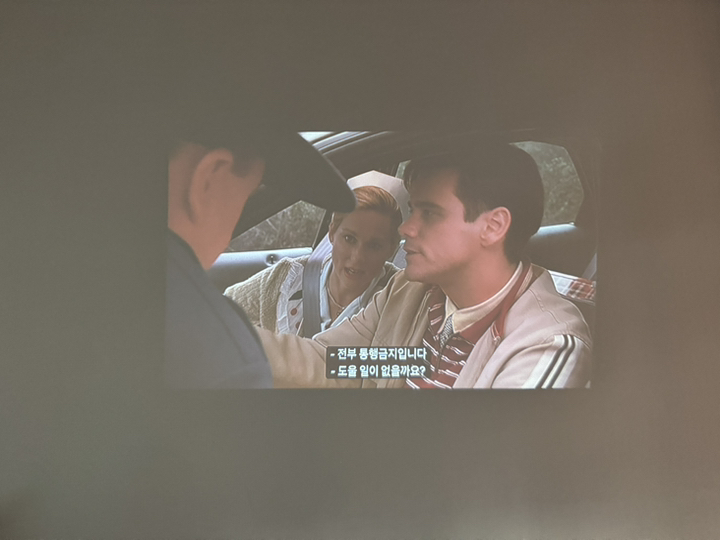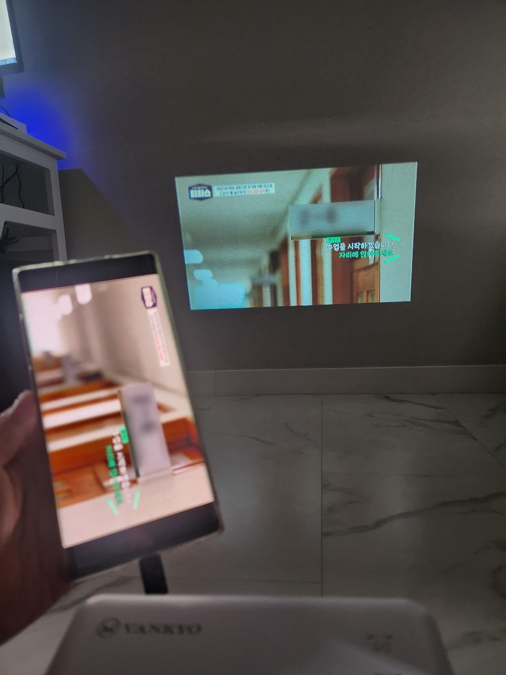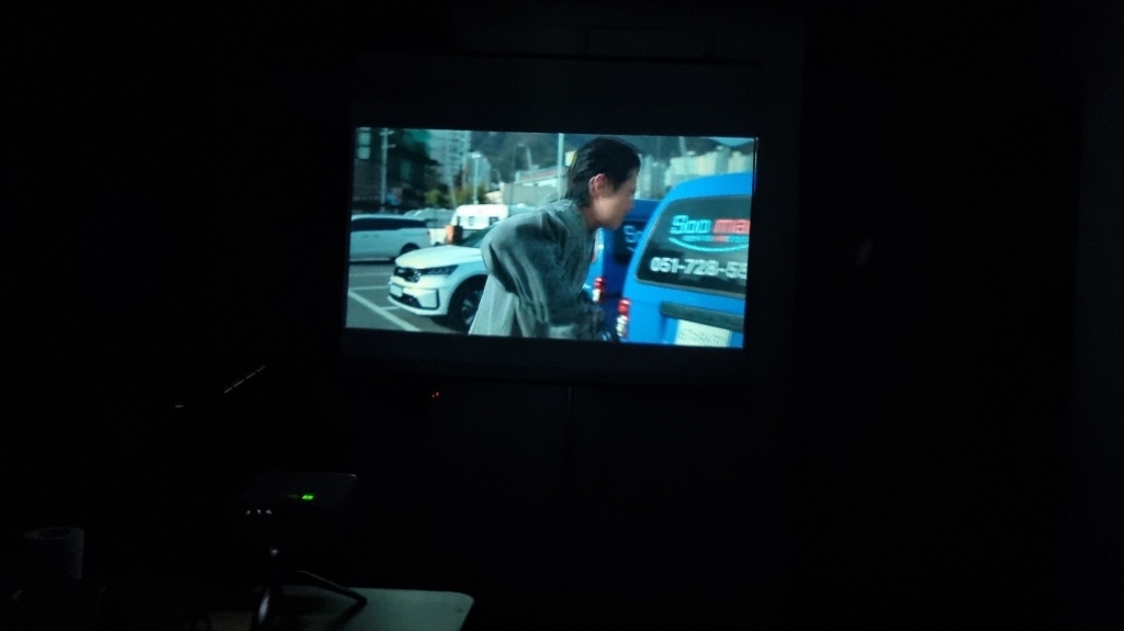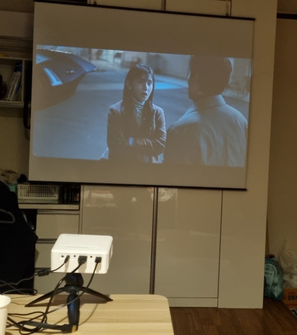 그래도 흰벽에 쏘는 것이 가장 깔꼼스 하게 보는 방법인 것 같습니다.