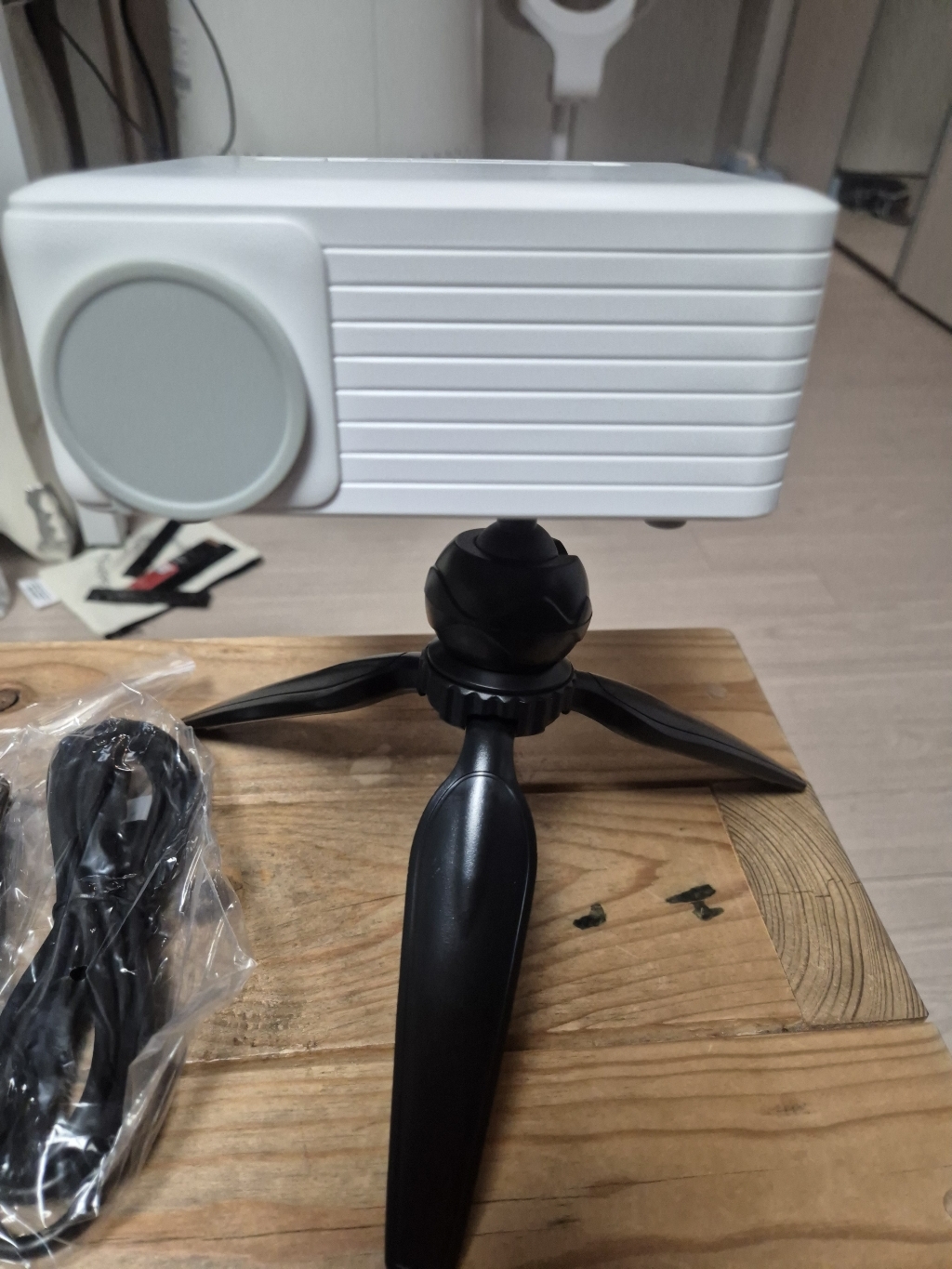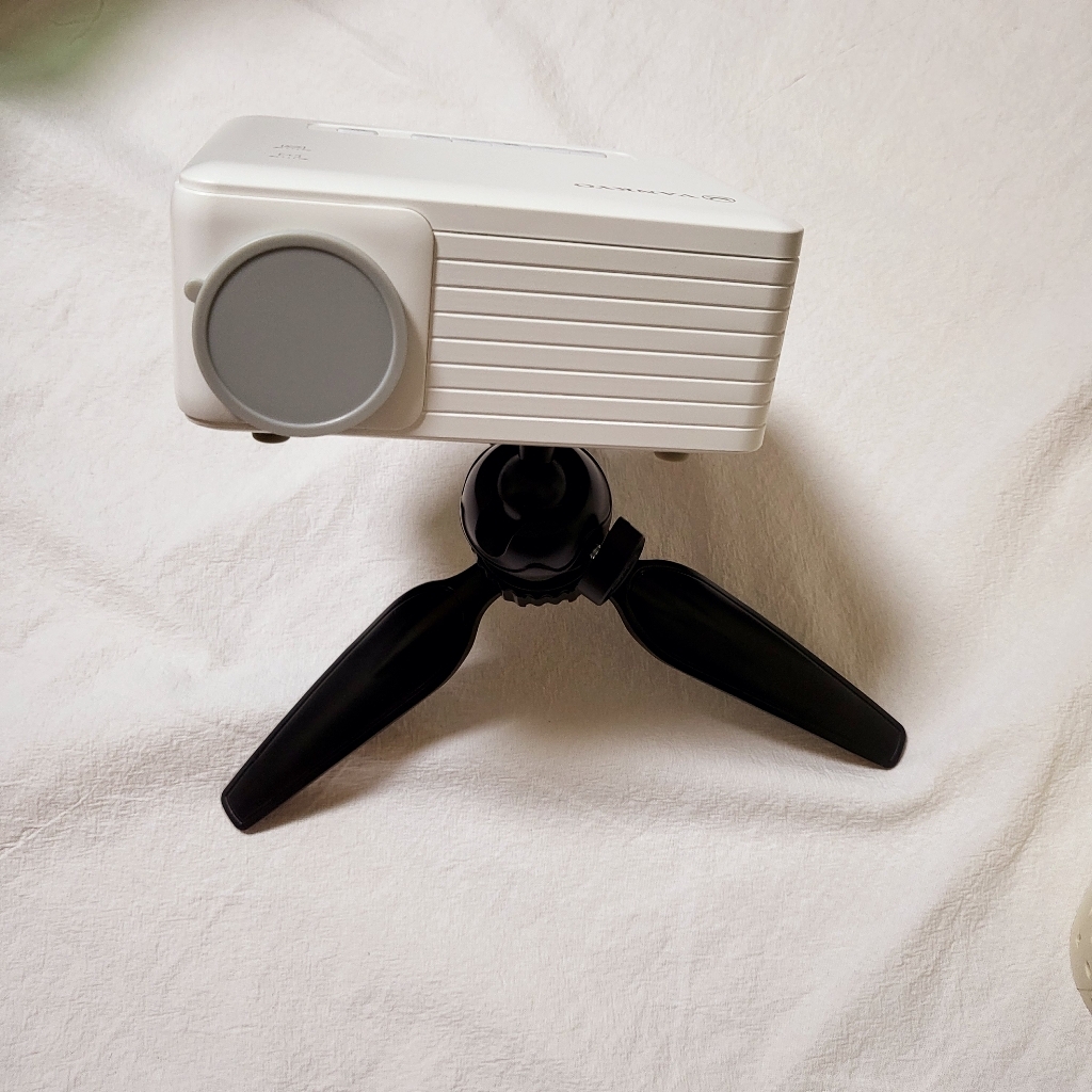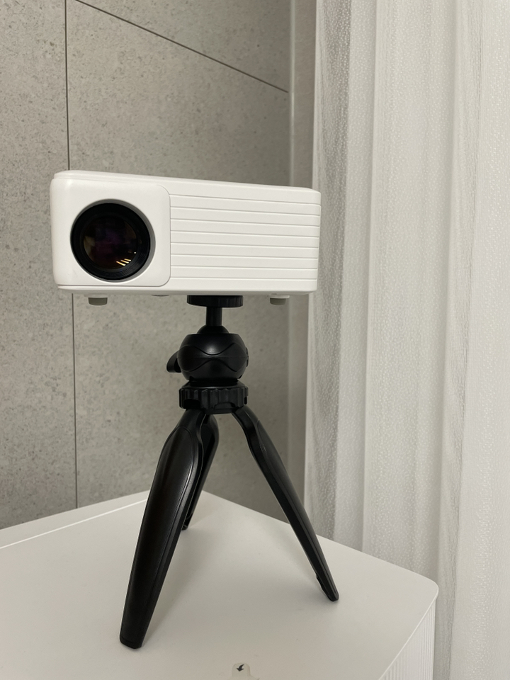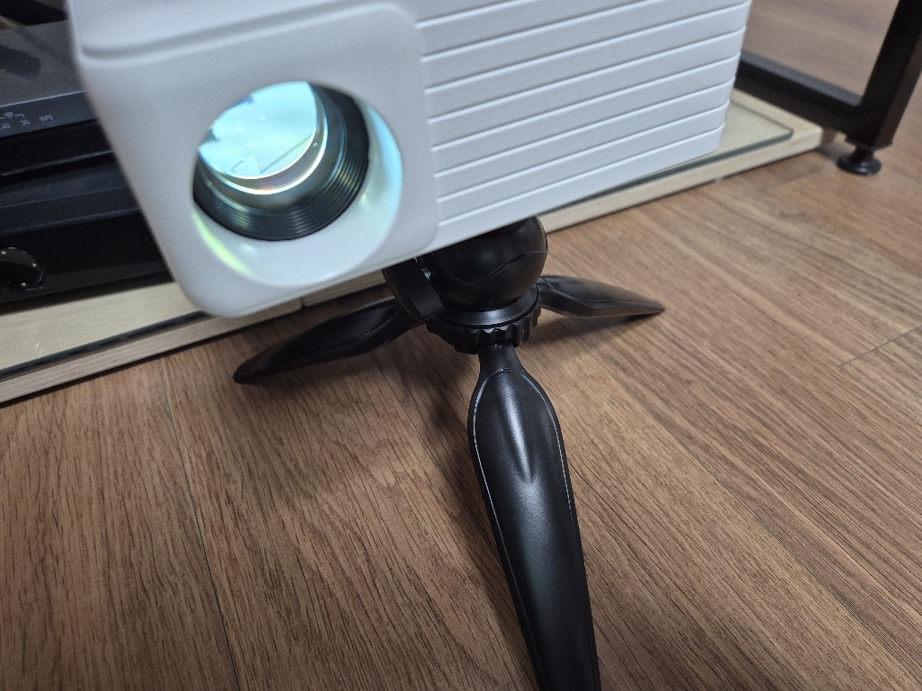 보통 미니빔은 거치대가 따로 없어서 세팅할 때 불편한 경우가 많은데, 이 제품은 삼각대까지 같이 제공돼서 어디서든 안정적으로 설치할 수 있었습니다.