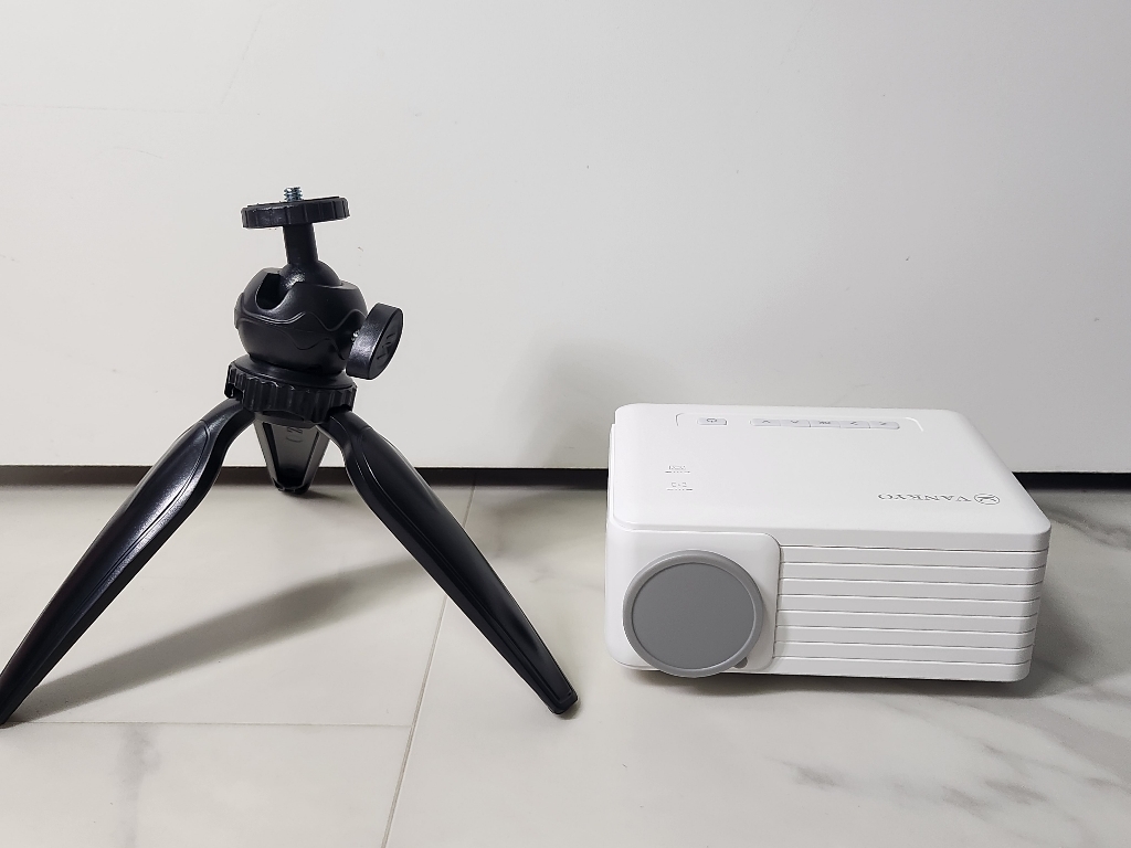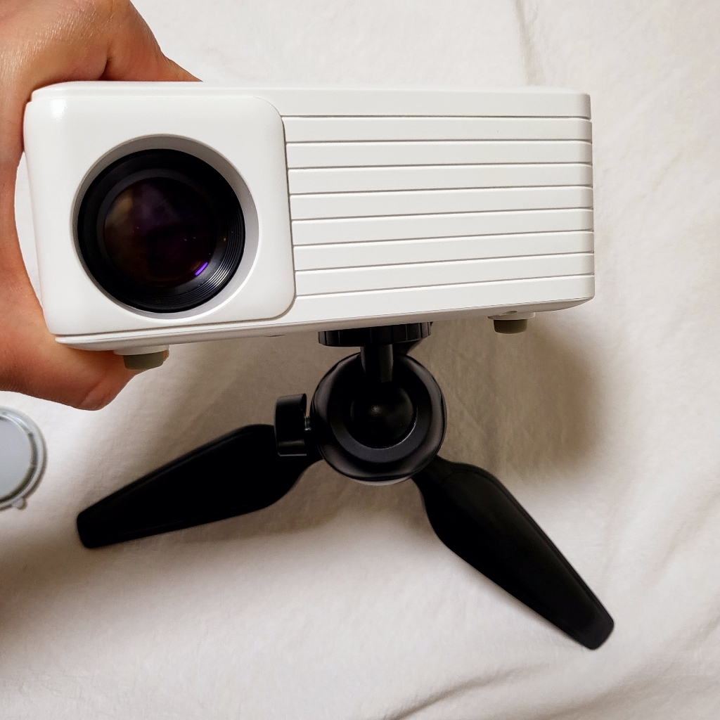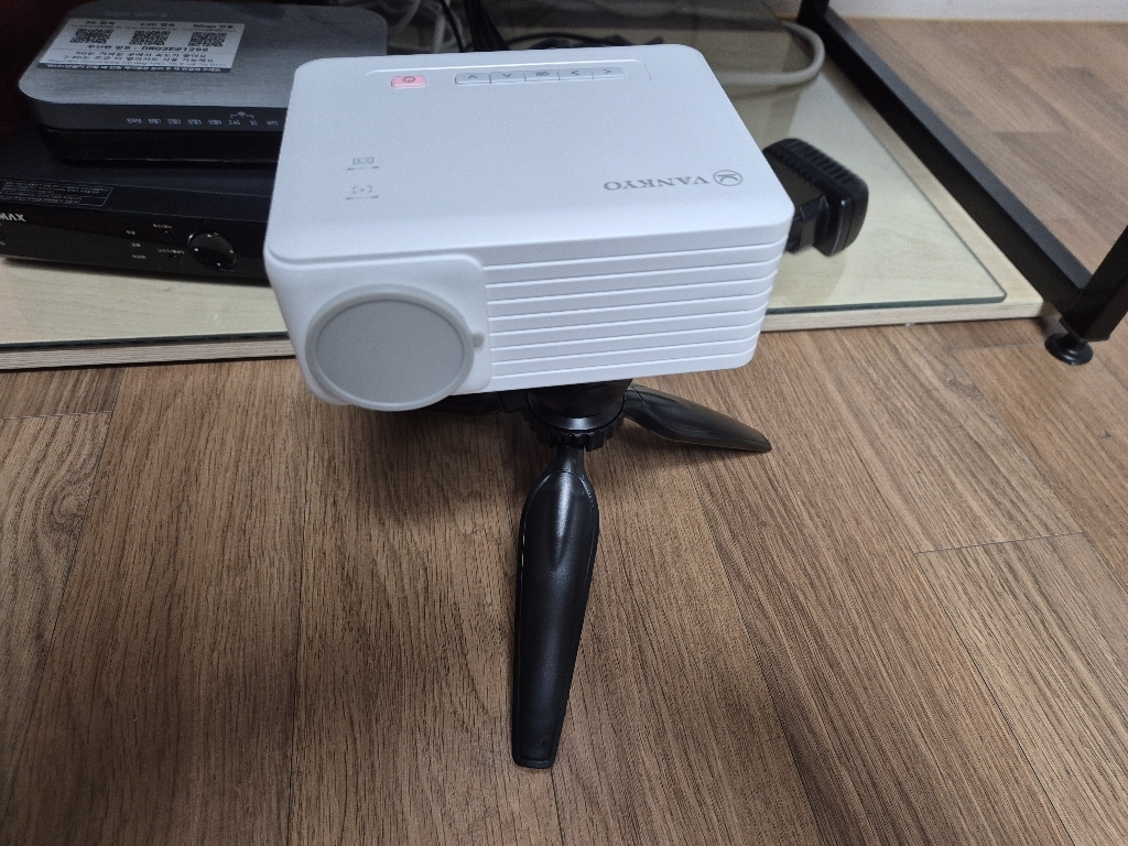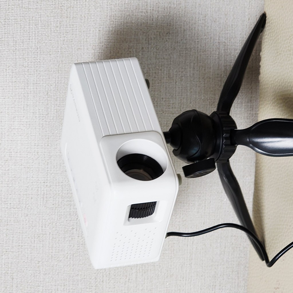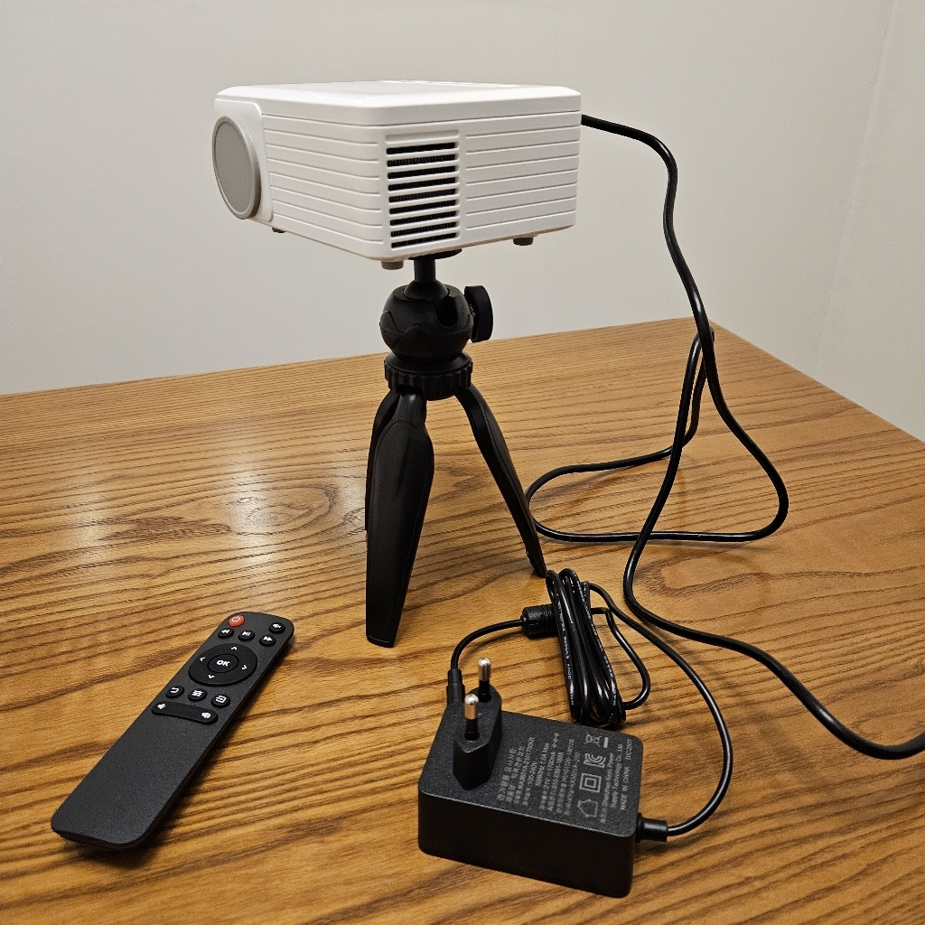 보통 미니빔은 거치대가 따로 없어서 세팅할 때 불편한 경우가 많은데, 이 제품은 삼각대까지 같이 제공돼서 어디서든 안정적으로 설치할 수 있었습니다.