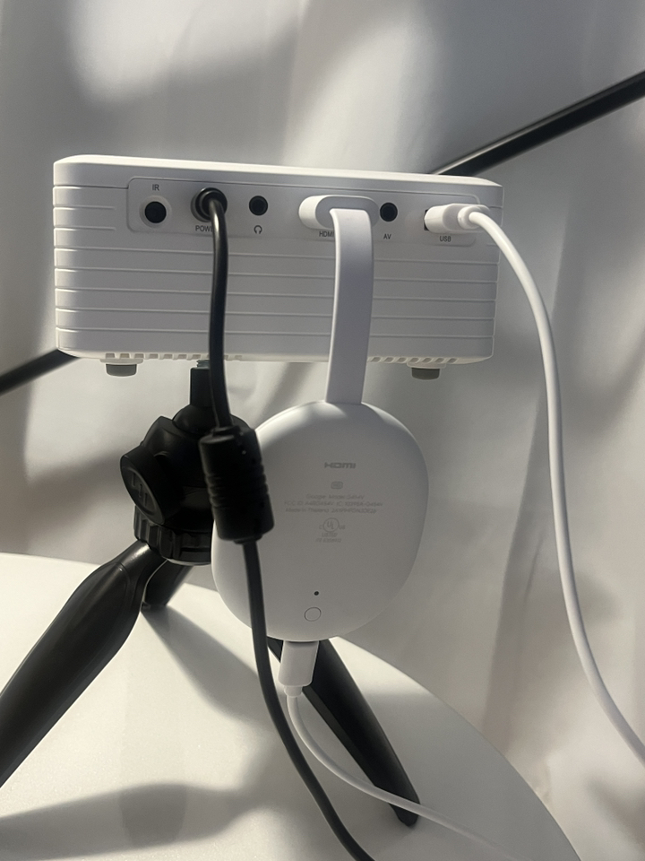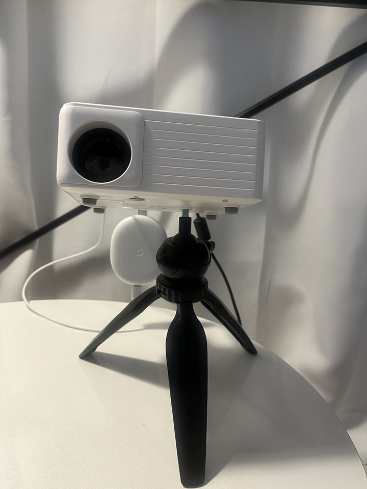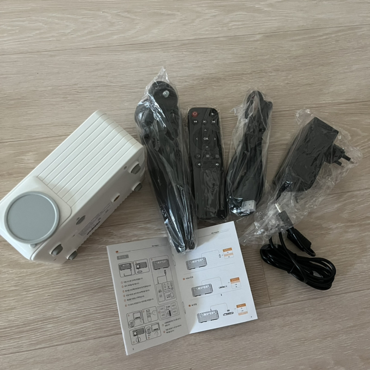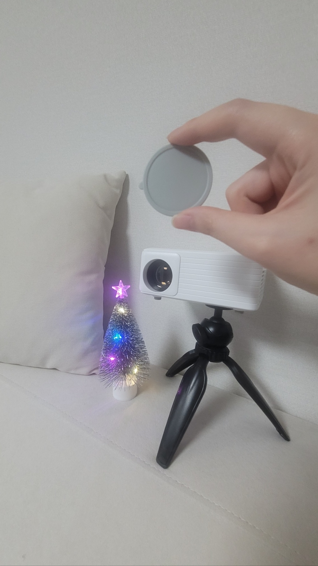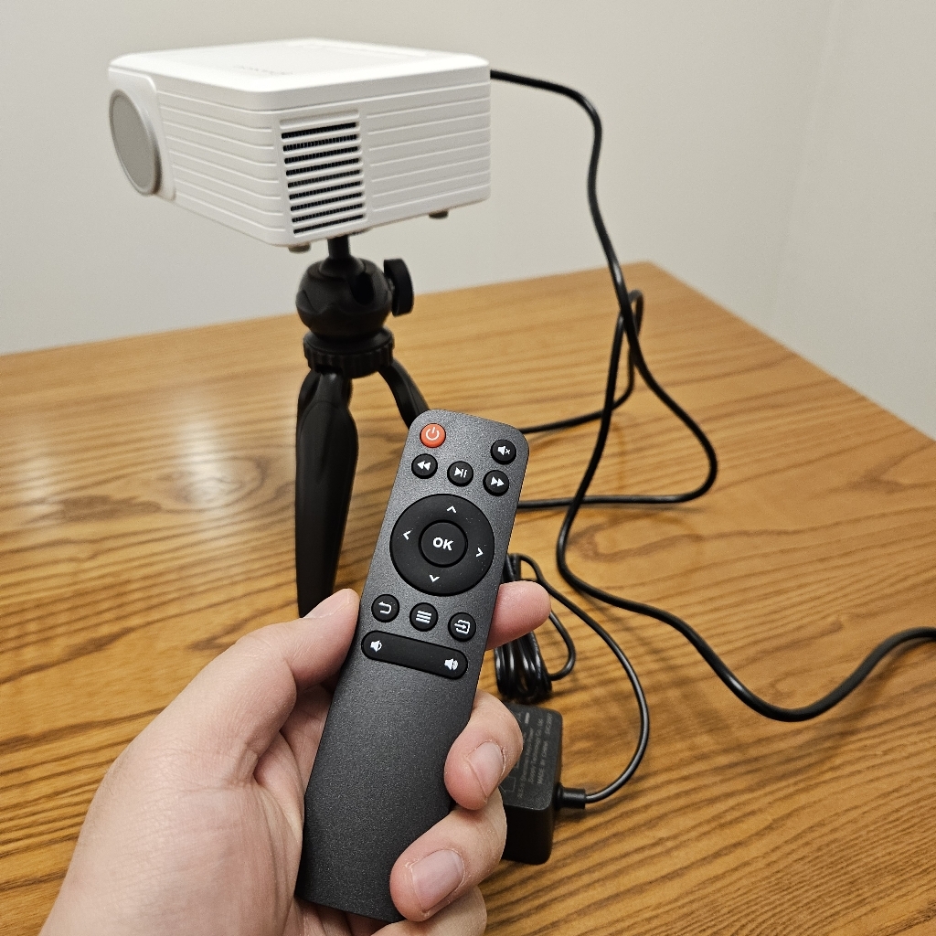 보통 미니빔은 거치대가 따로 없어서 세팅할 때 불편한 경우가 많은데, 이 제품은 삼각대까지 같이 제공돼서 어디서든 안정적으로 설치할 수 있었습니다.