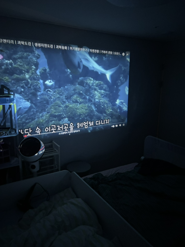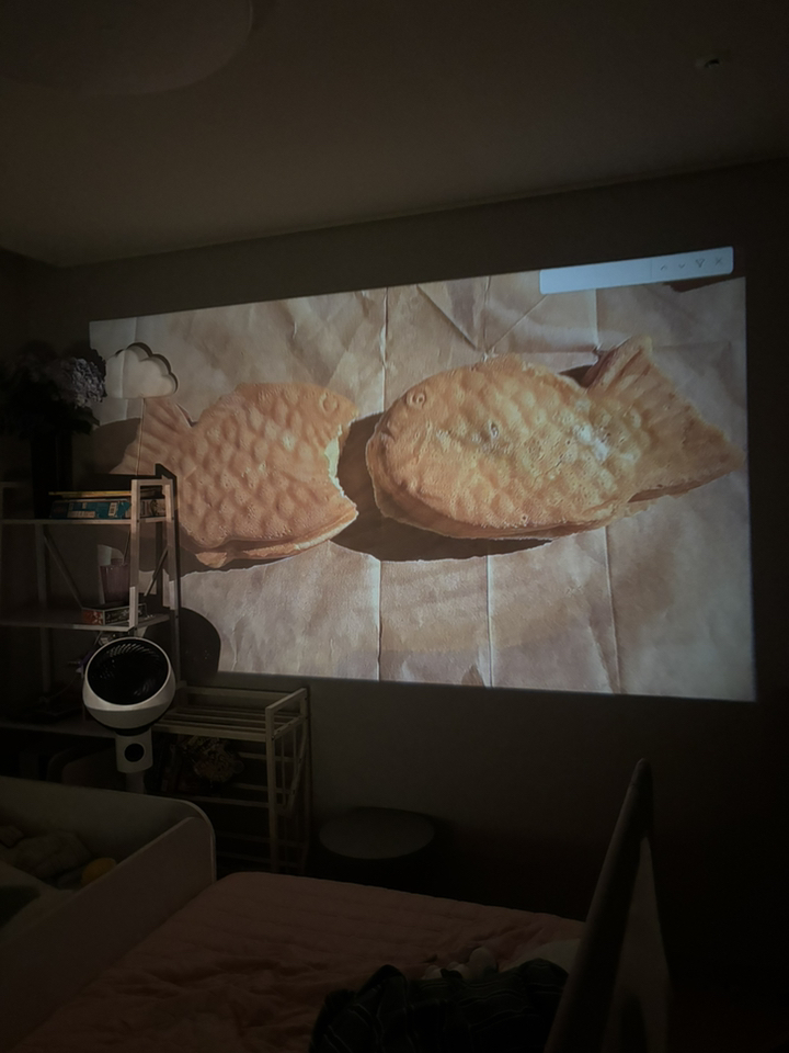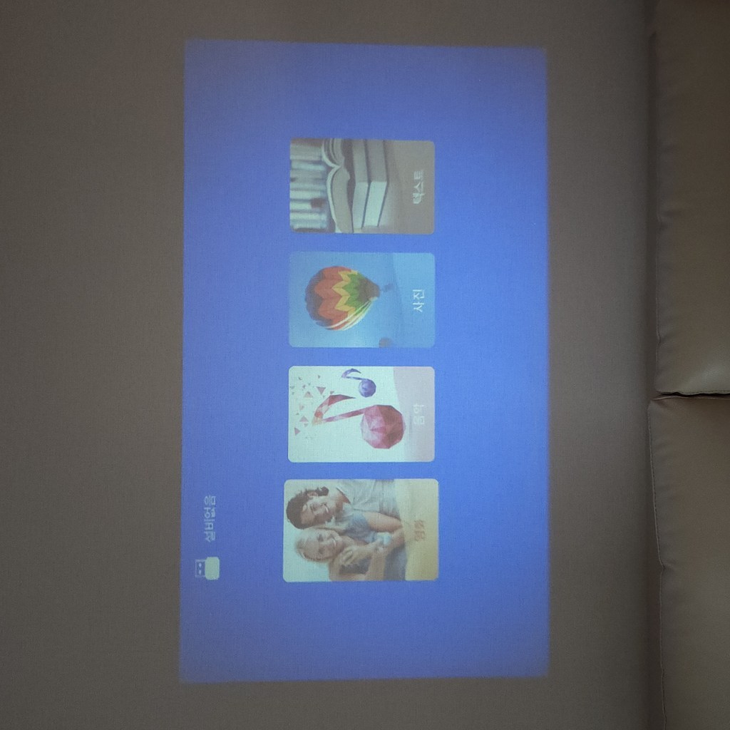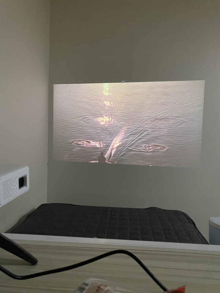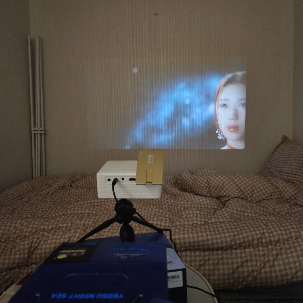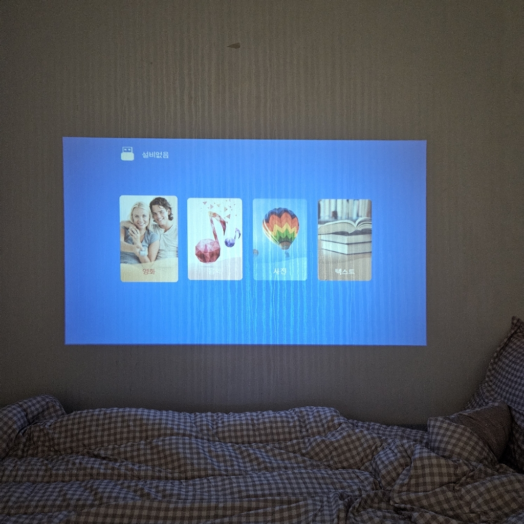화질은 미니빔 특성상 완전히 고사양 프로젝터처럼 선명하진 않지만, 작은 사이즈 대비 꽤 준수한 화면을 보여줍니다.