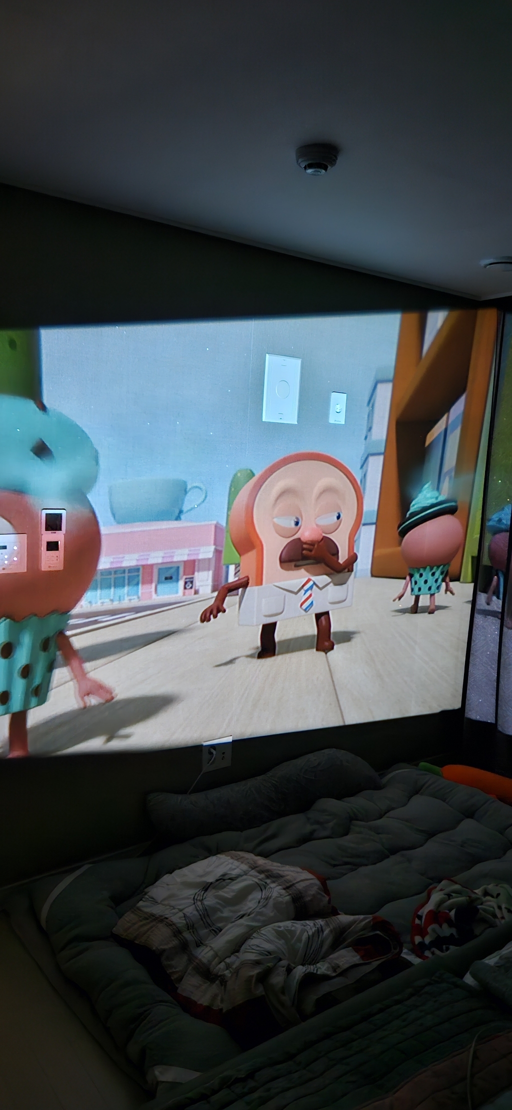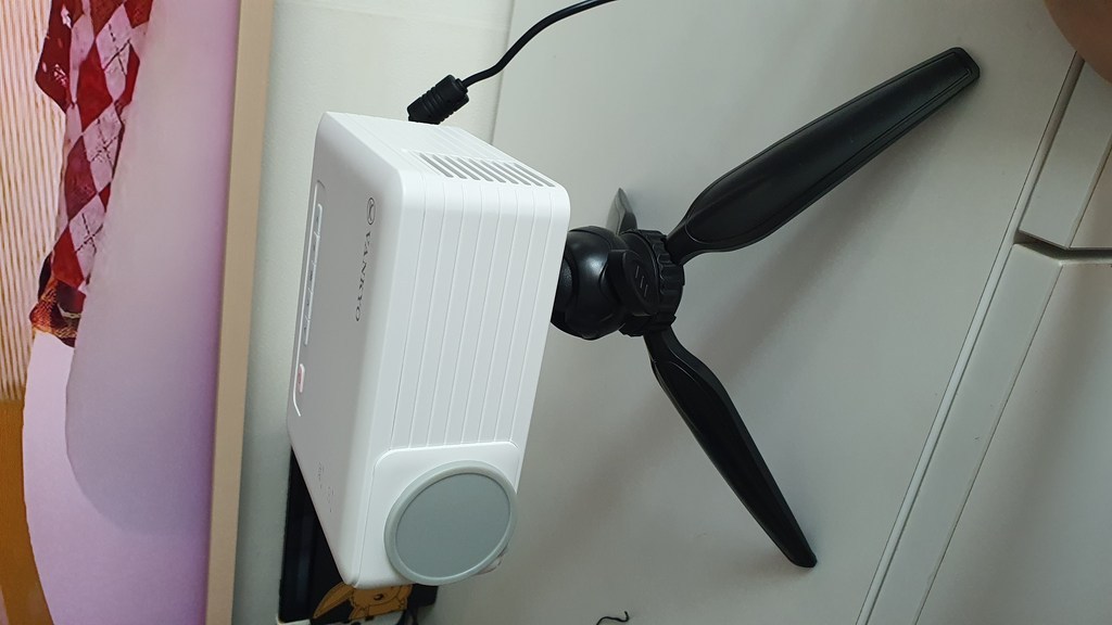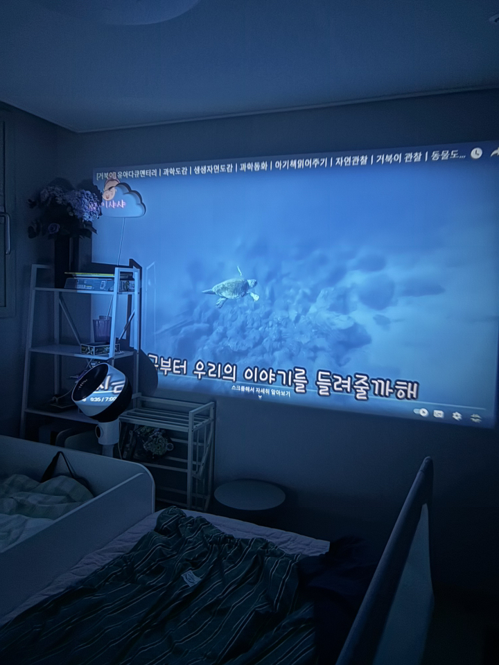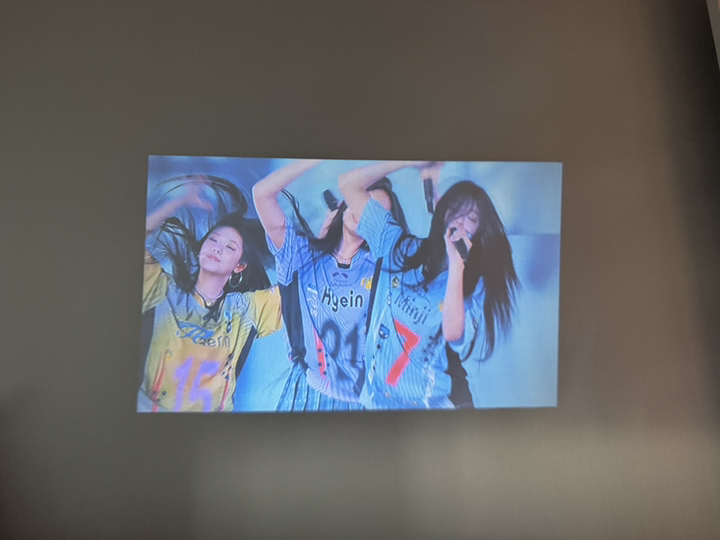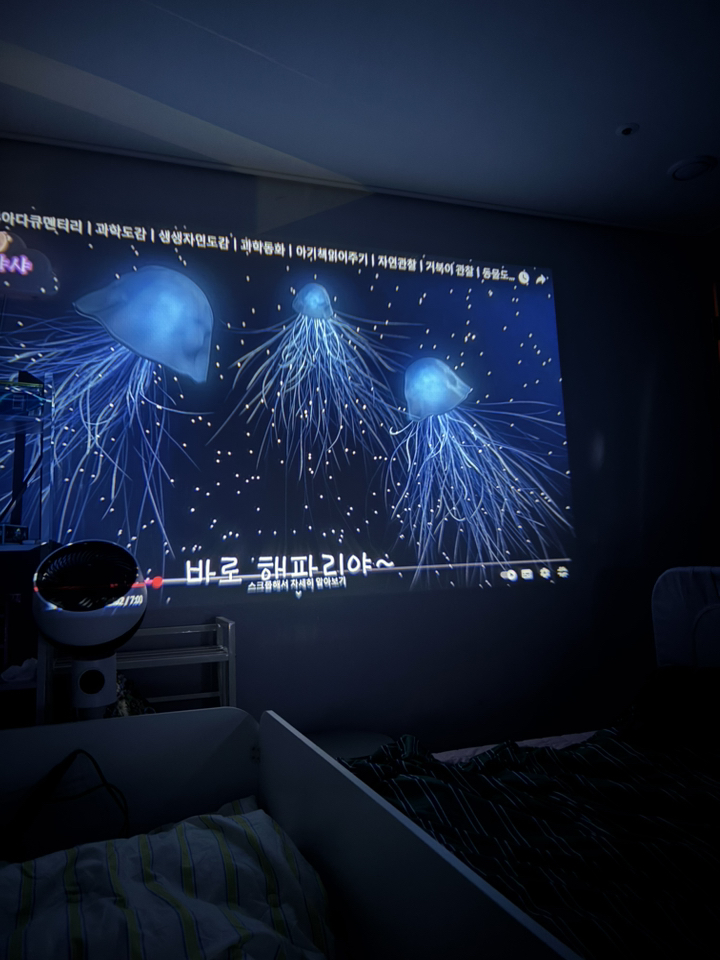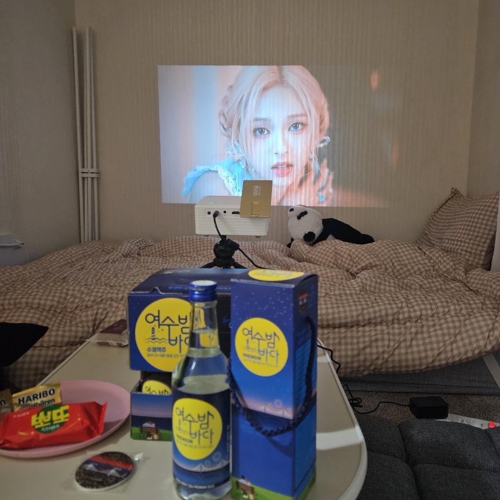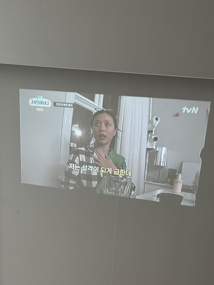 화질은 미니빔 특성상 완전히 고사양 프로젝터처럼 선명하진 않지만, 작은 사이즈 대비 꽤 준수한 화면을 보여줍니다.