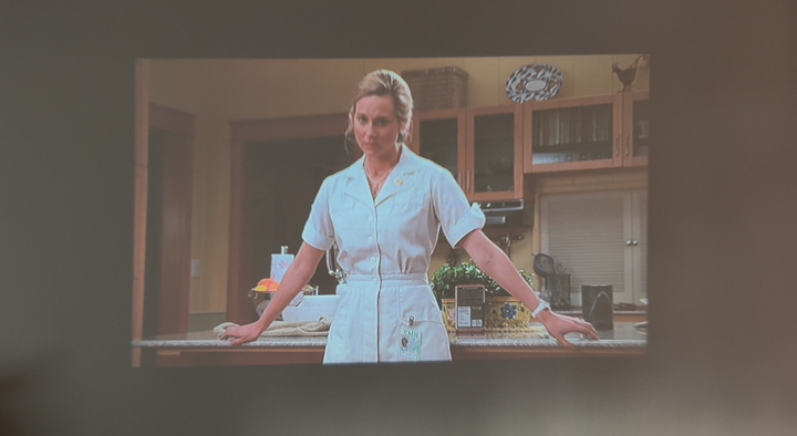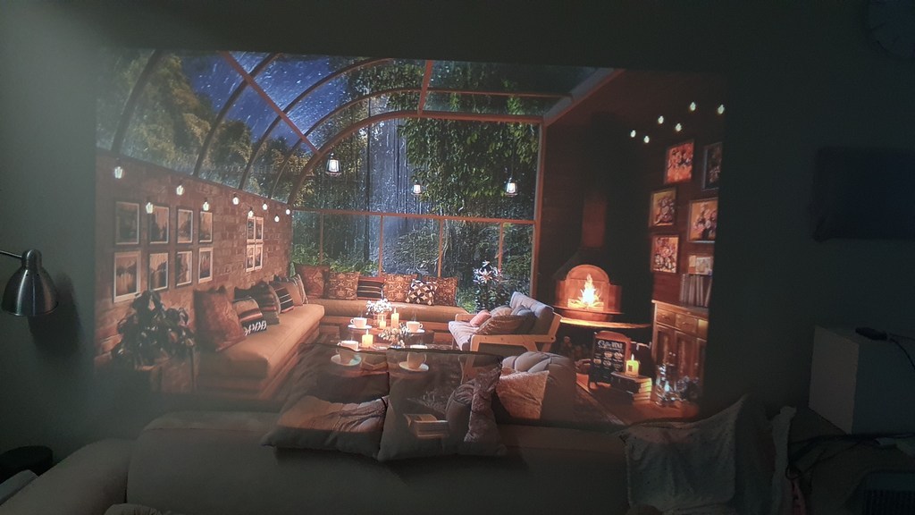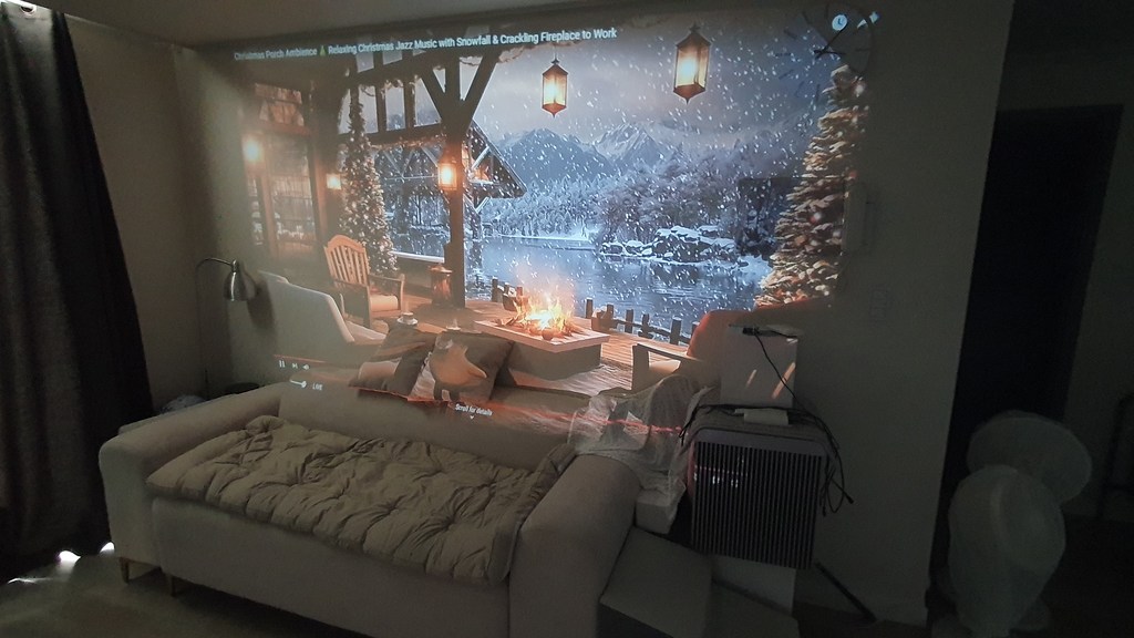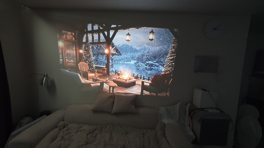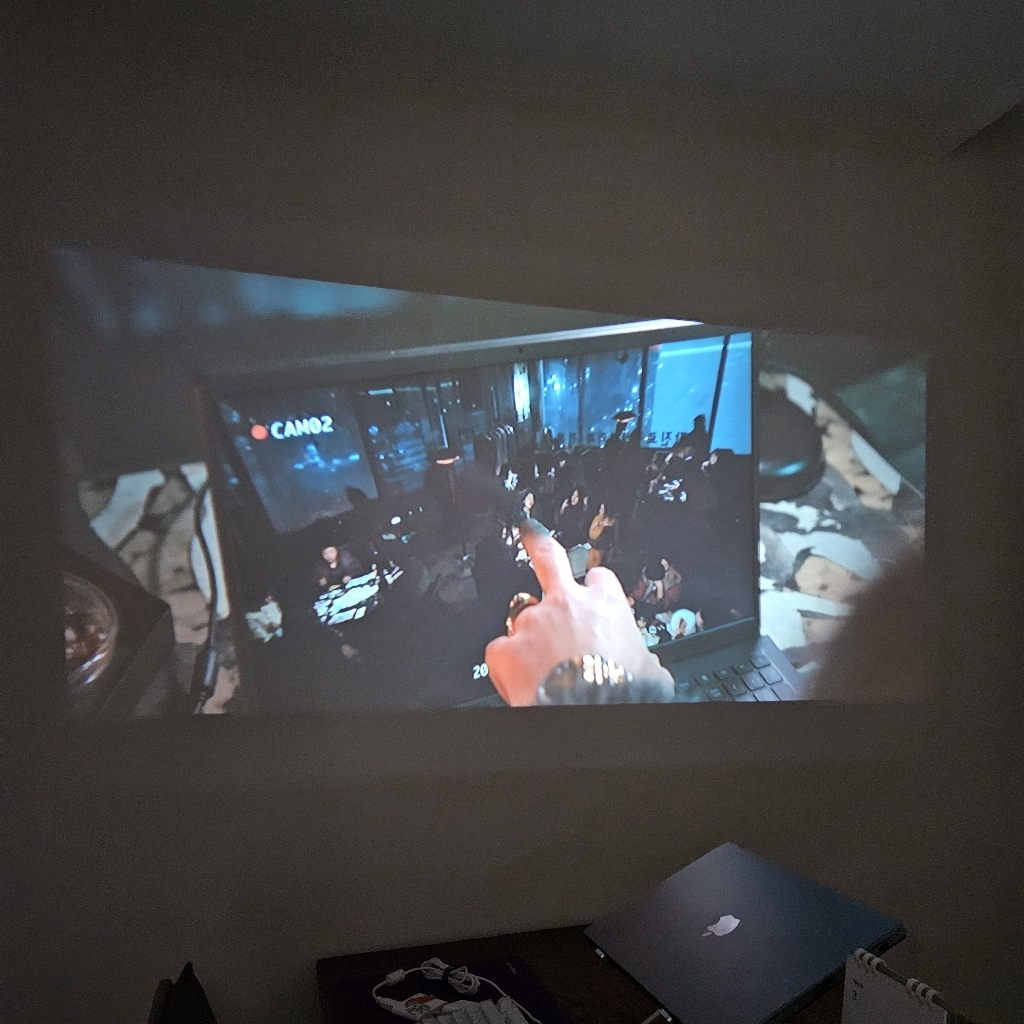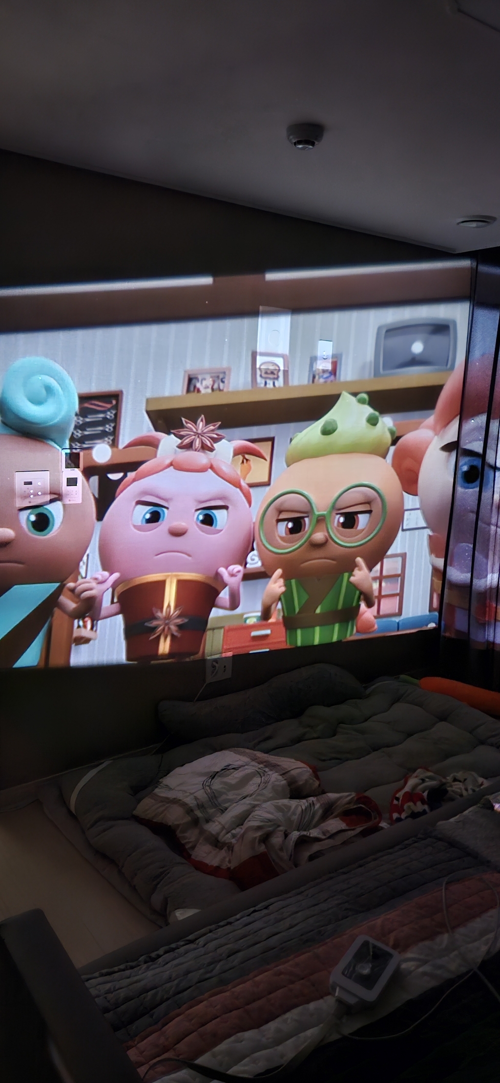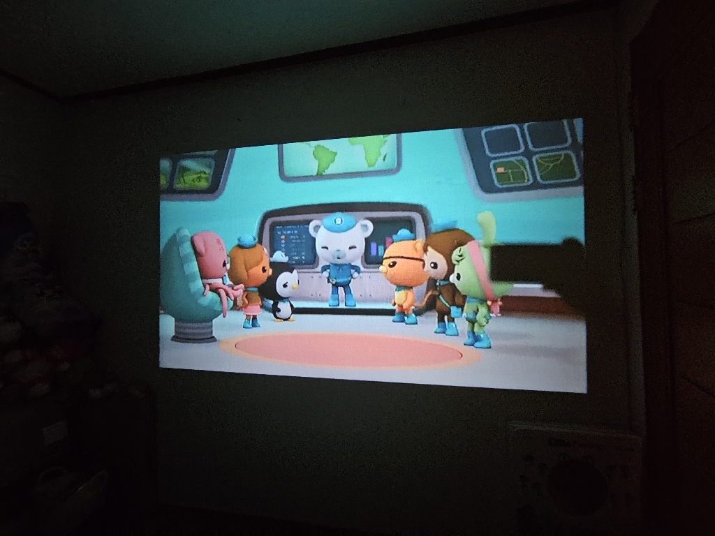 화질은 미니빔 특성상 완전히 고사양 프로젝터처럼 선명하진 않지만, 작은 사이즈 대비 꽤 준수한 화면을 보여줍니다.