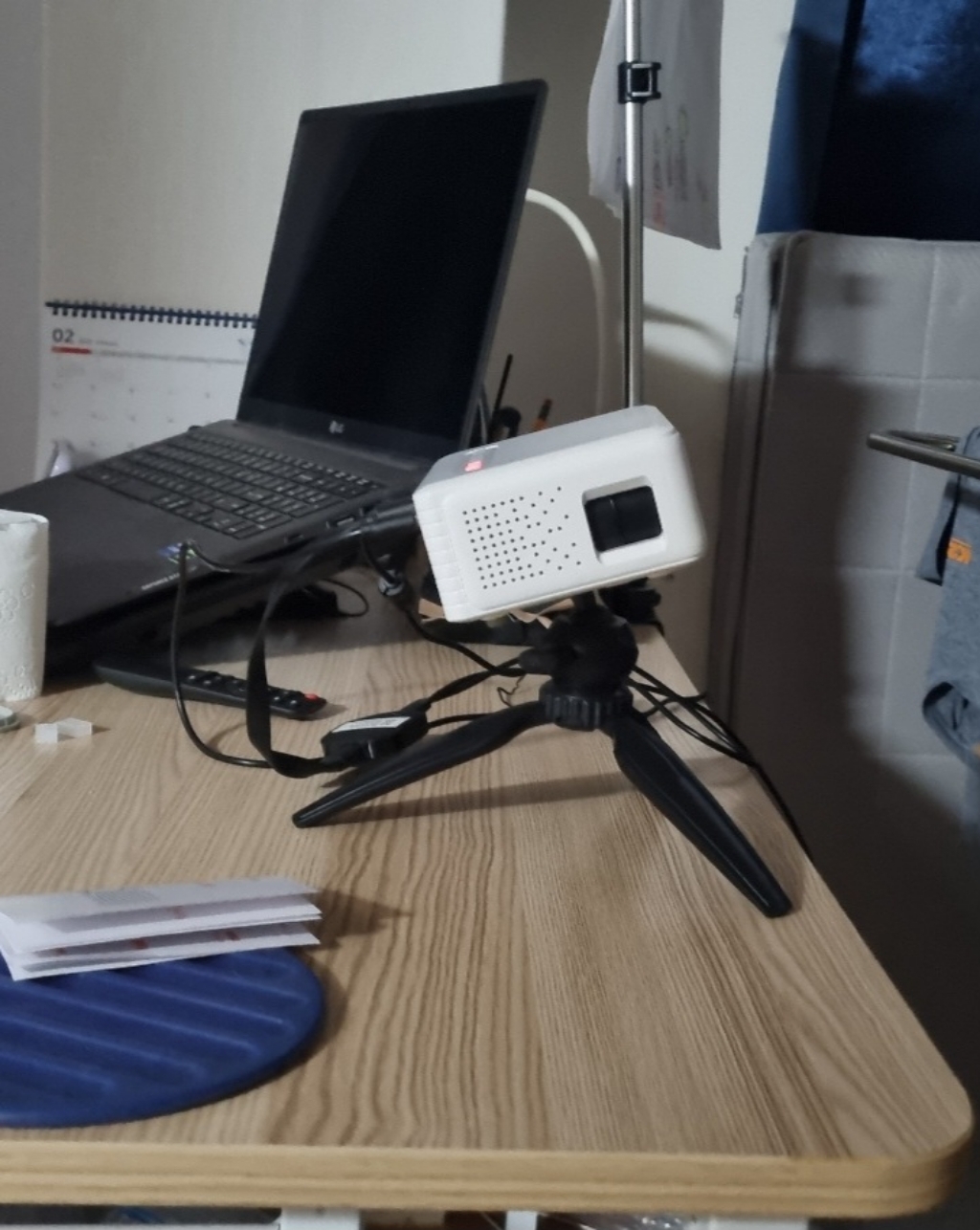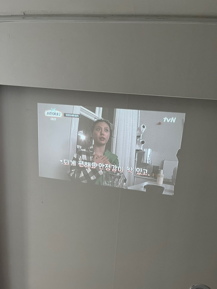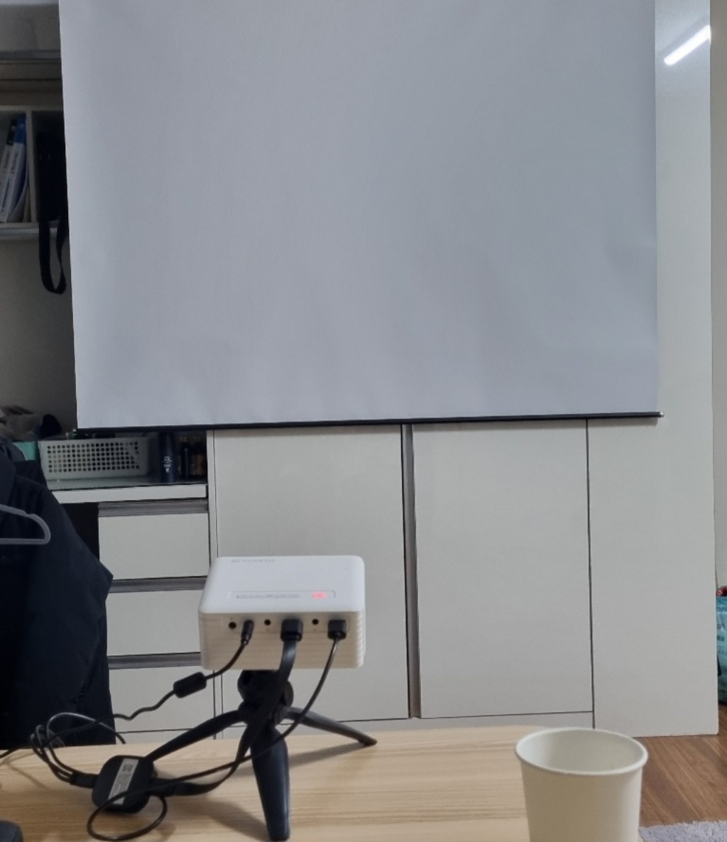 저희집이 좁은 편이라서 tv를 설치하기 애매하고 빔프로젝트도