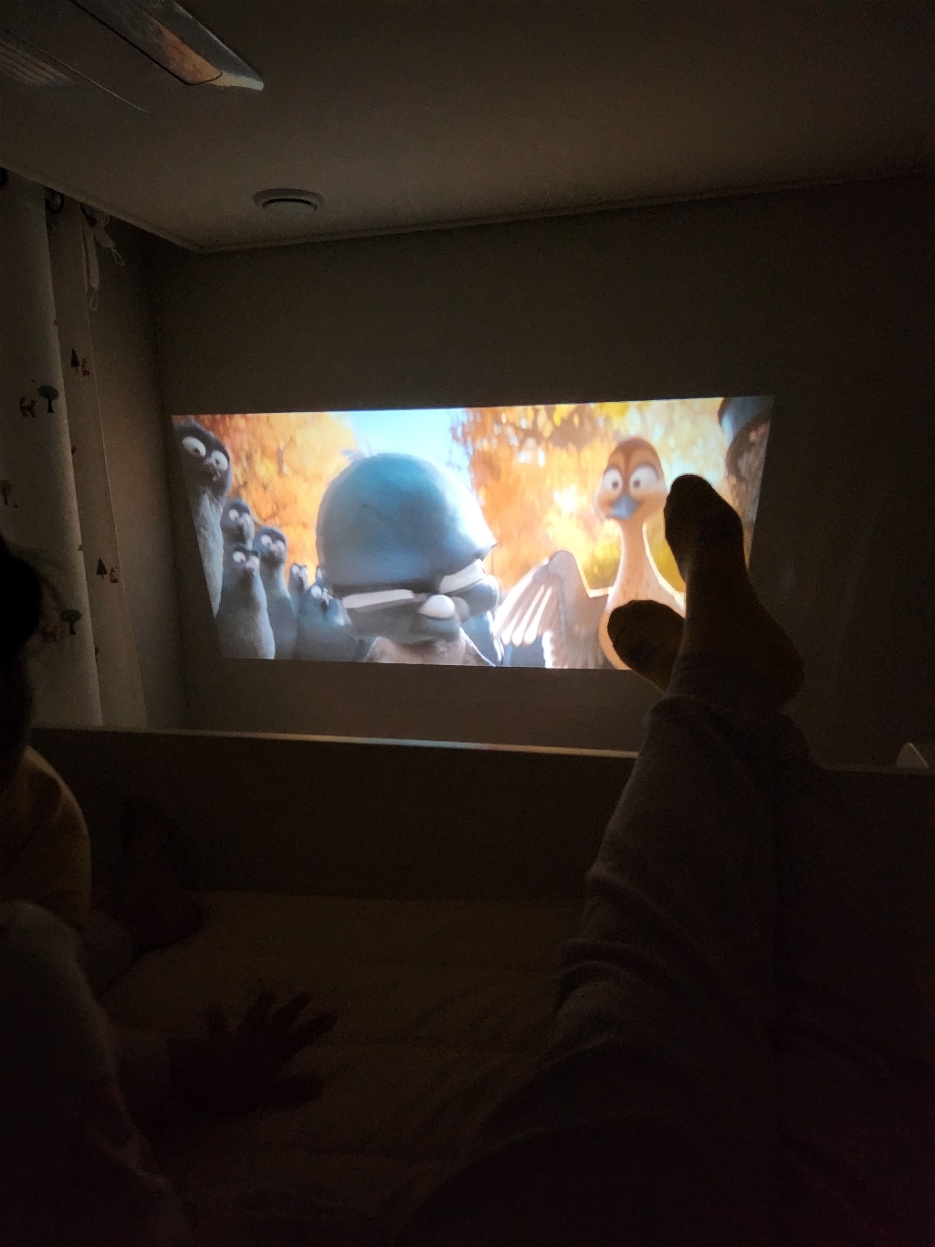 소리는 내장스피커를 통해 나오는데 저는 음질은 크게 불만이 없었어요. 음질에 민감한편도 아닌데다 오히려 특유의 감성이 느껴져서 영화볼때 좋았습니다.